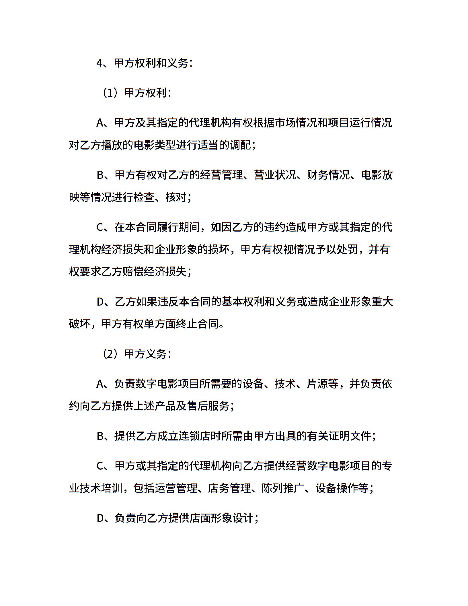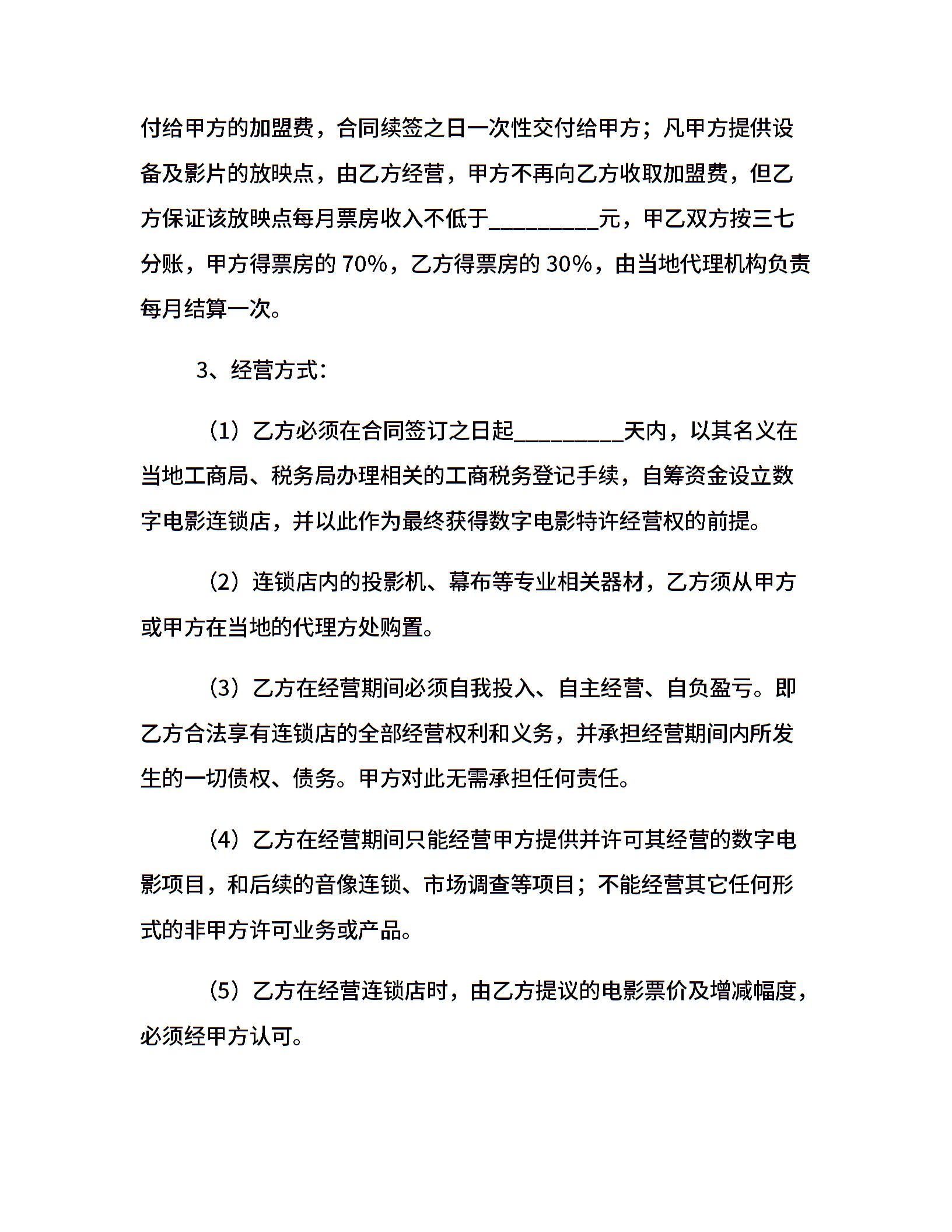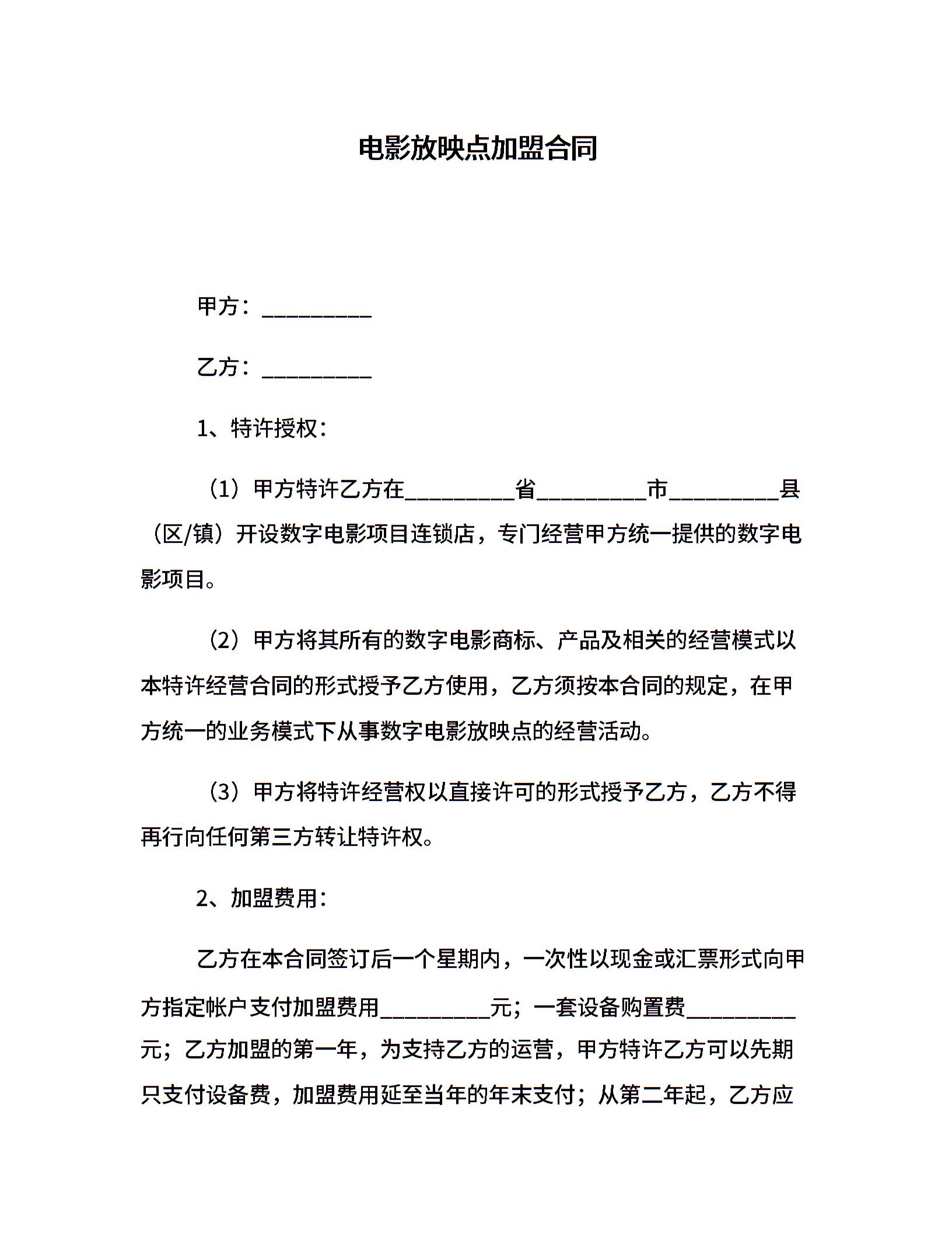 电影放映点加盟合同