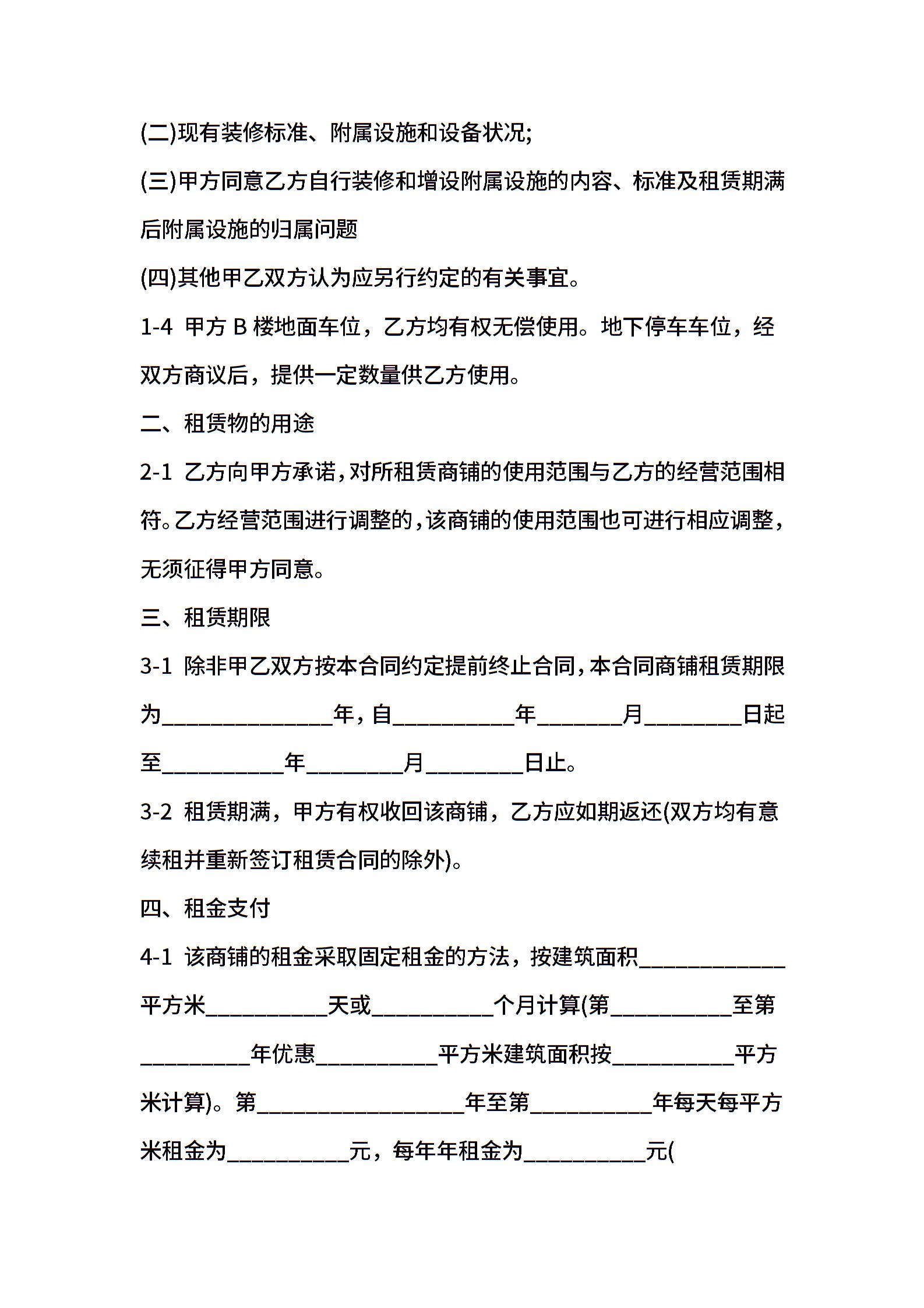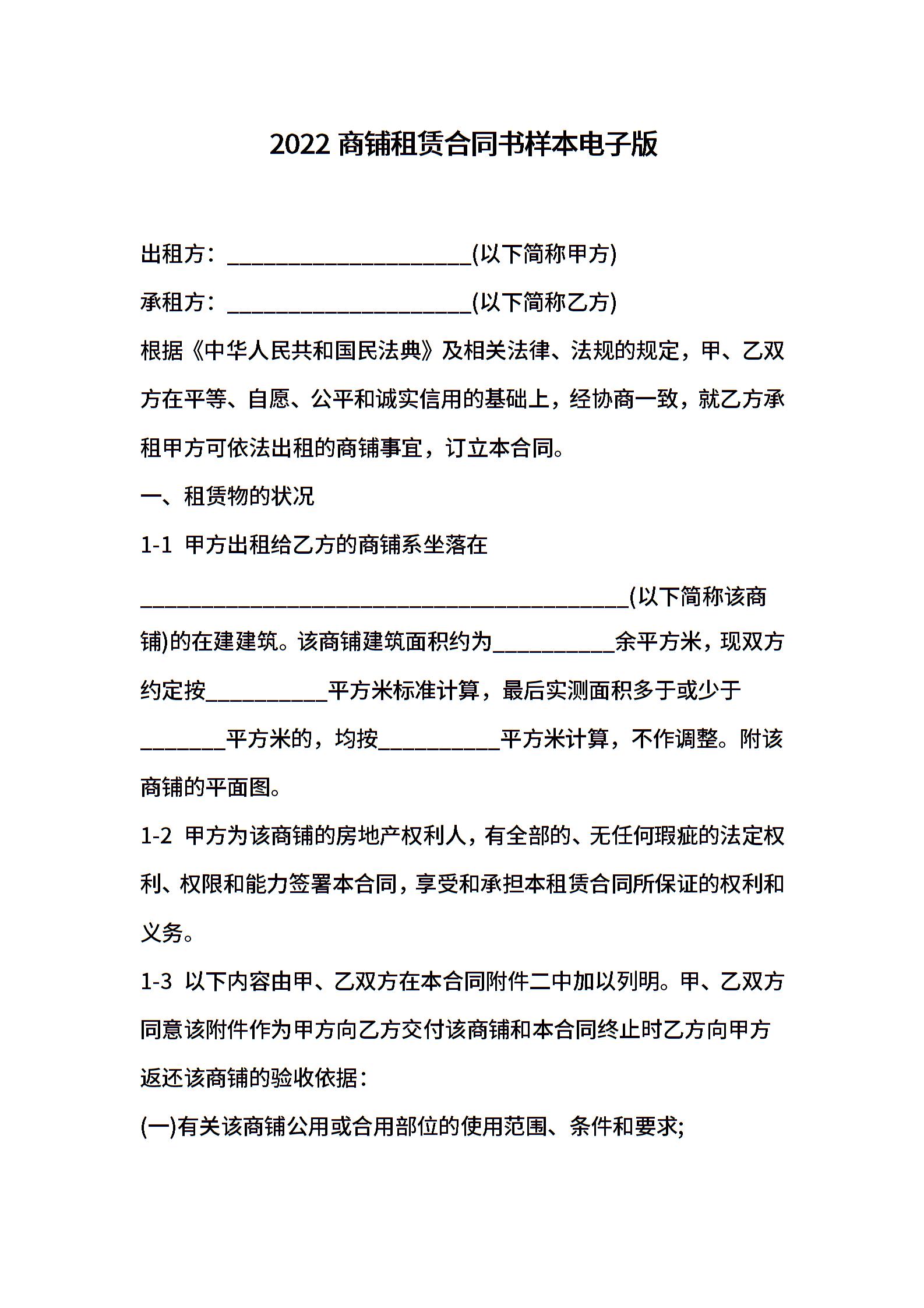 2022商铺租赁合同书样本