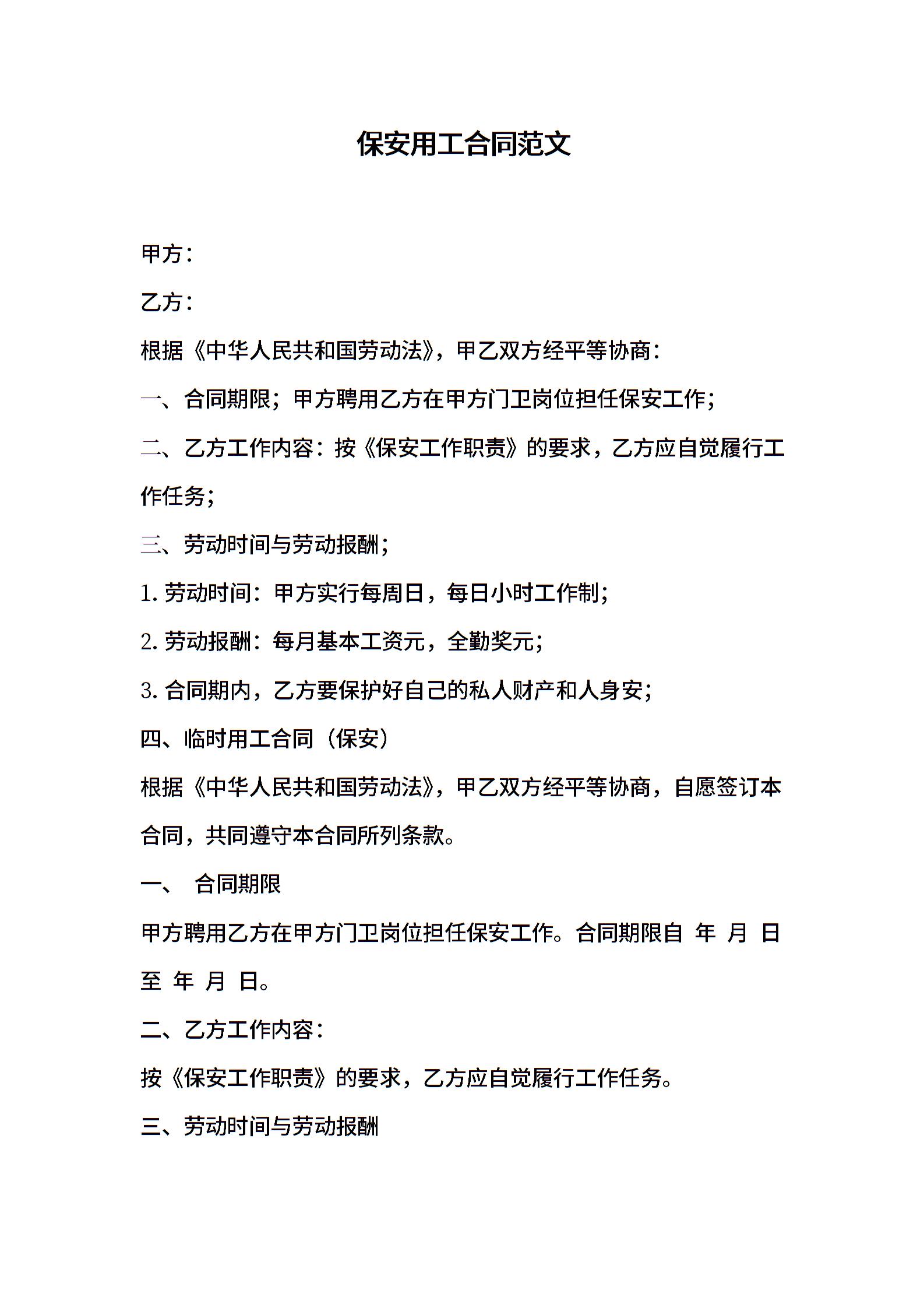 保安用工合同范文 (2)