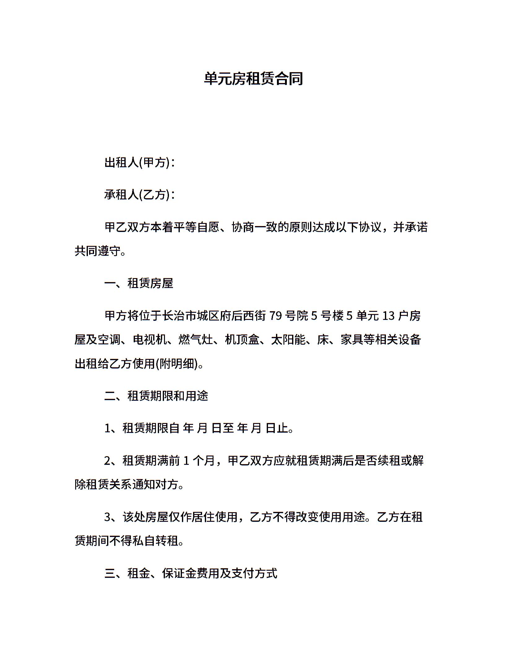 单元房租赁合同