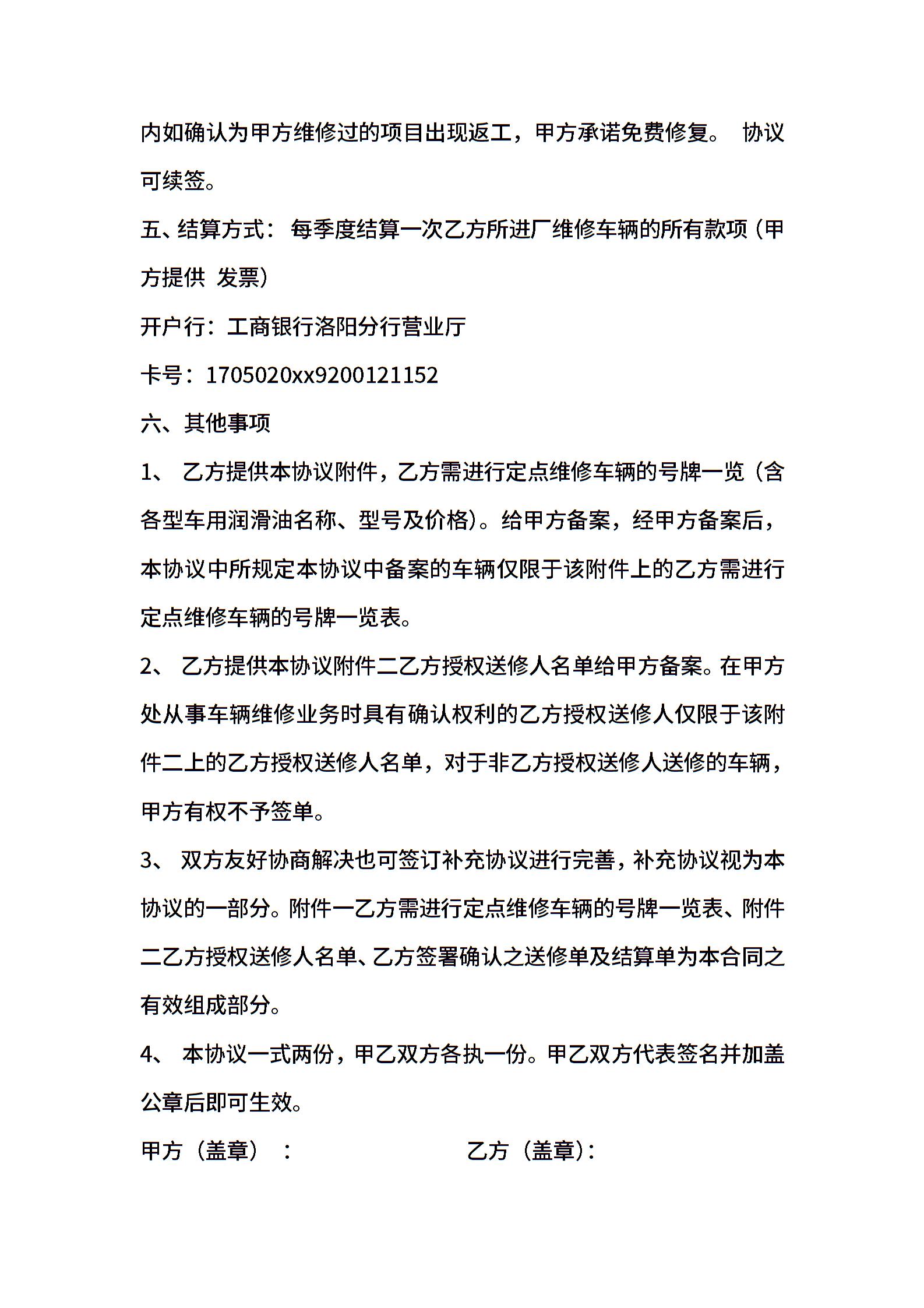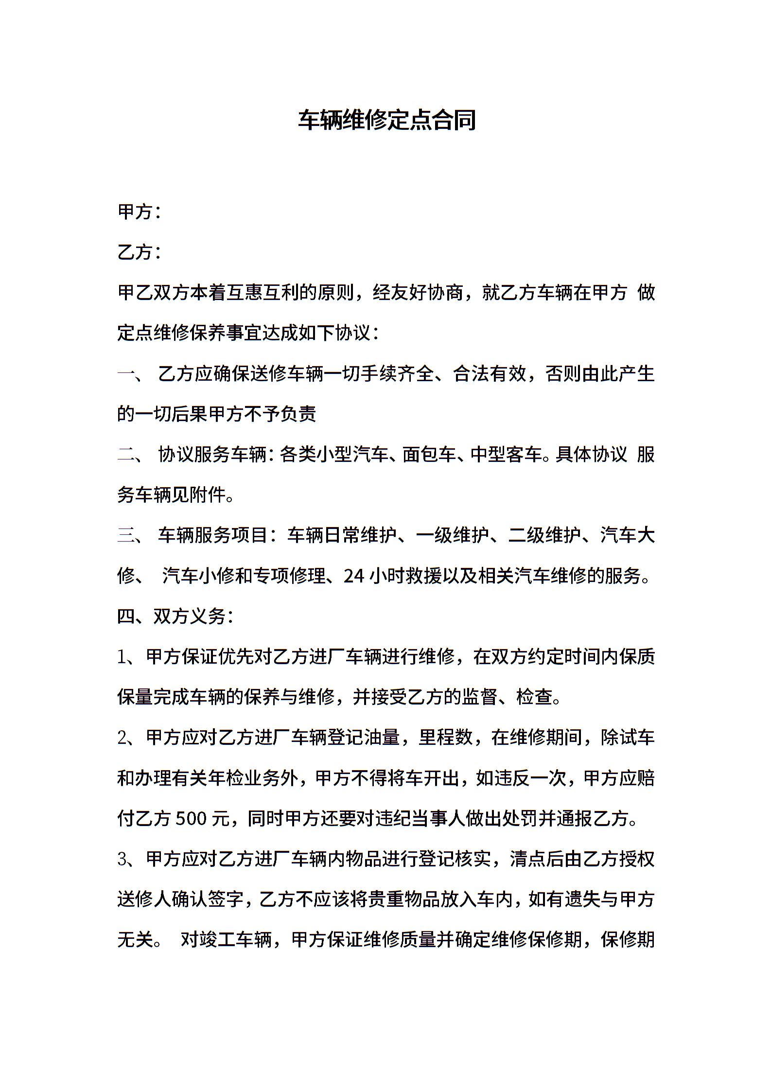 车辆维修定点合同