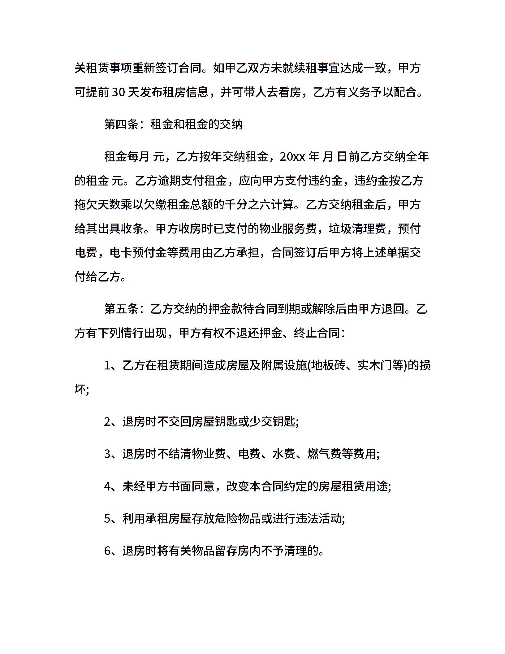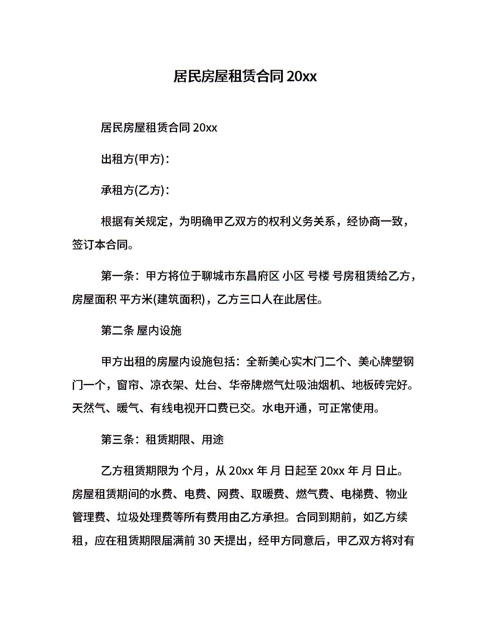 居民房屋租赁合同20xx