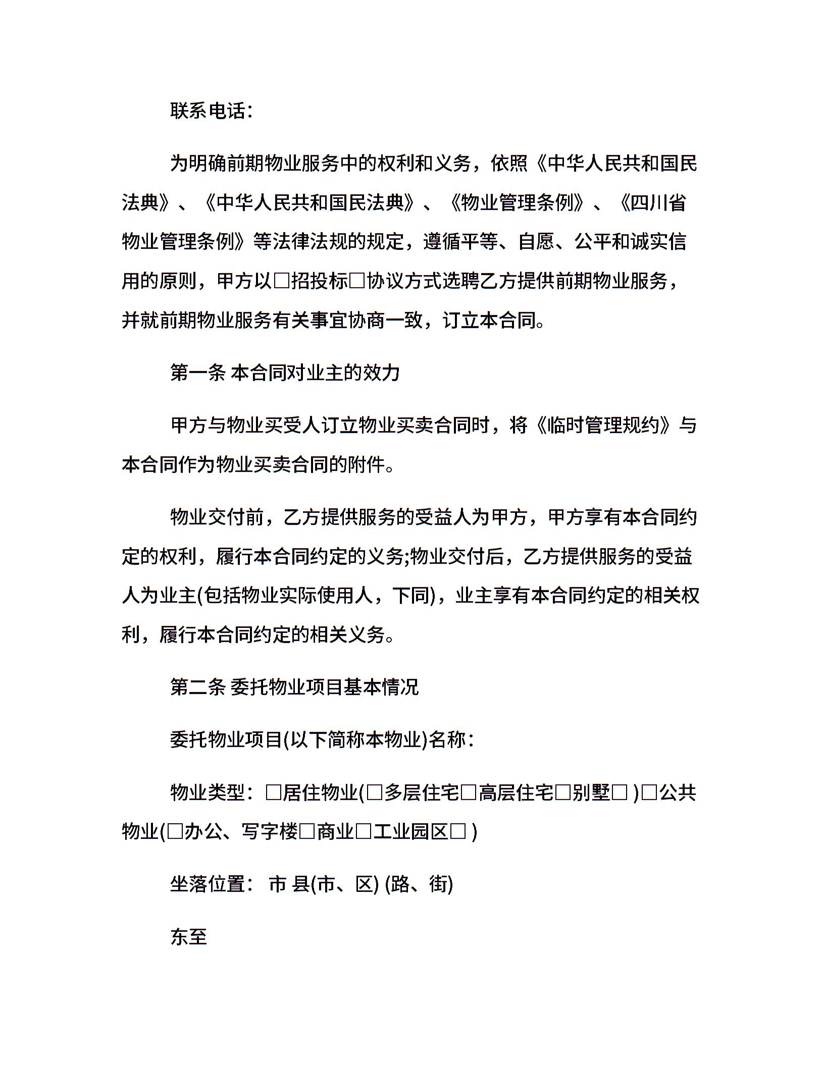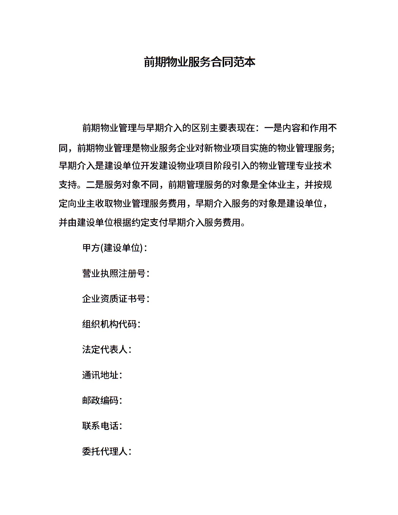 前期物业服务合同范本