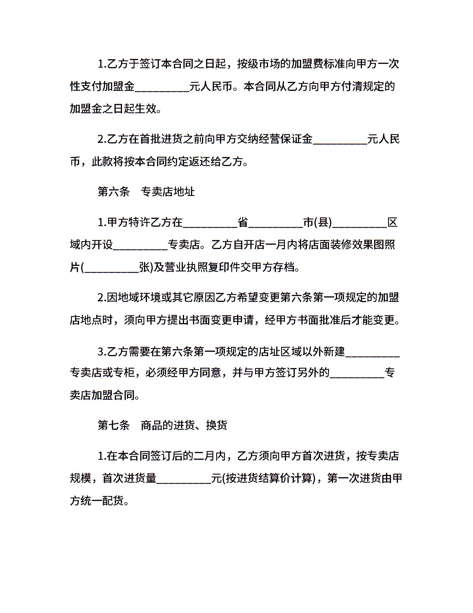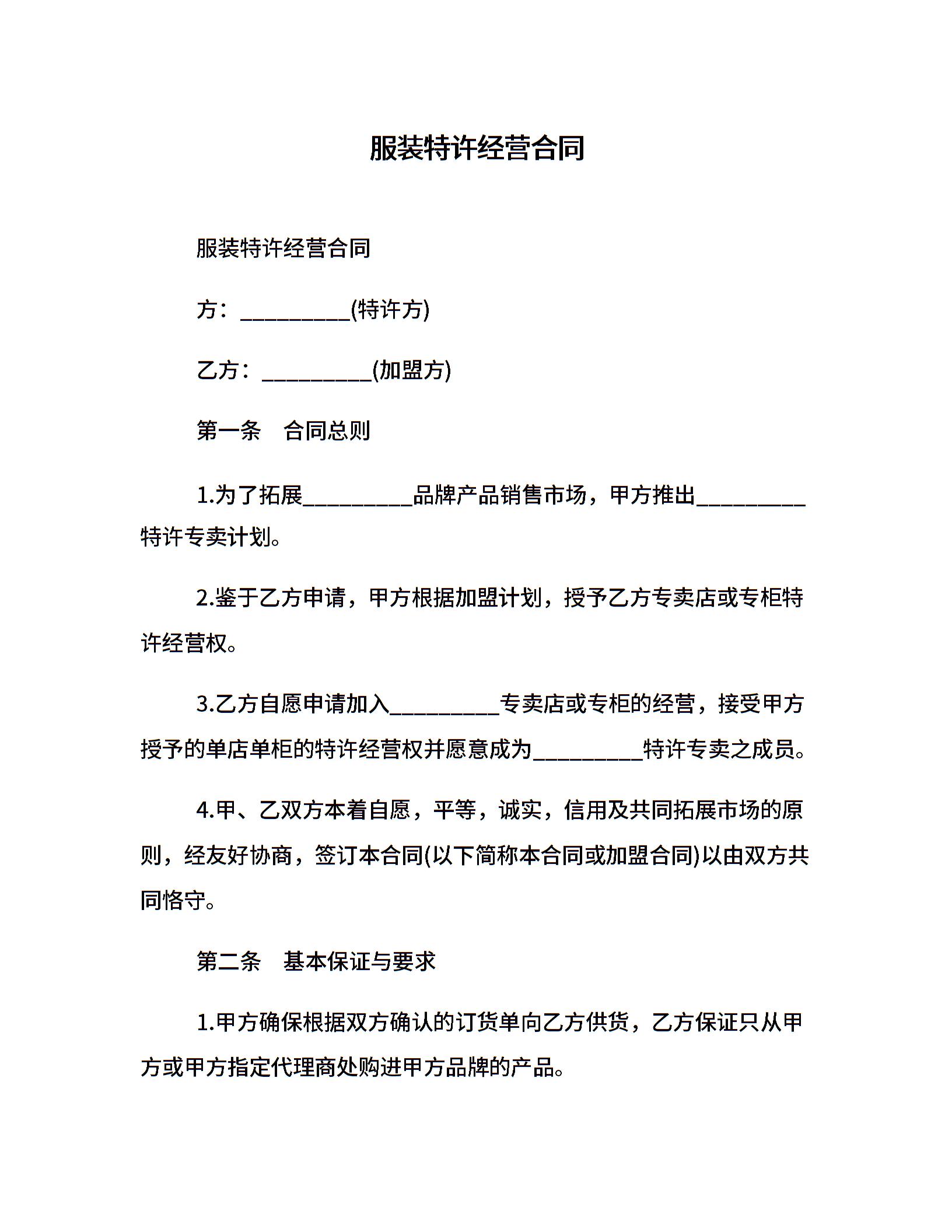 服装特许经营合同