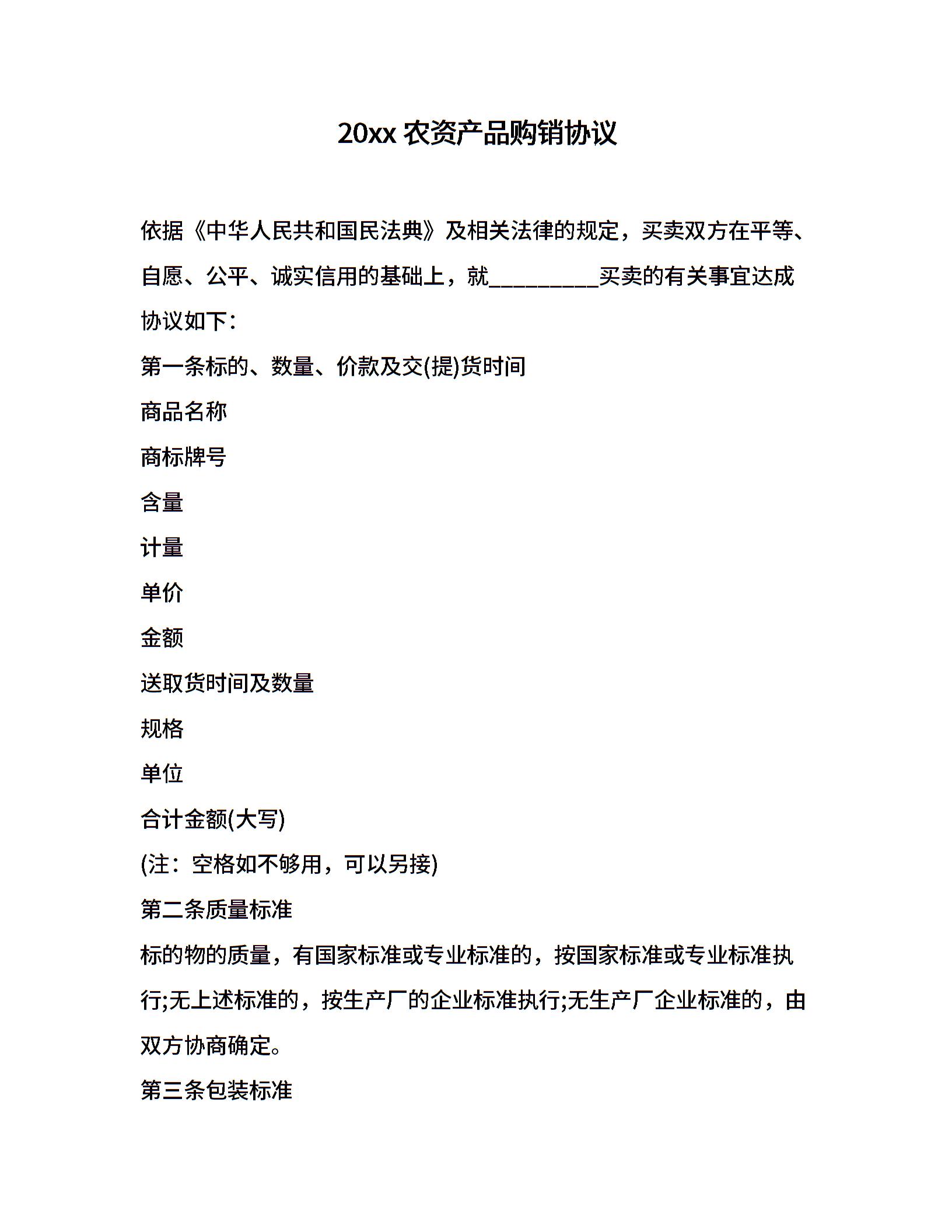 20xx农资产品购销协议