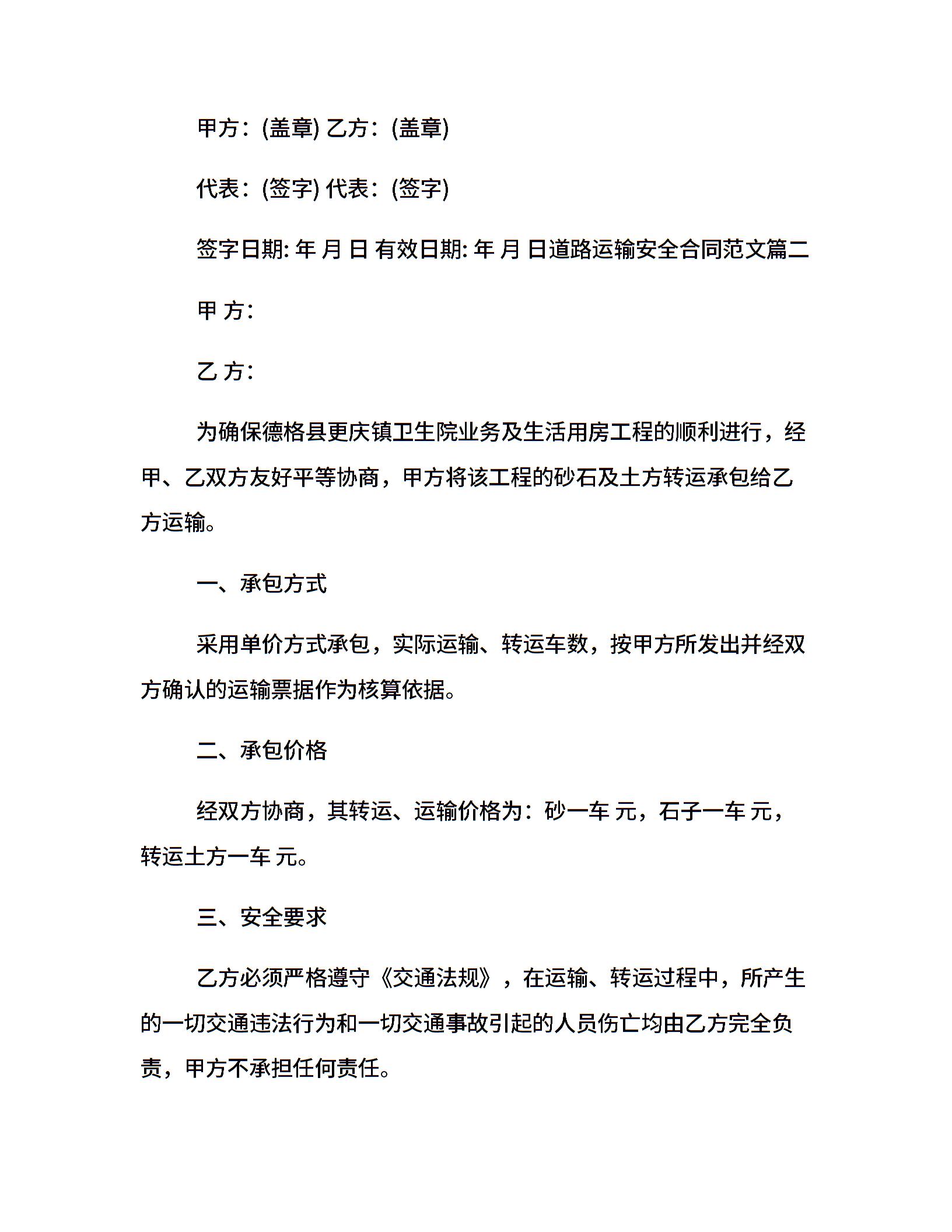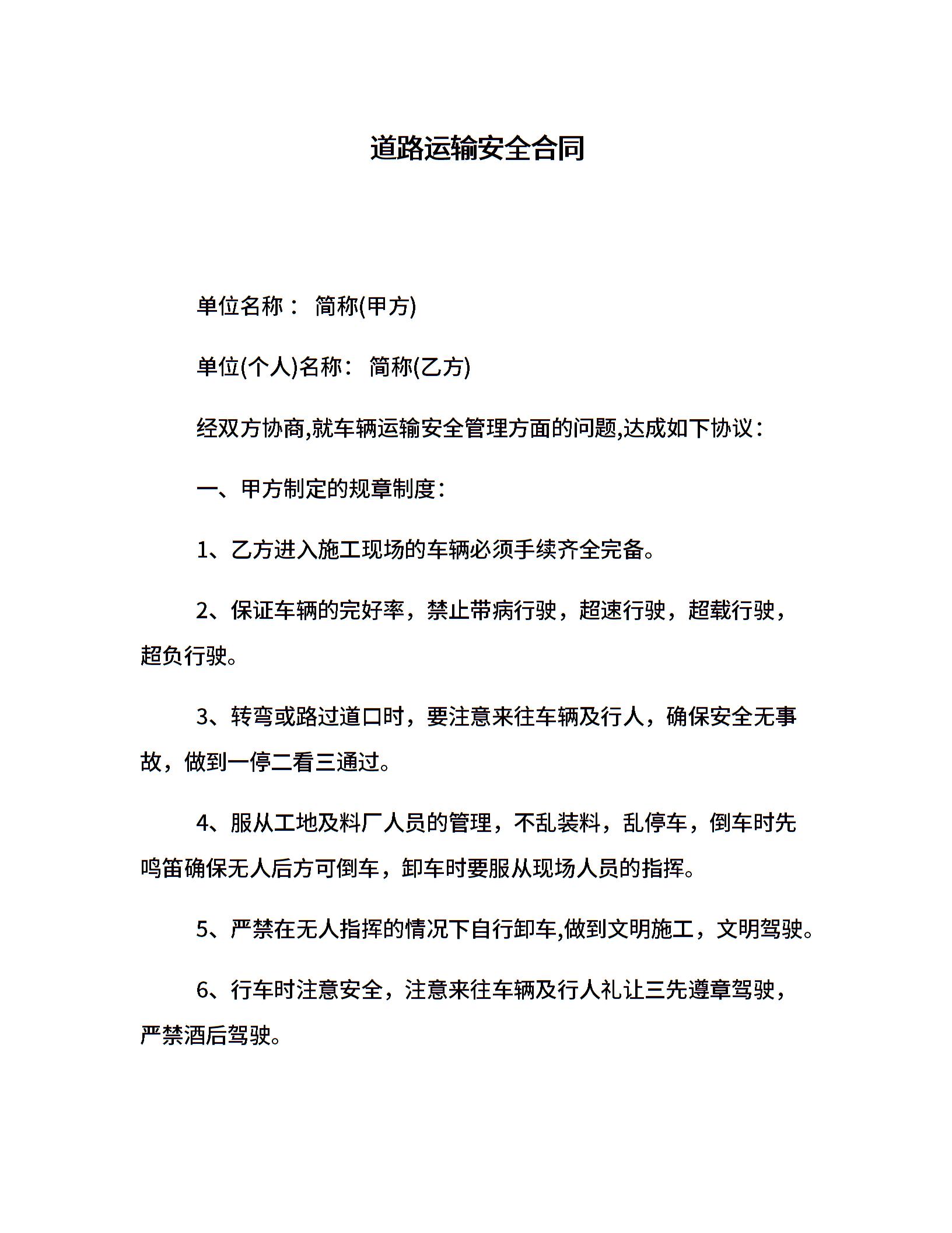 道路运输安全合同