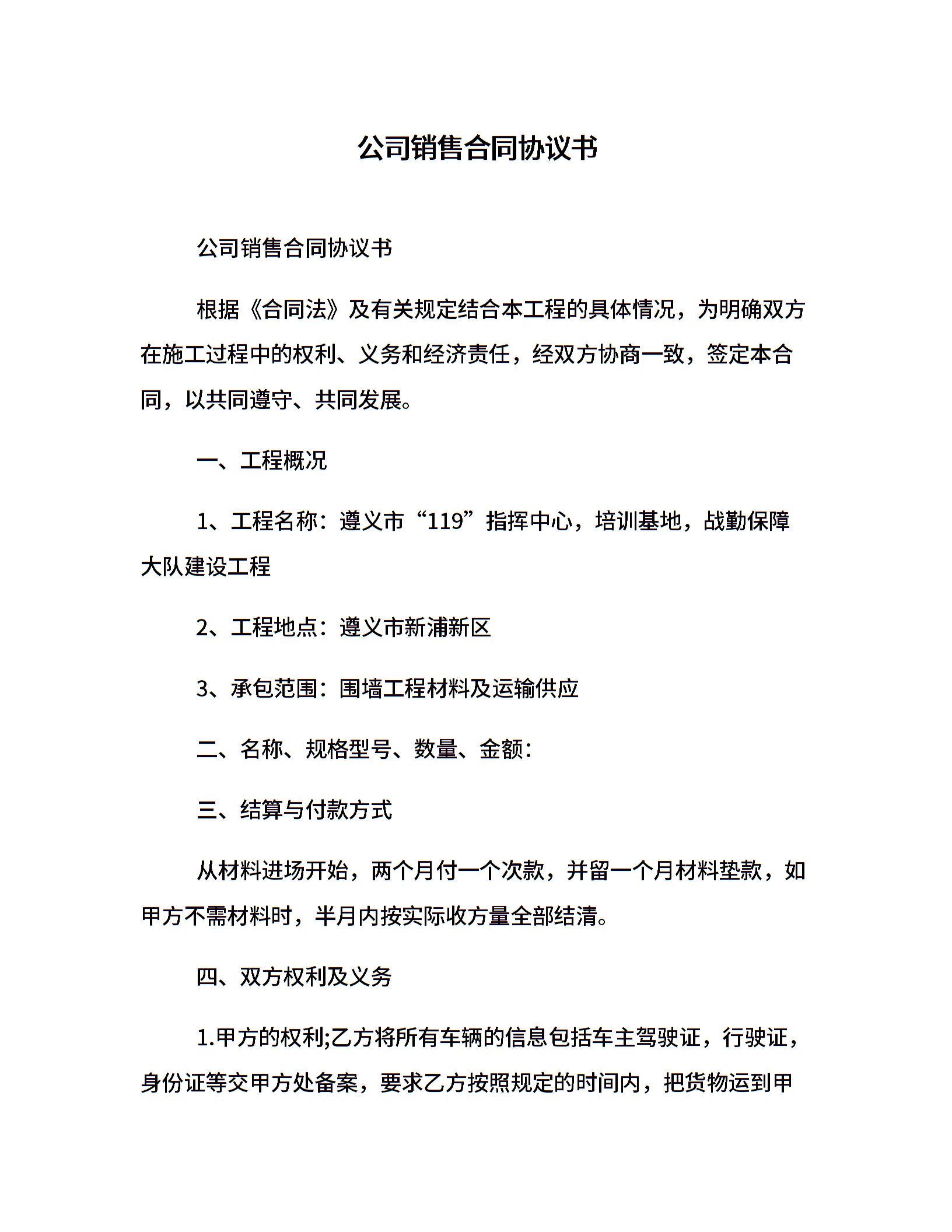 公司销售合同协议书