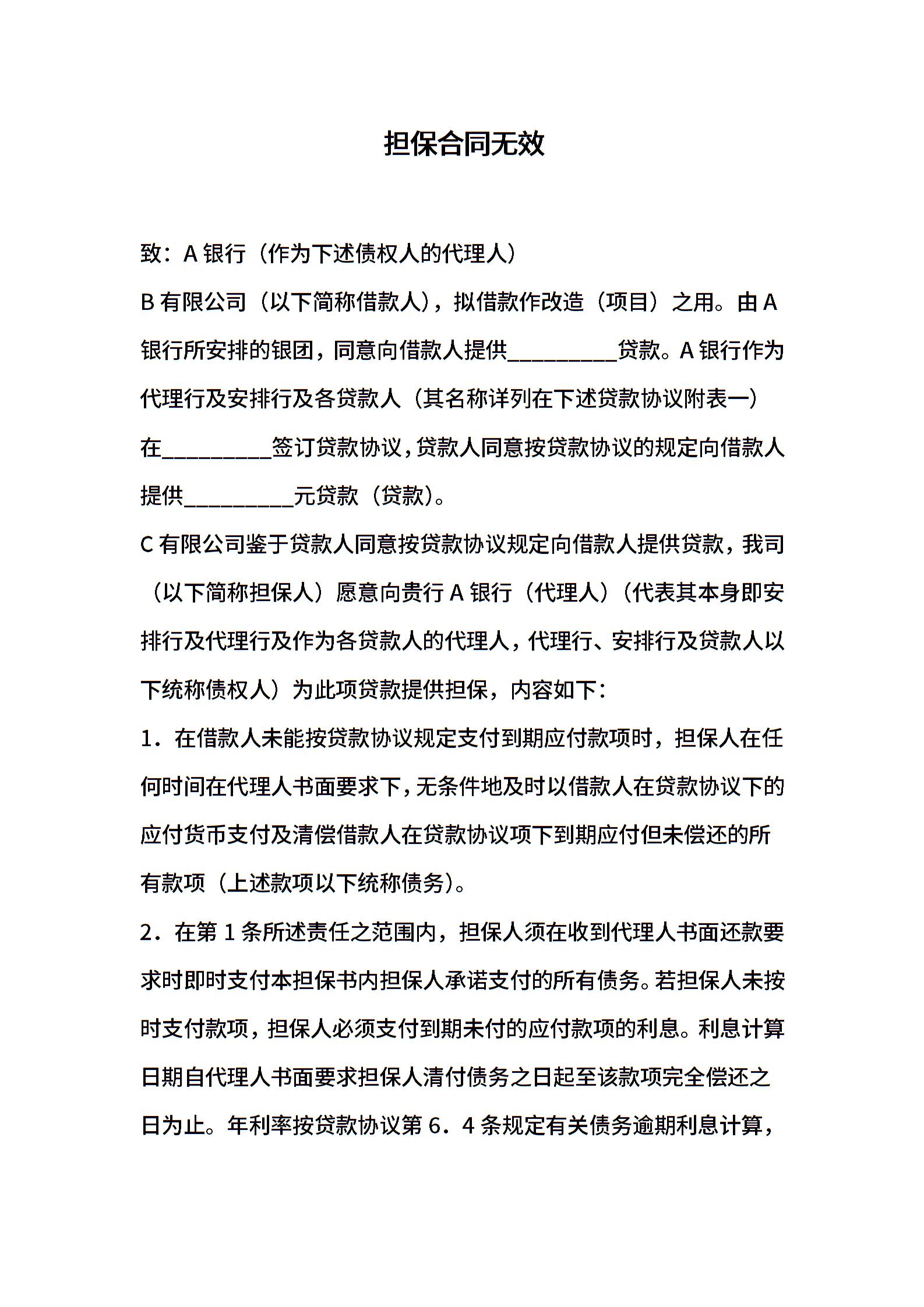 担保合同无效