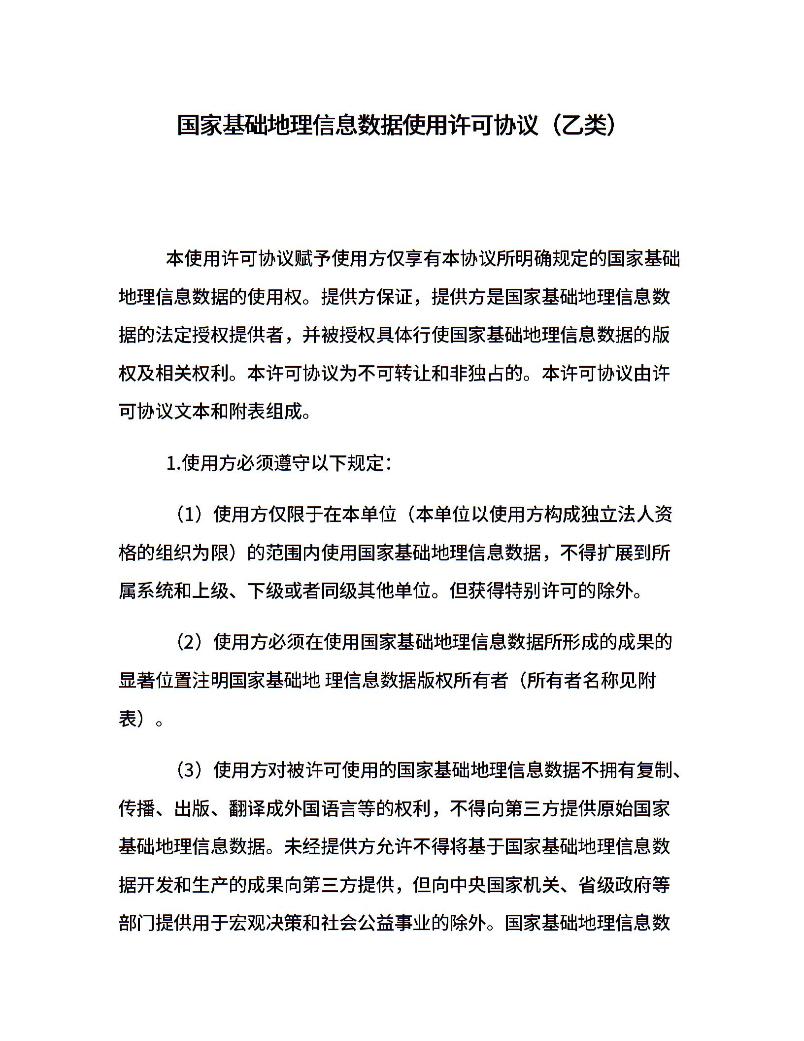 国家基础地理信息数据使用许可协议(乙类)