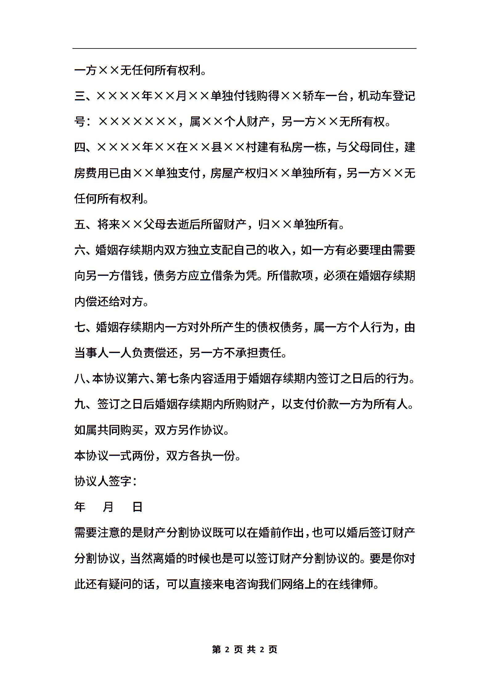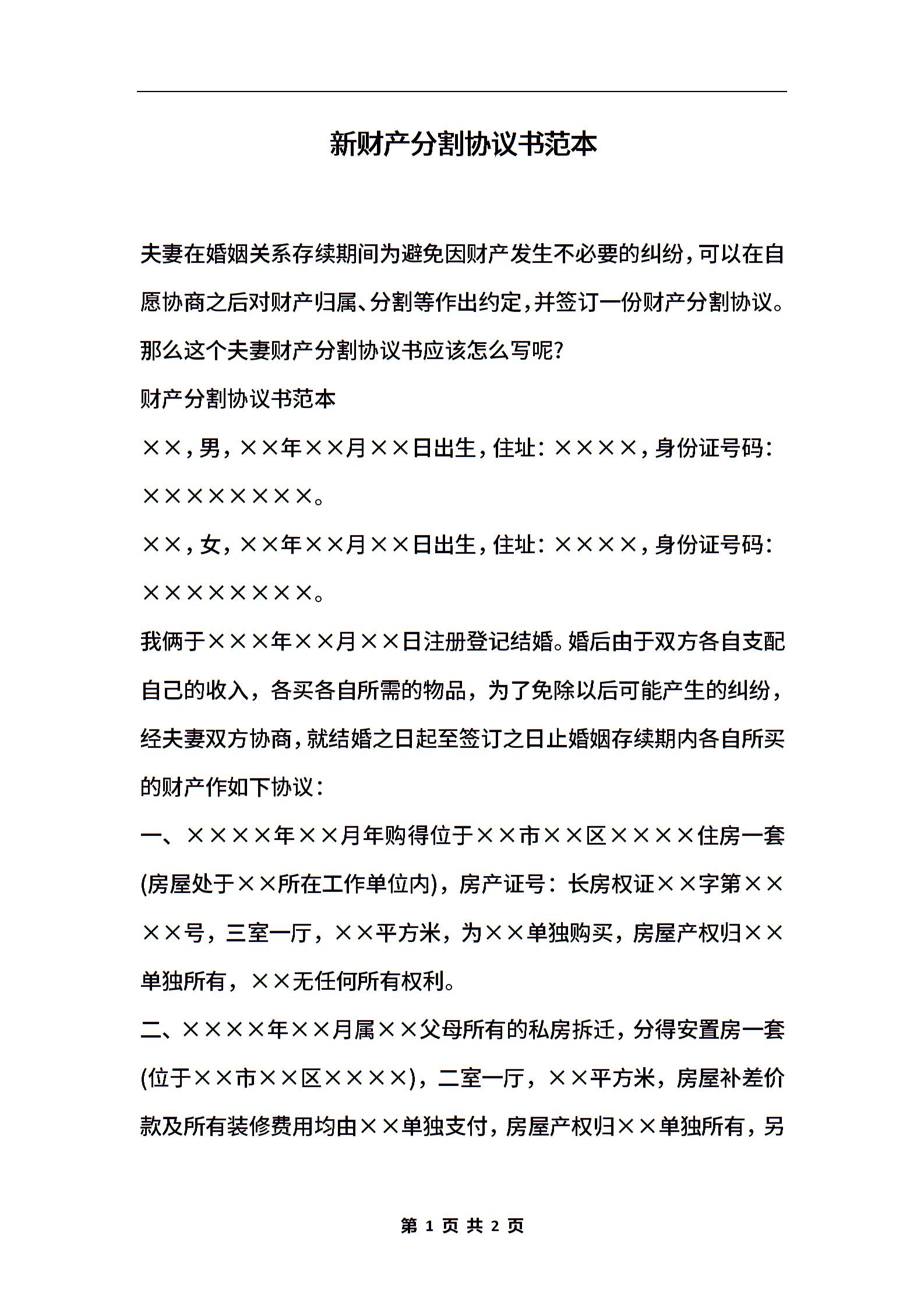 新财产分割协议书范本