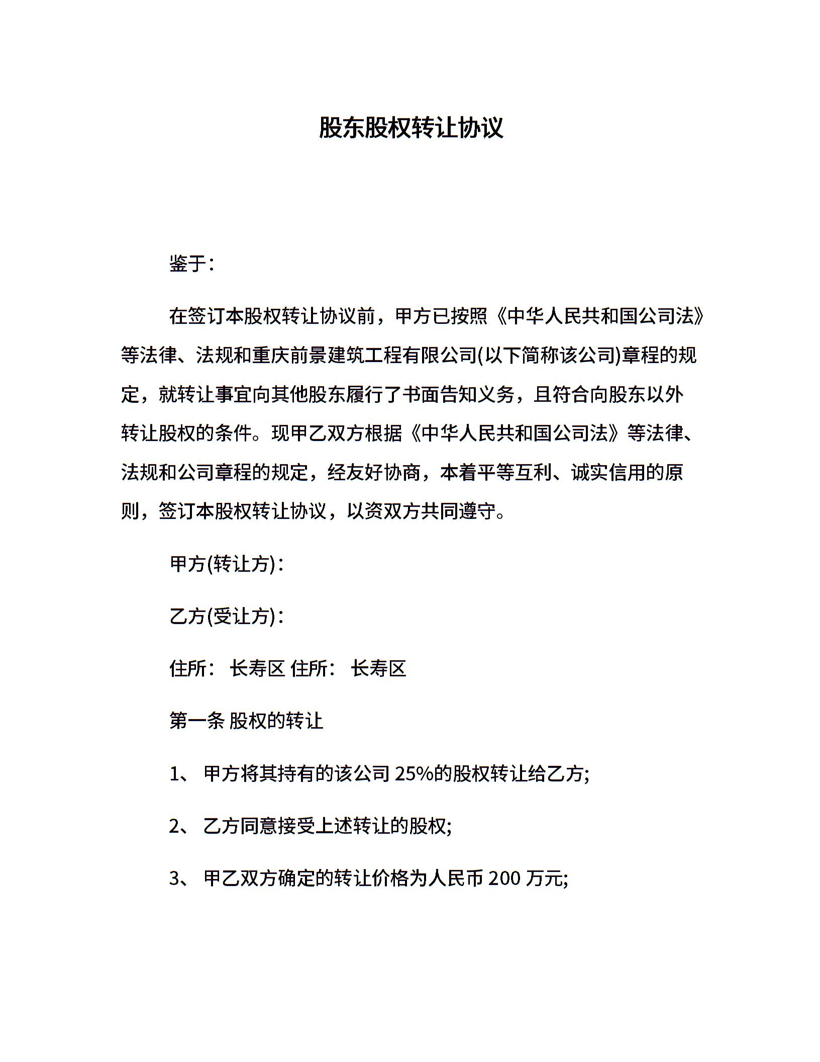 股东股权转让协议