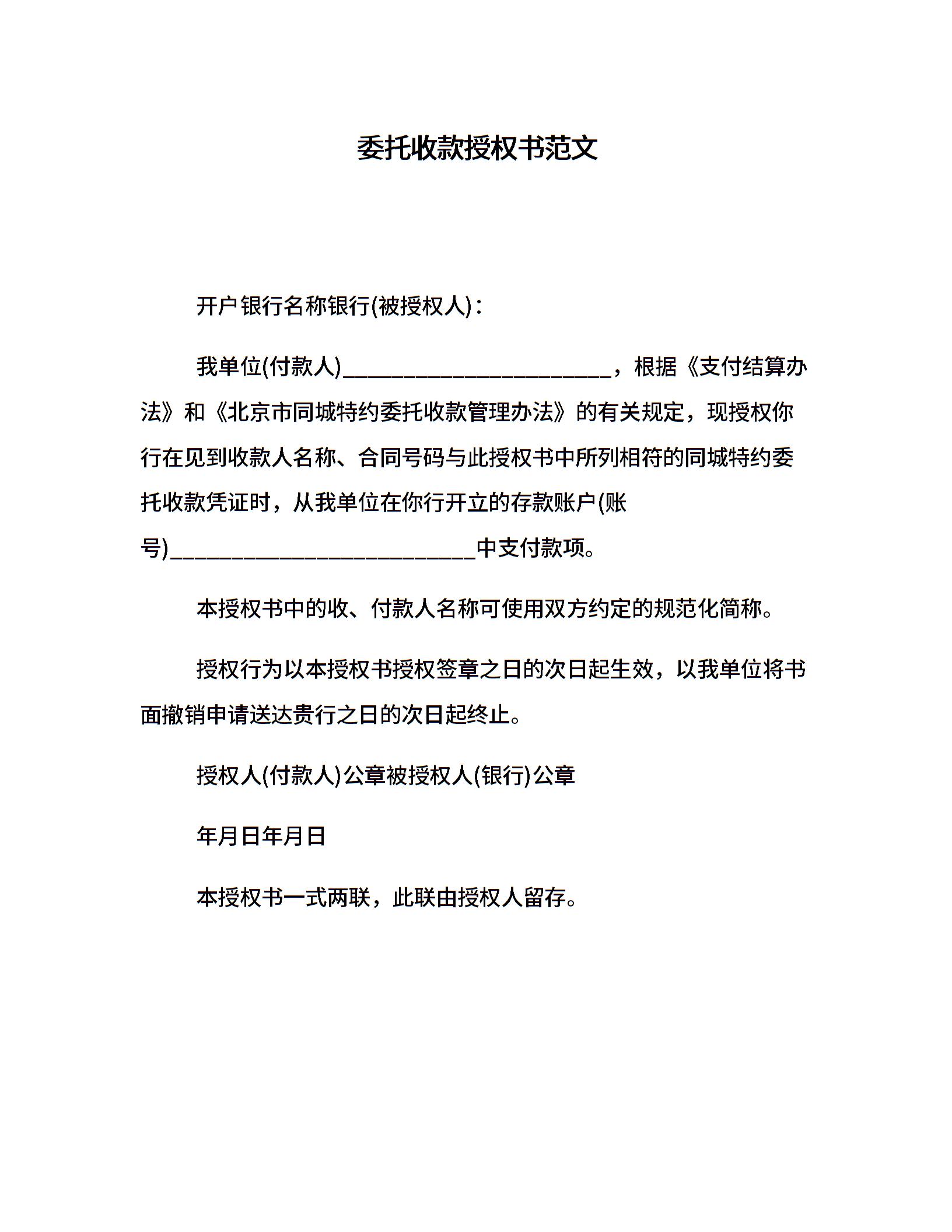 委托收款授权书范文