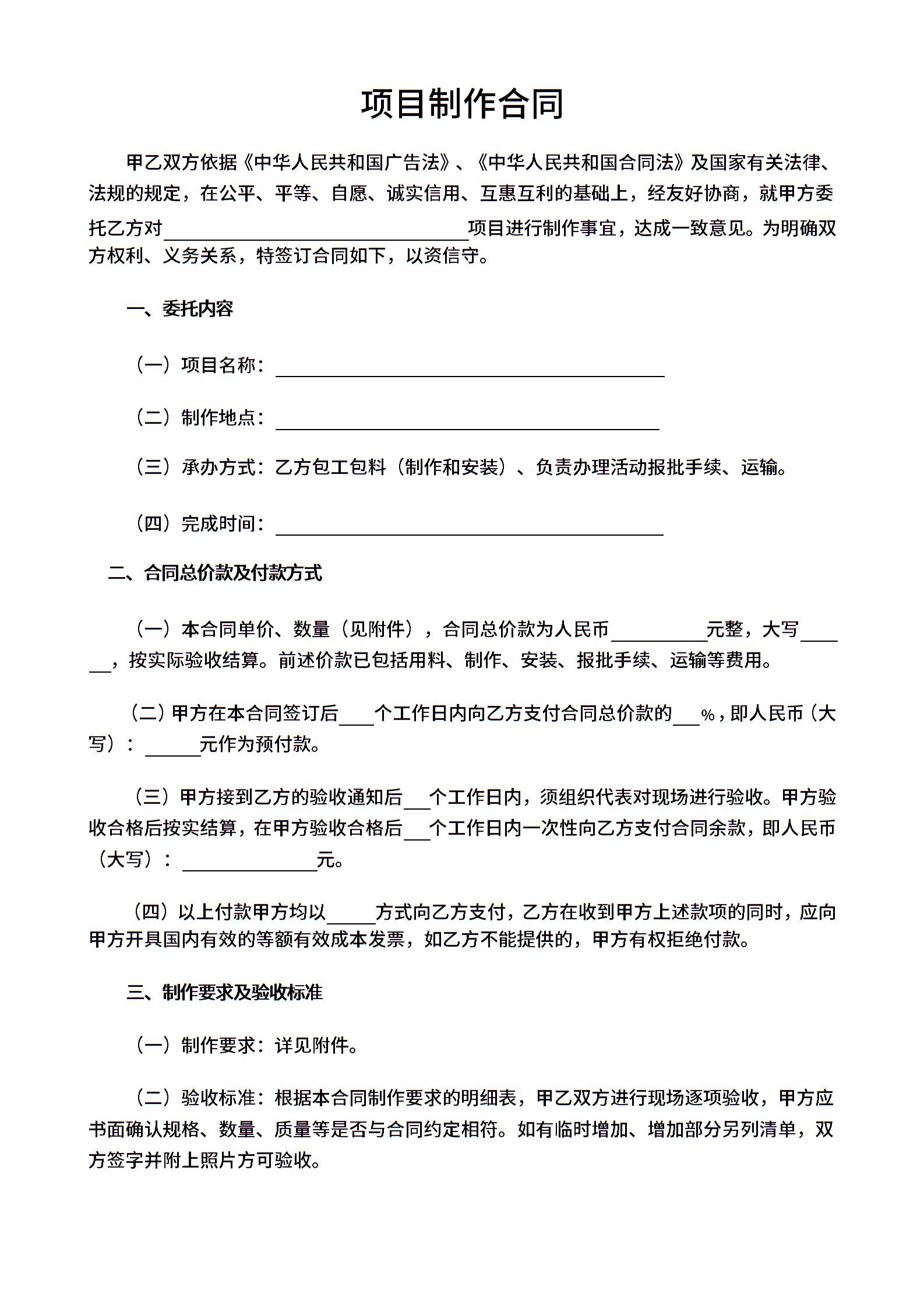 项目制作合同模板
