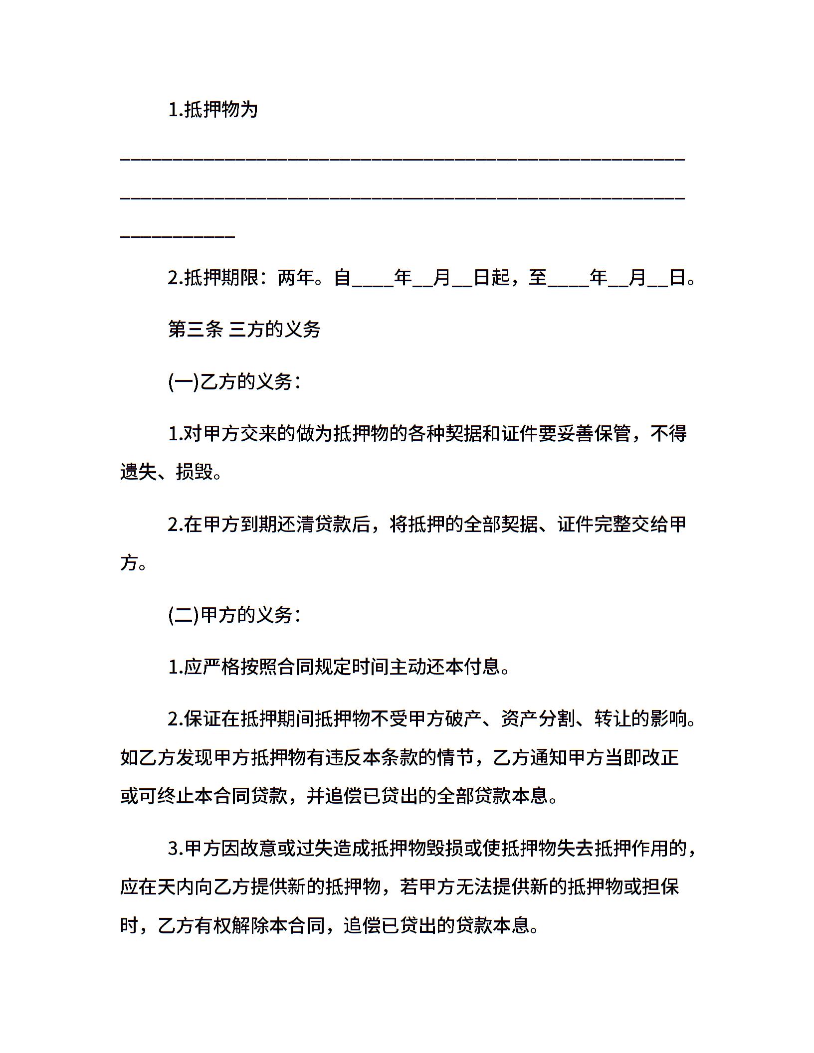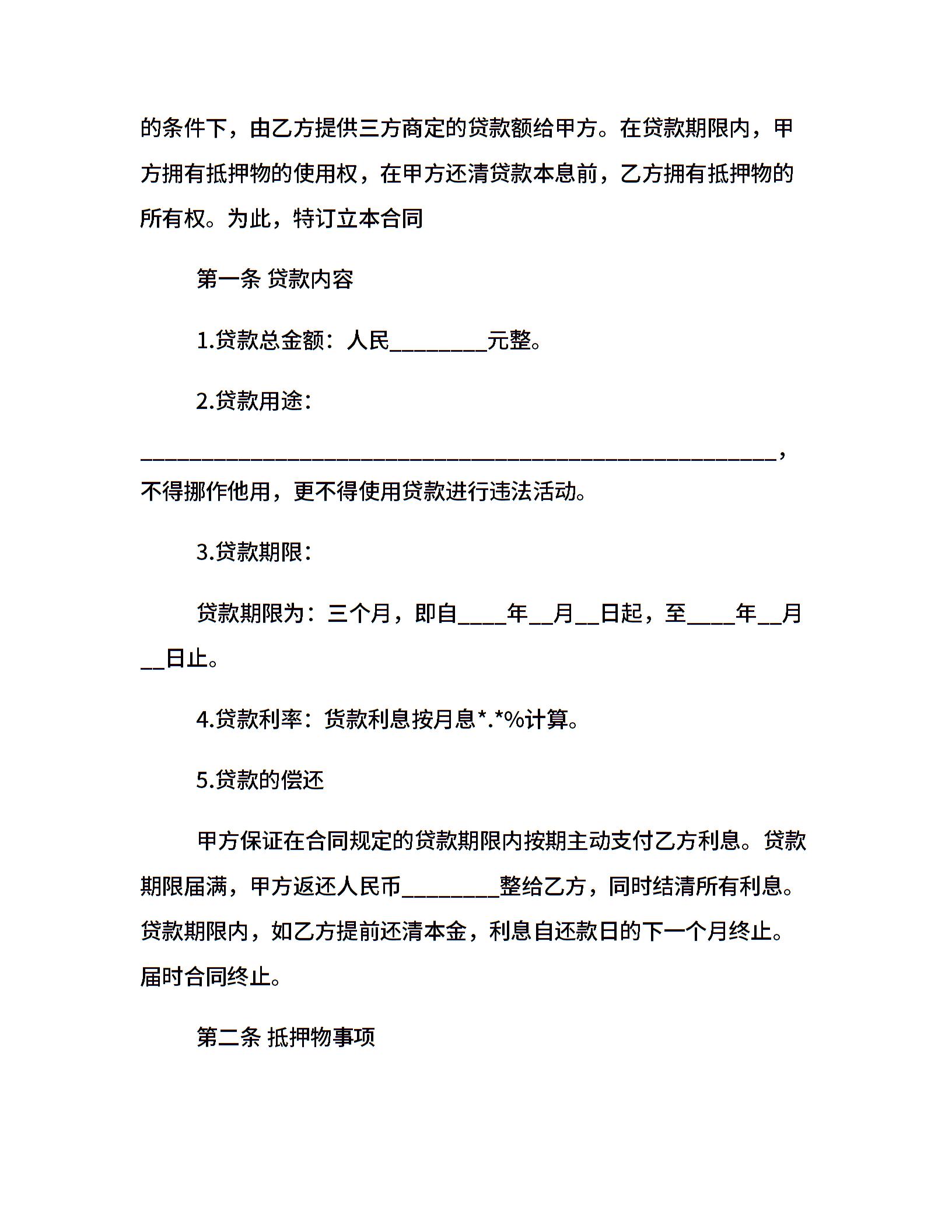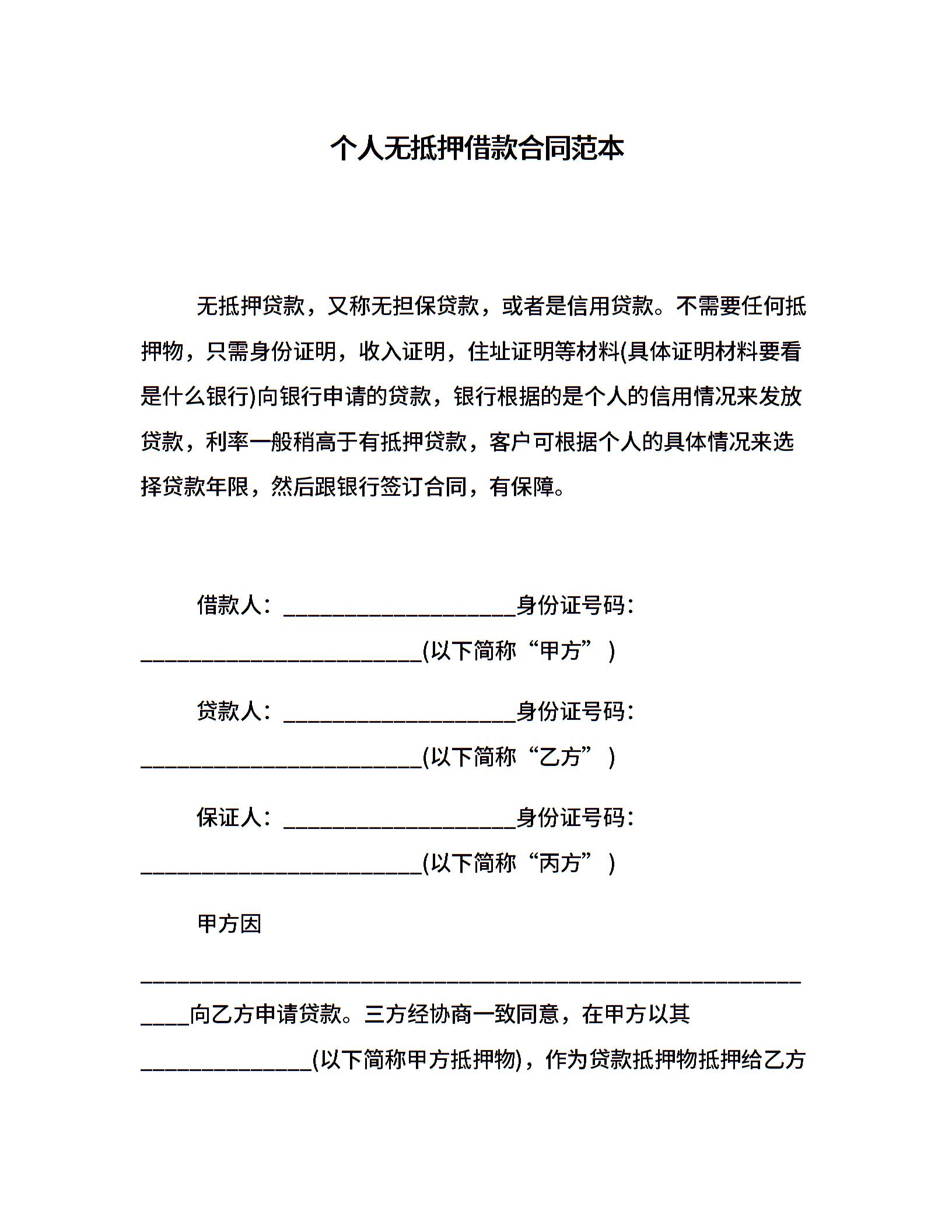 个人无抵押借款合同范本