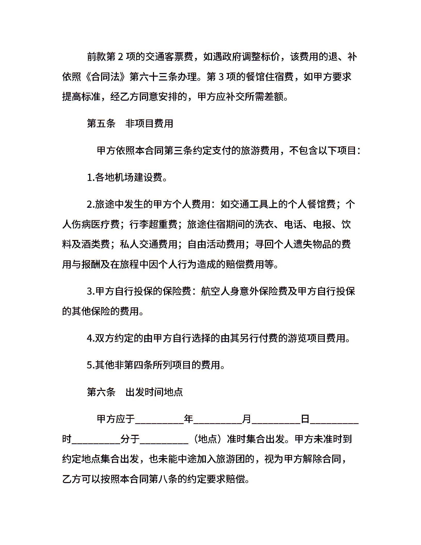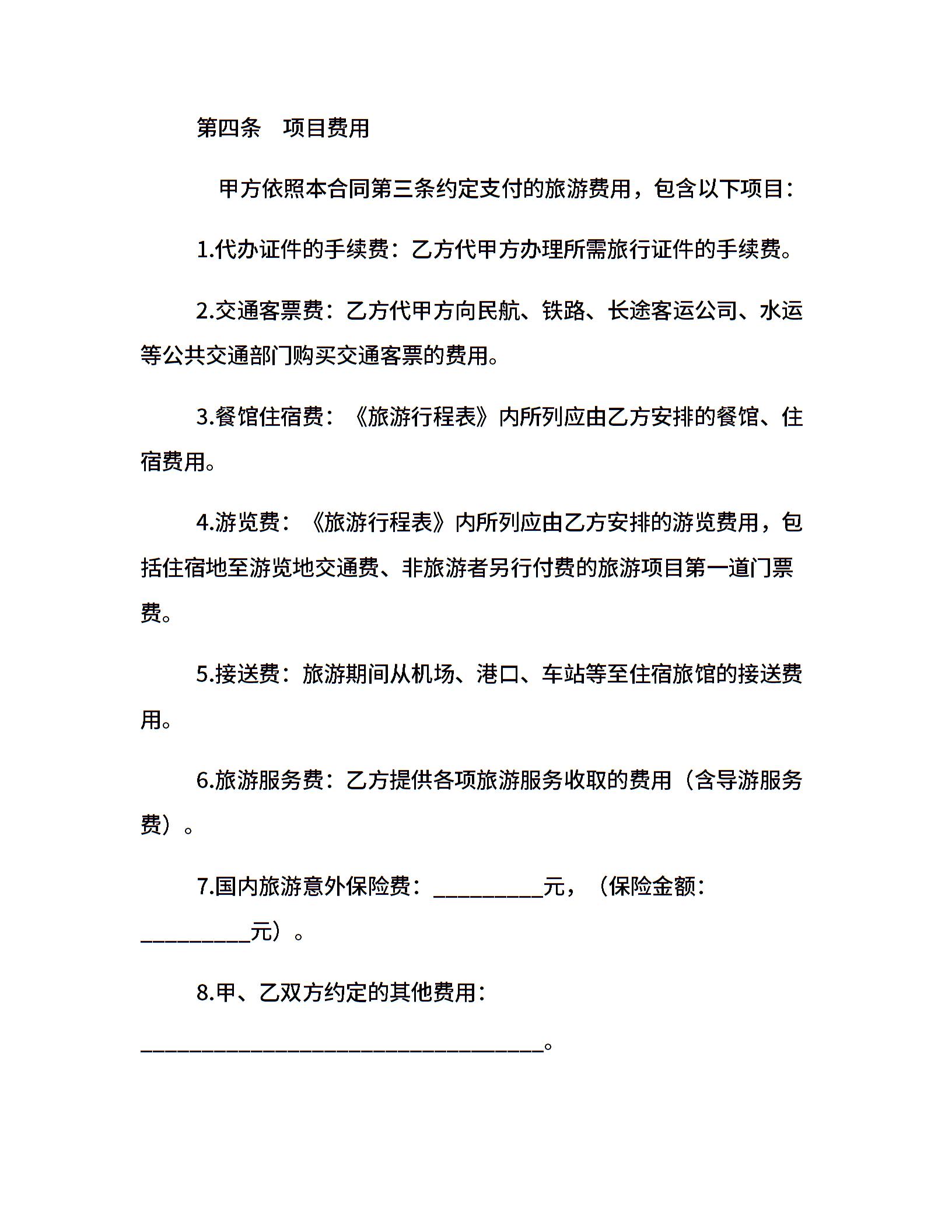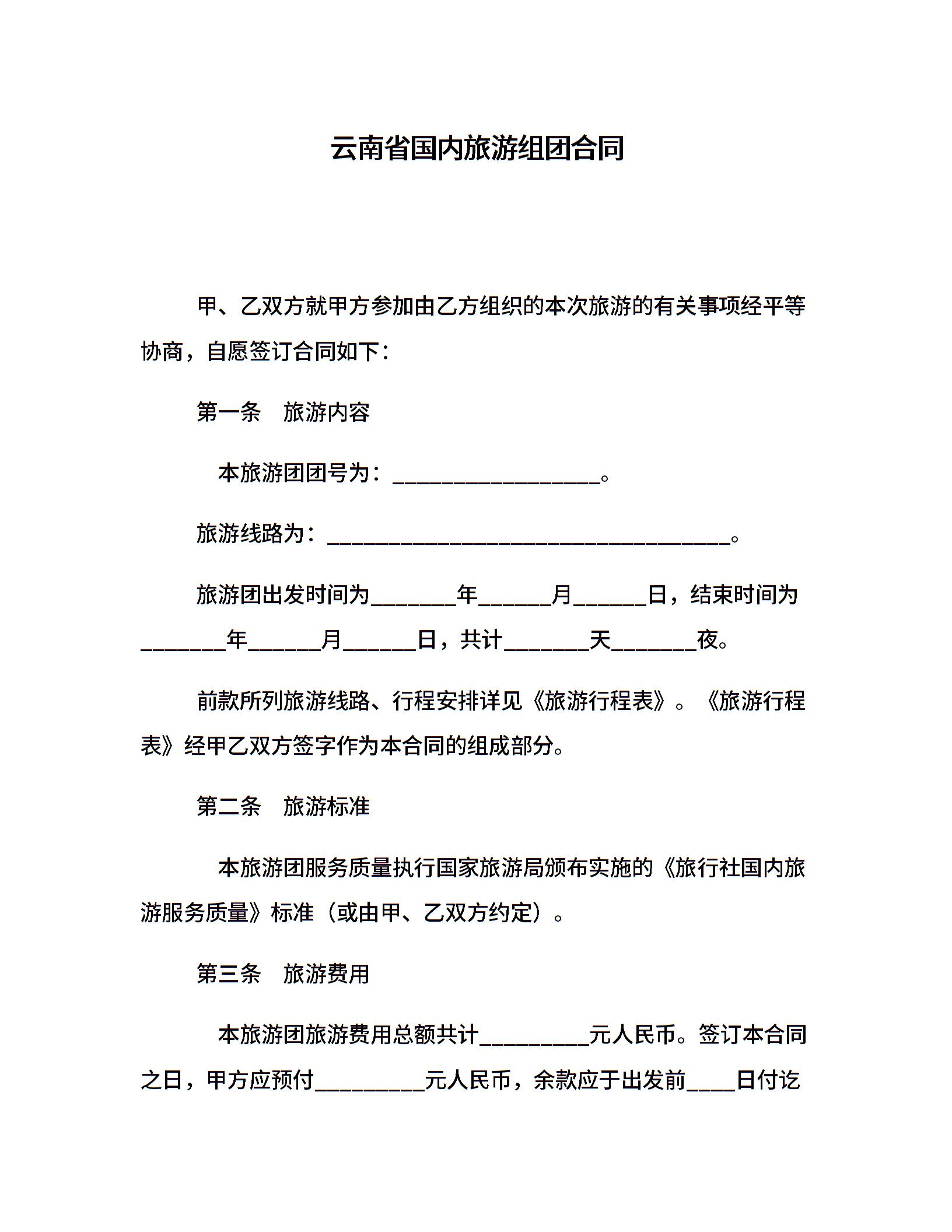云南省国内旅游组团合同