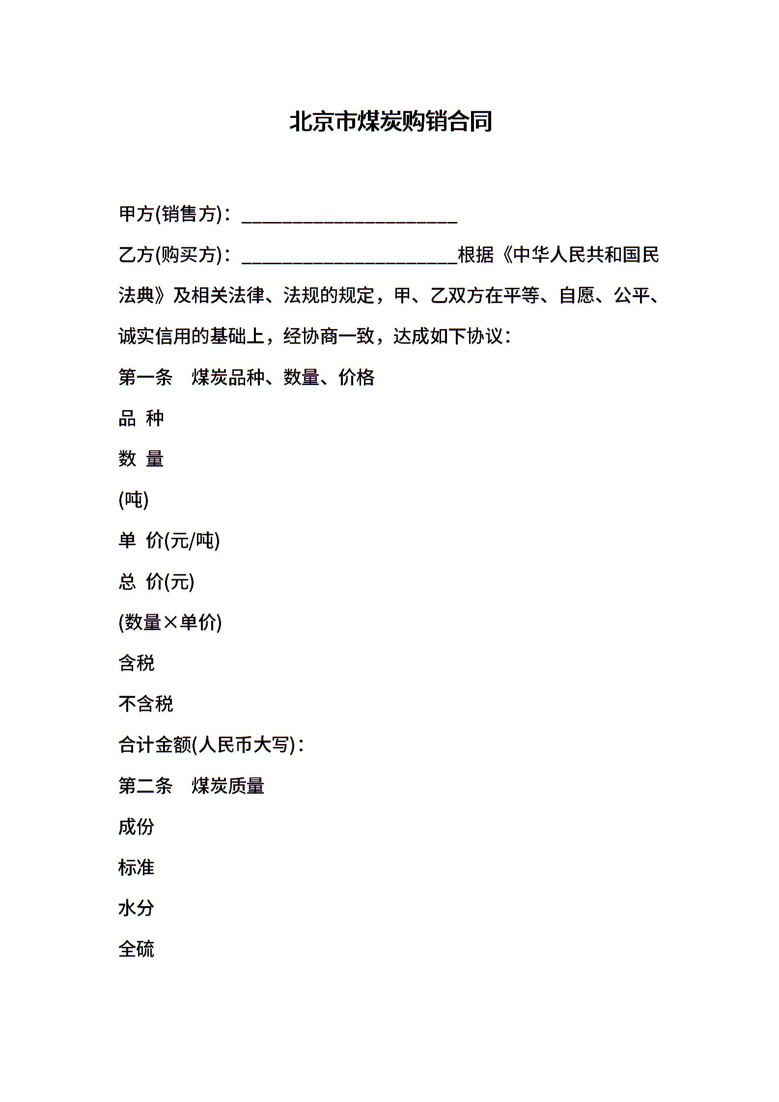 北京市煤炭购销合同