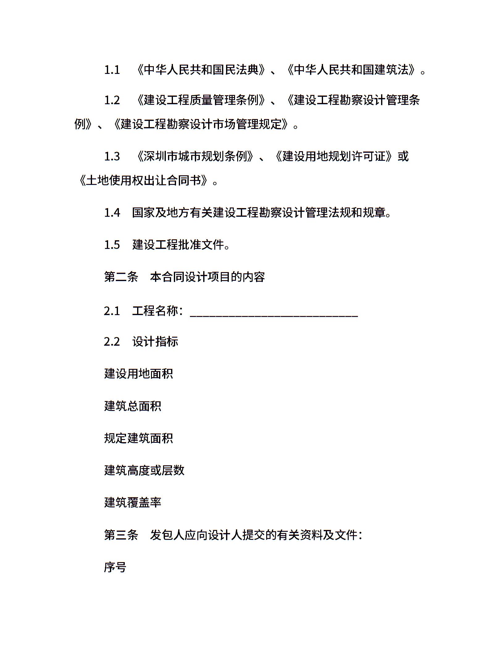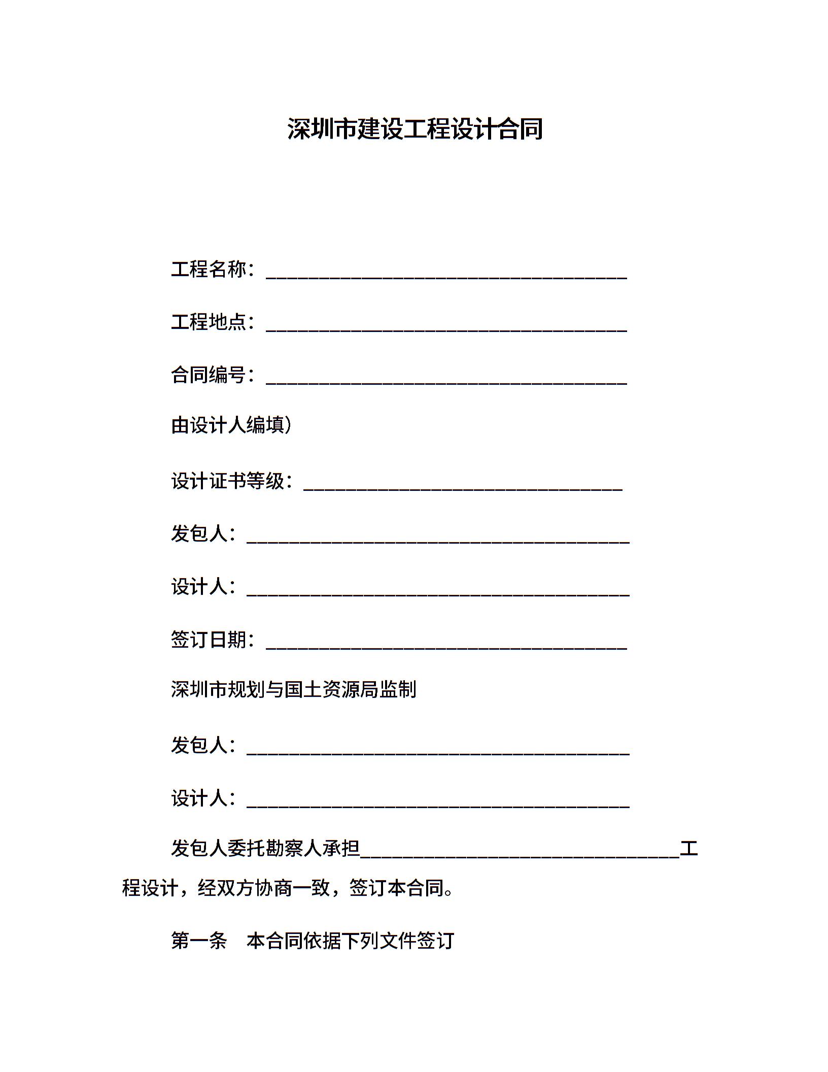 深圳市建设工程设计合同
