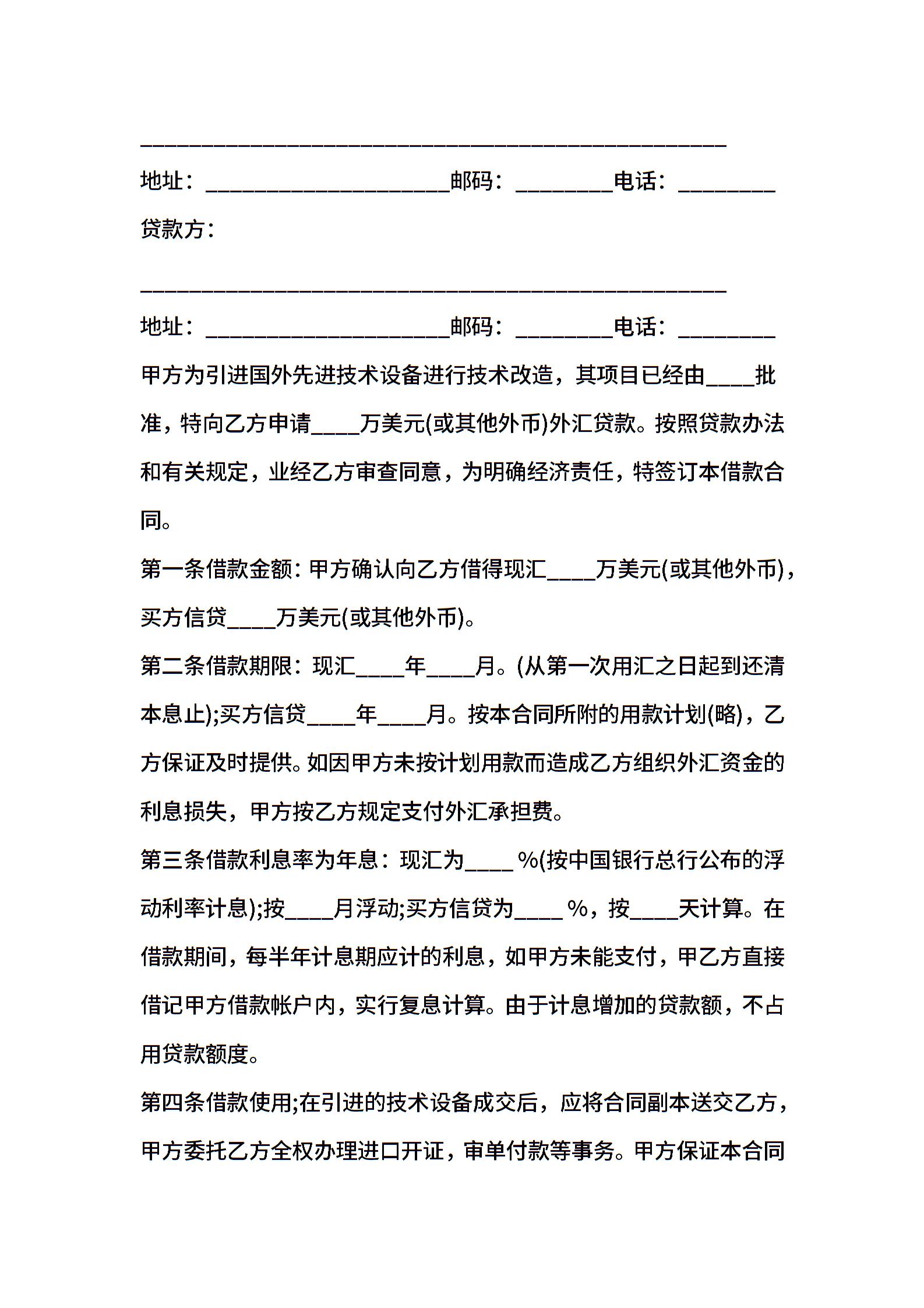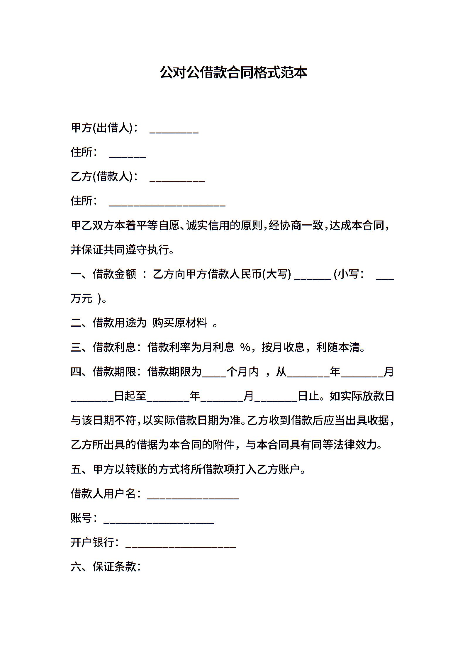 公对公借款合同格式范本