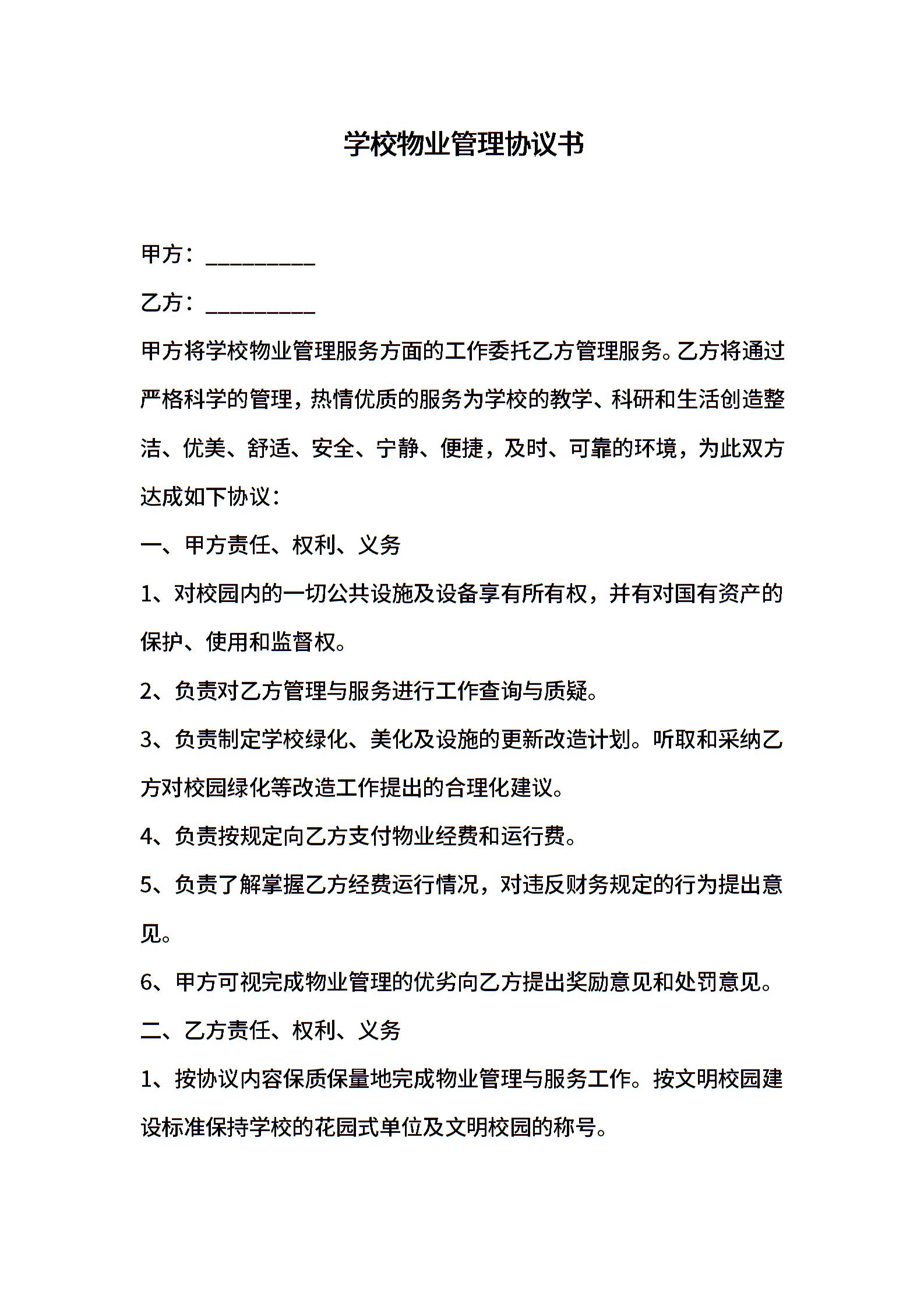 学校物业管理协议书