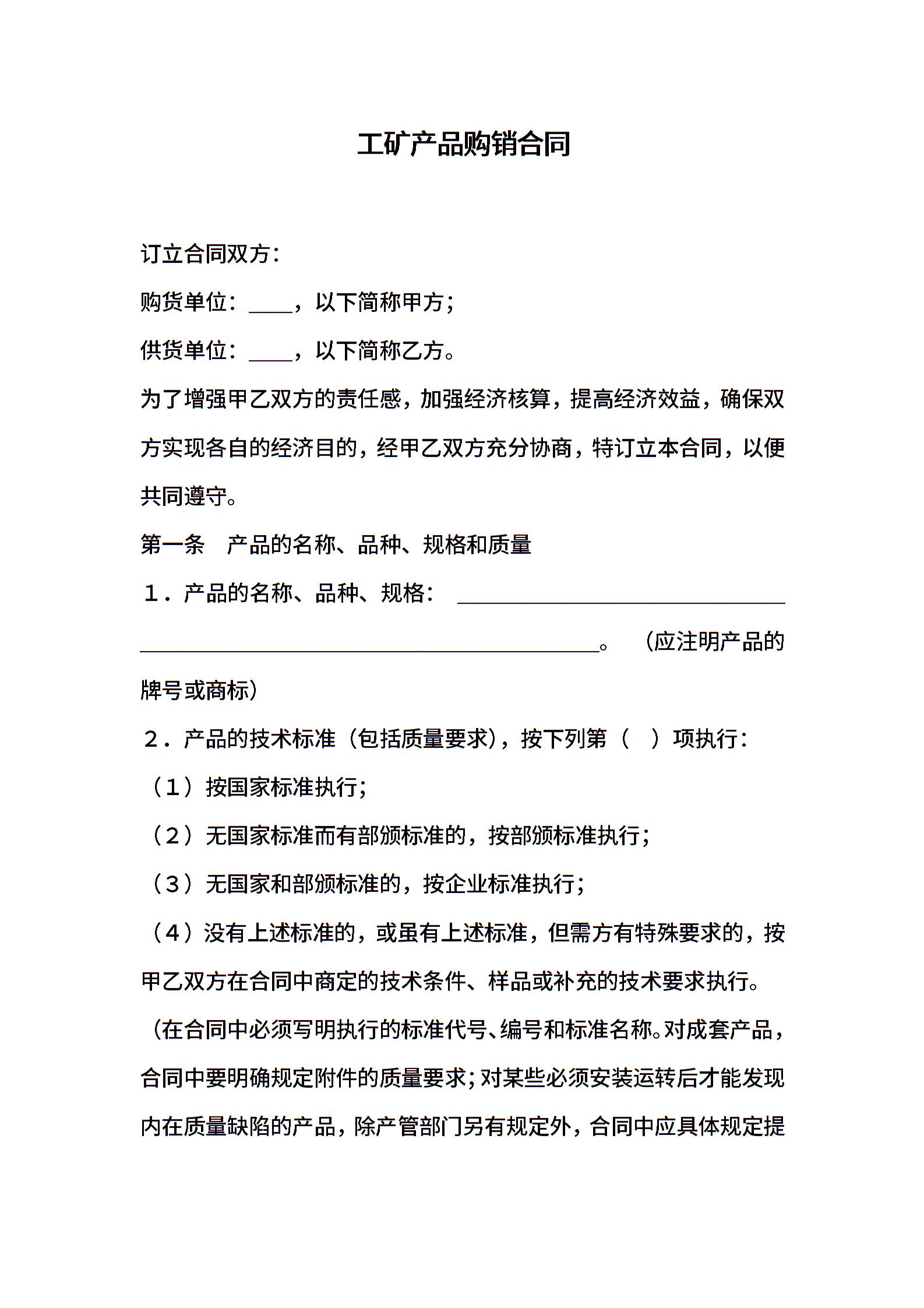工矿产品购销合同 (2)