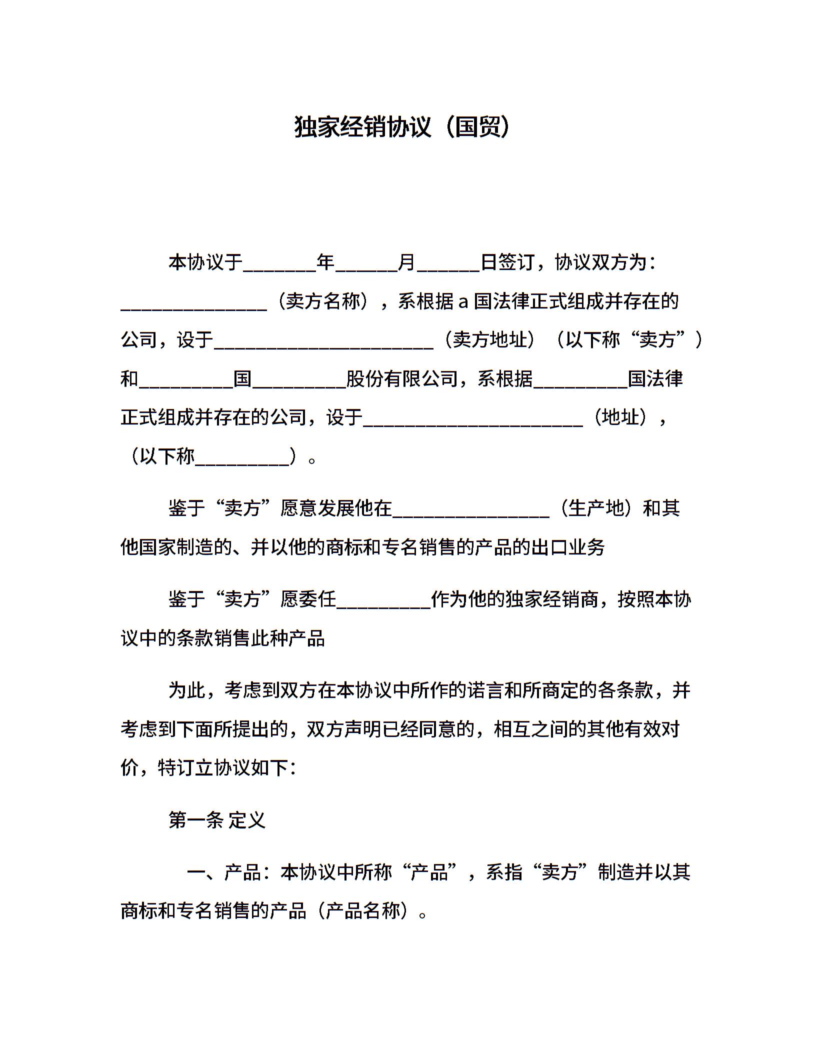 独家经销协议(国贸)