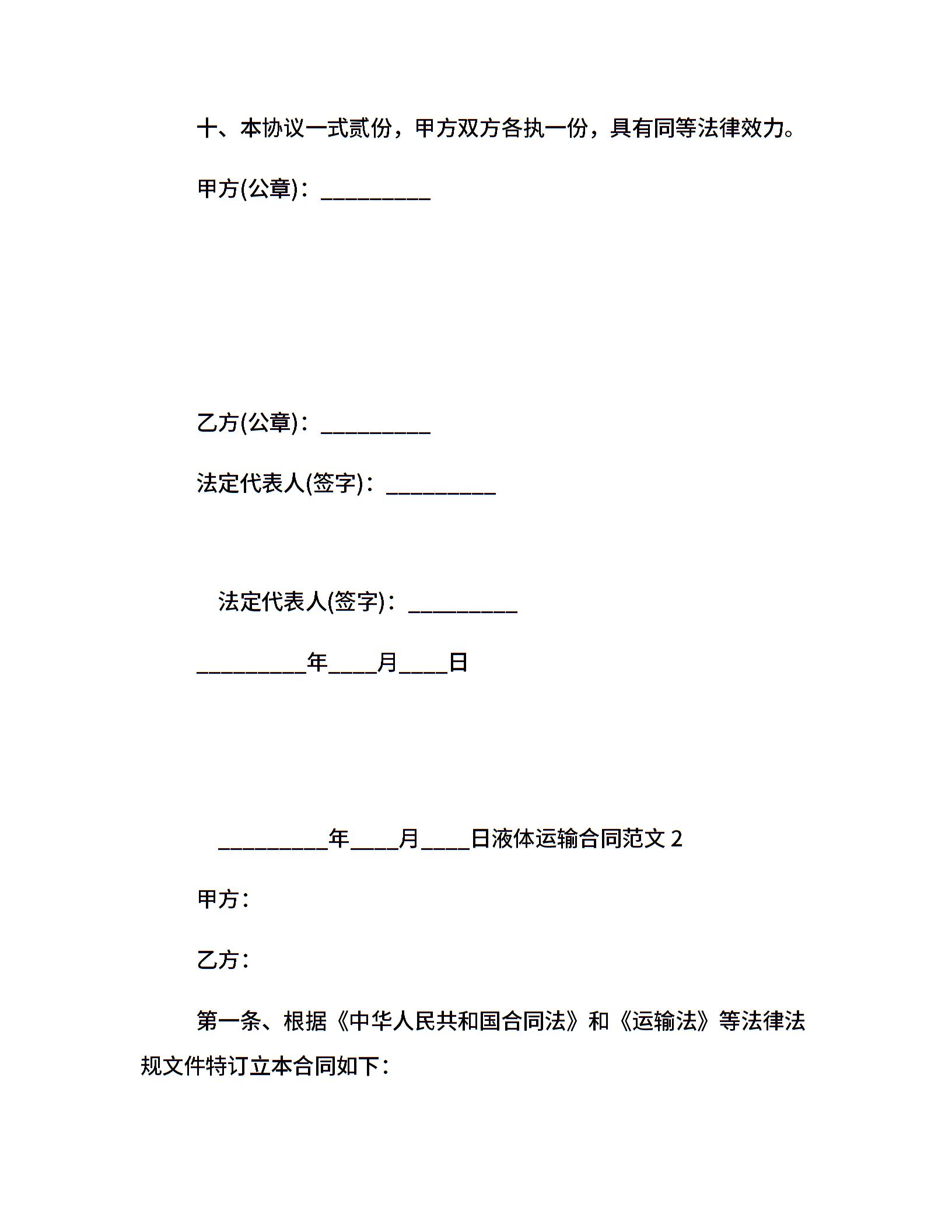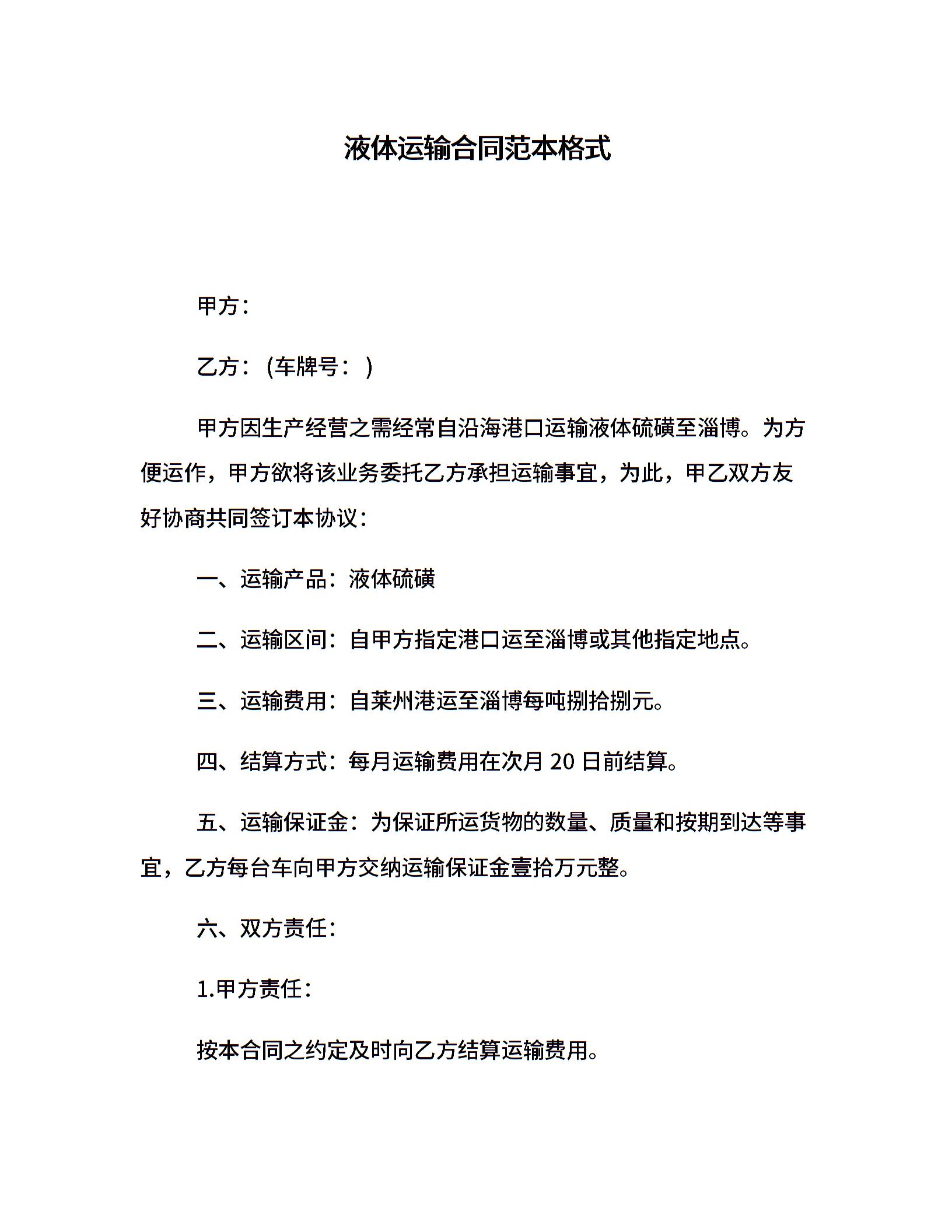 液体运输合同范本格式