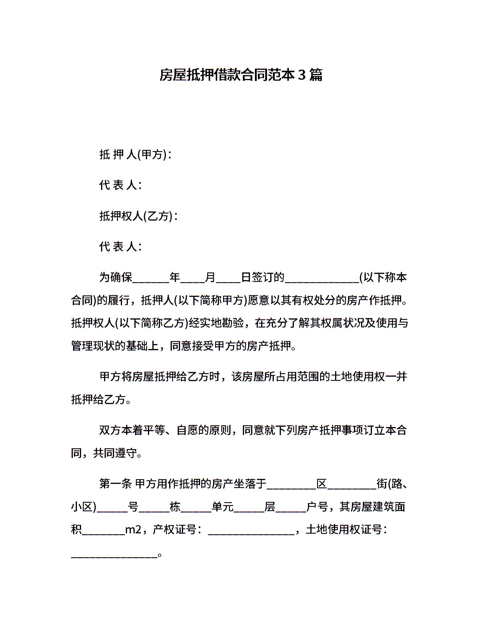房屋抵押借款合同范本3篇