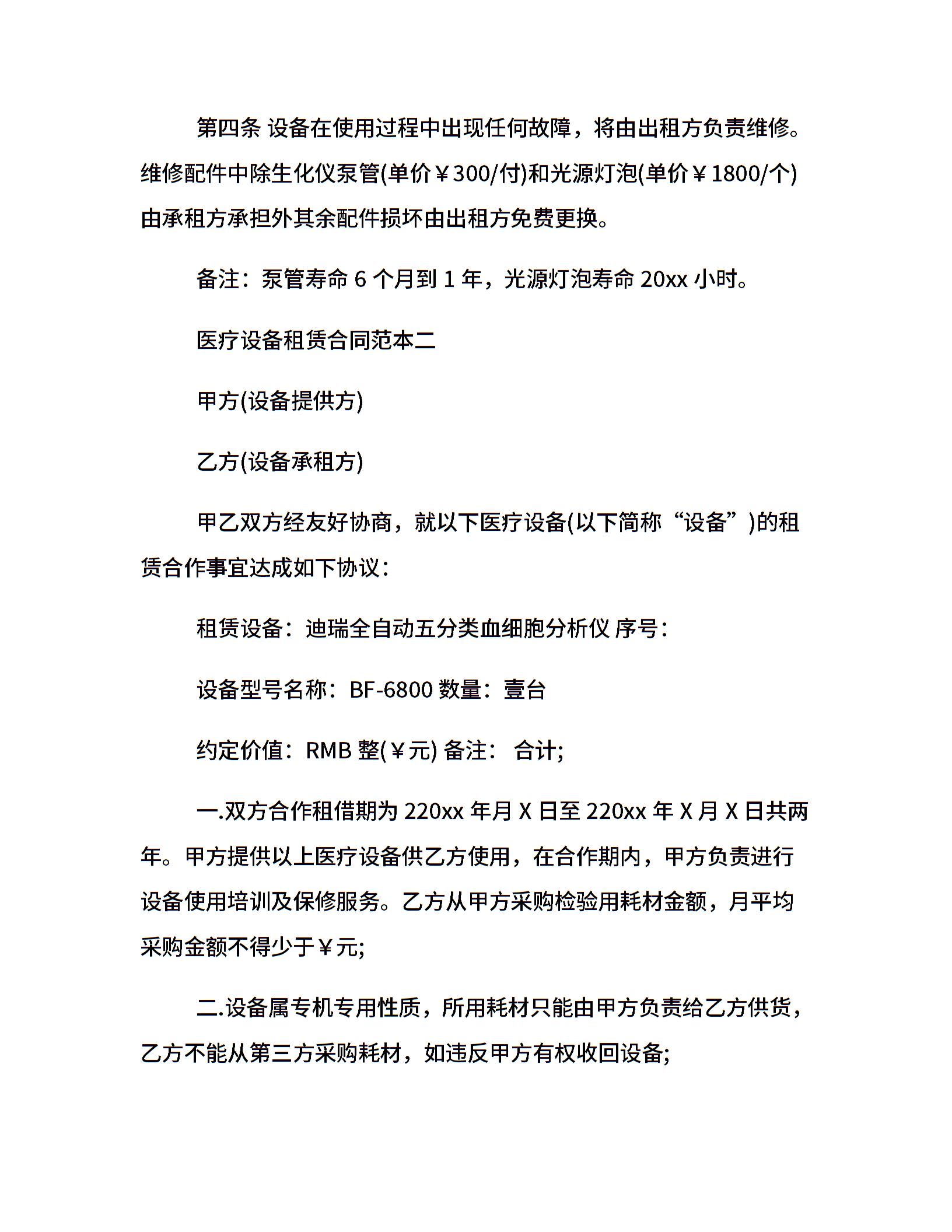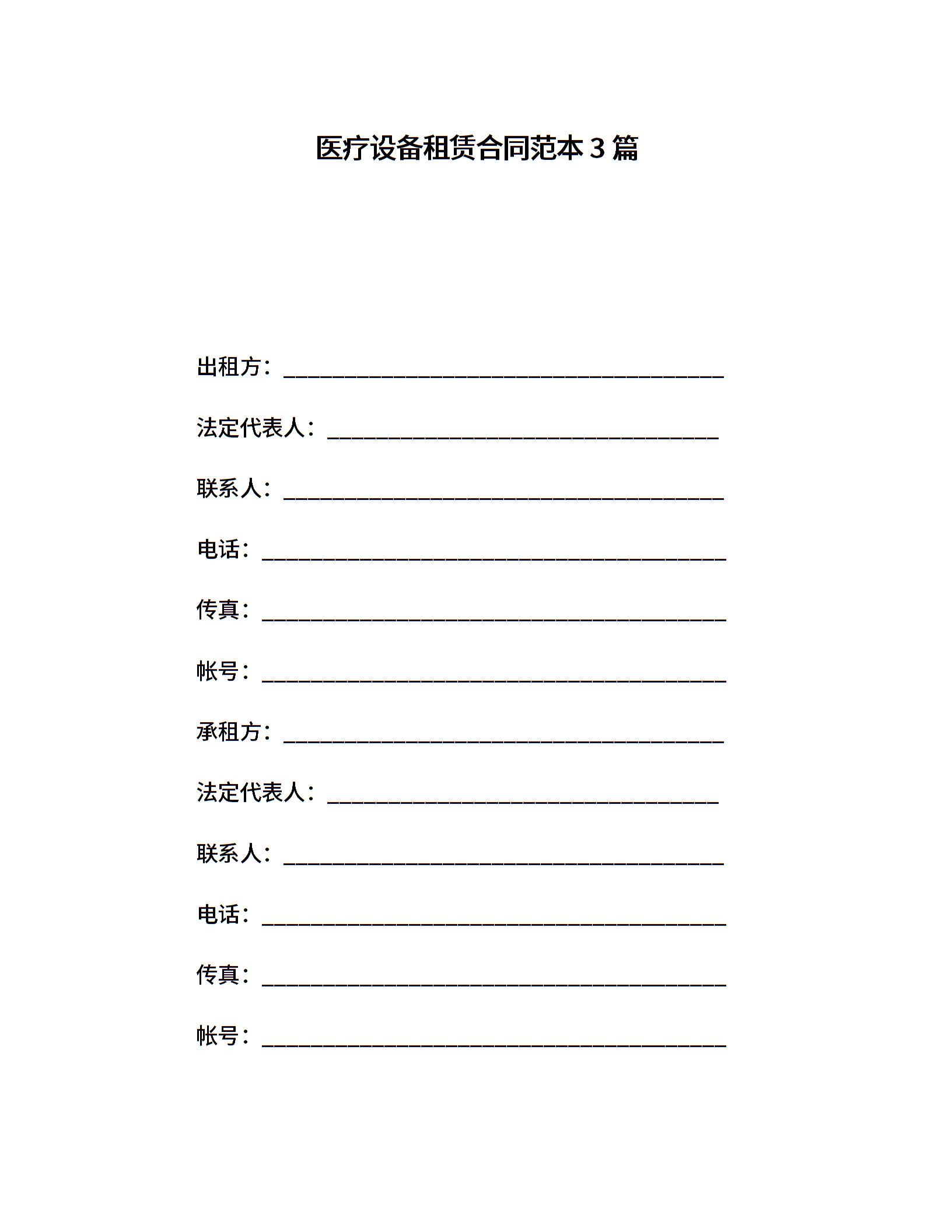 医疗设备租赁合同范本3篇