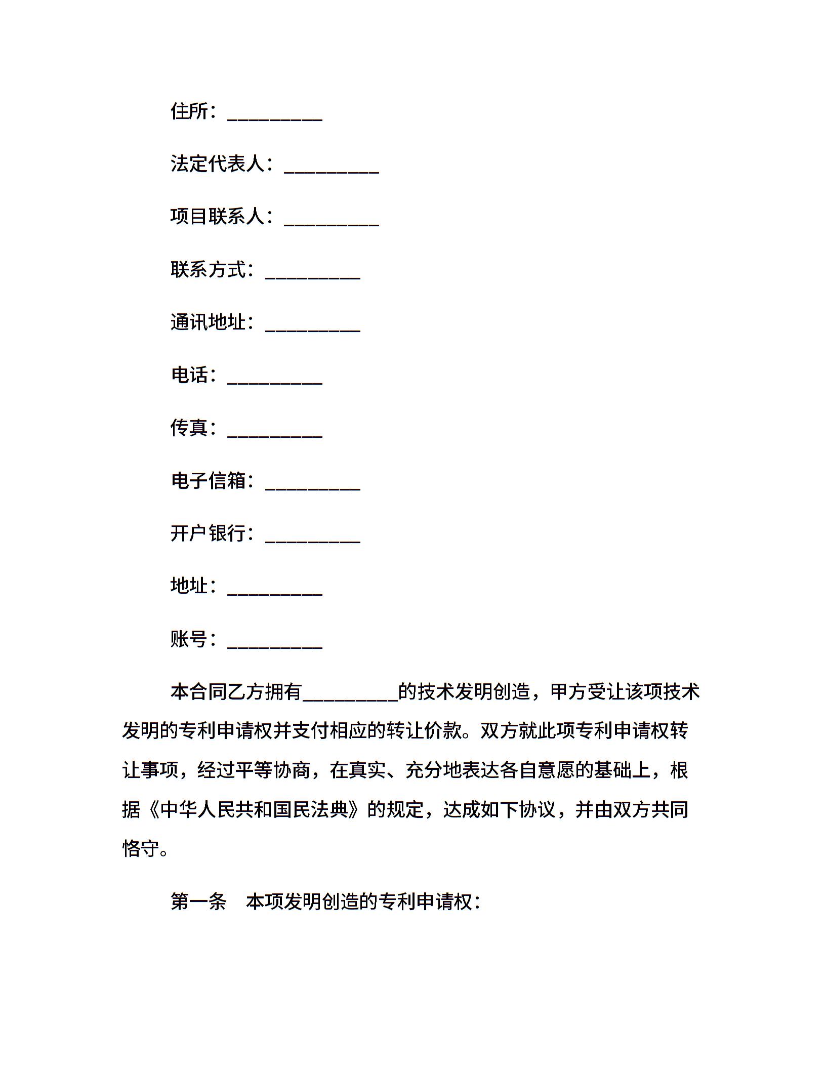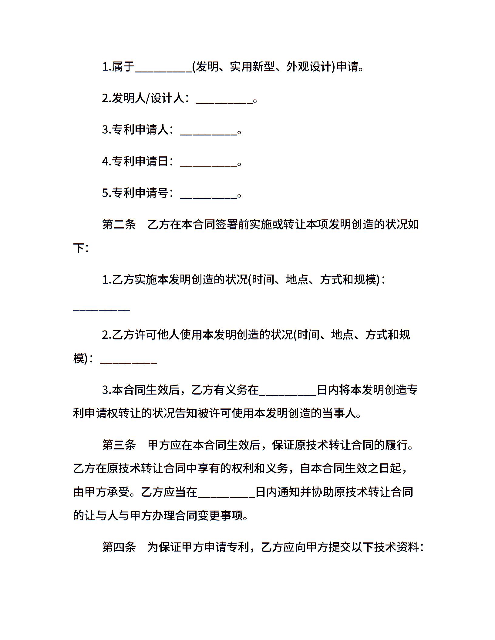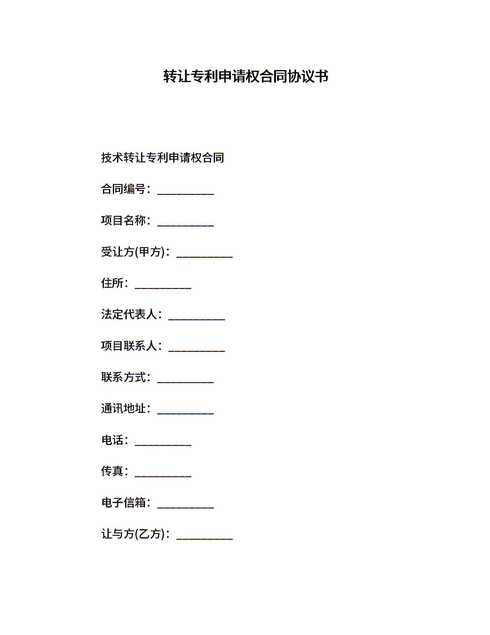 转让专利申请权合同协议书