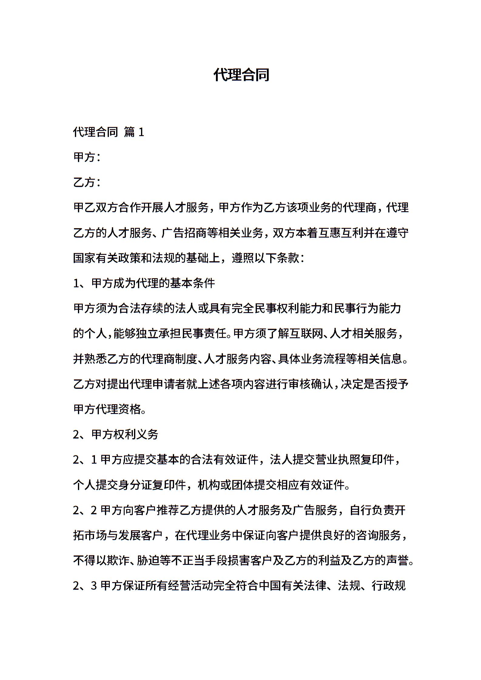 当前位置:量子办公 > 合同模板 > 代理合同 >