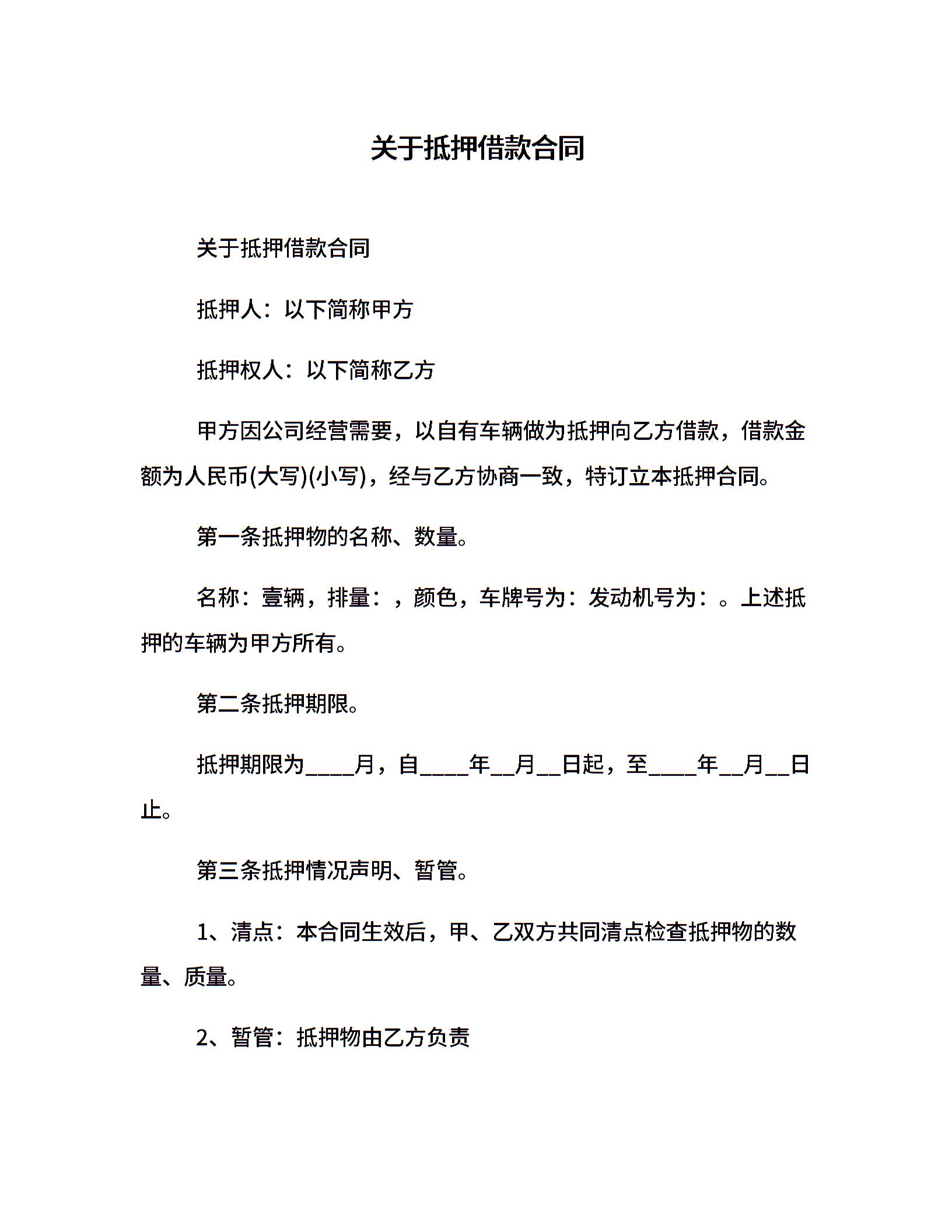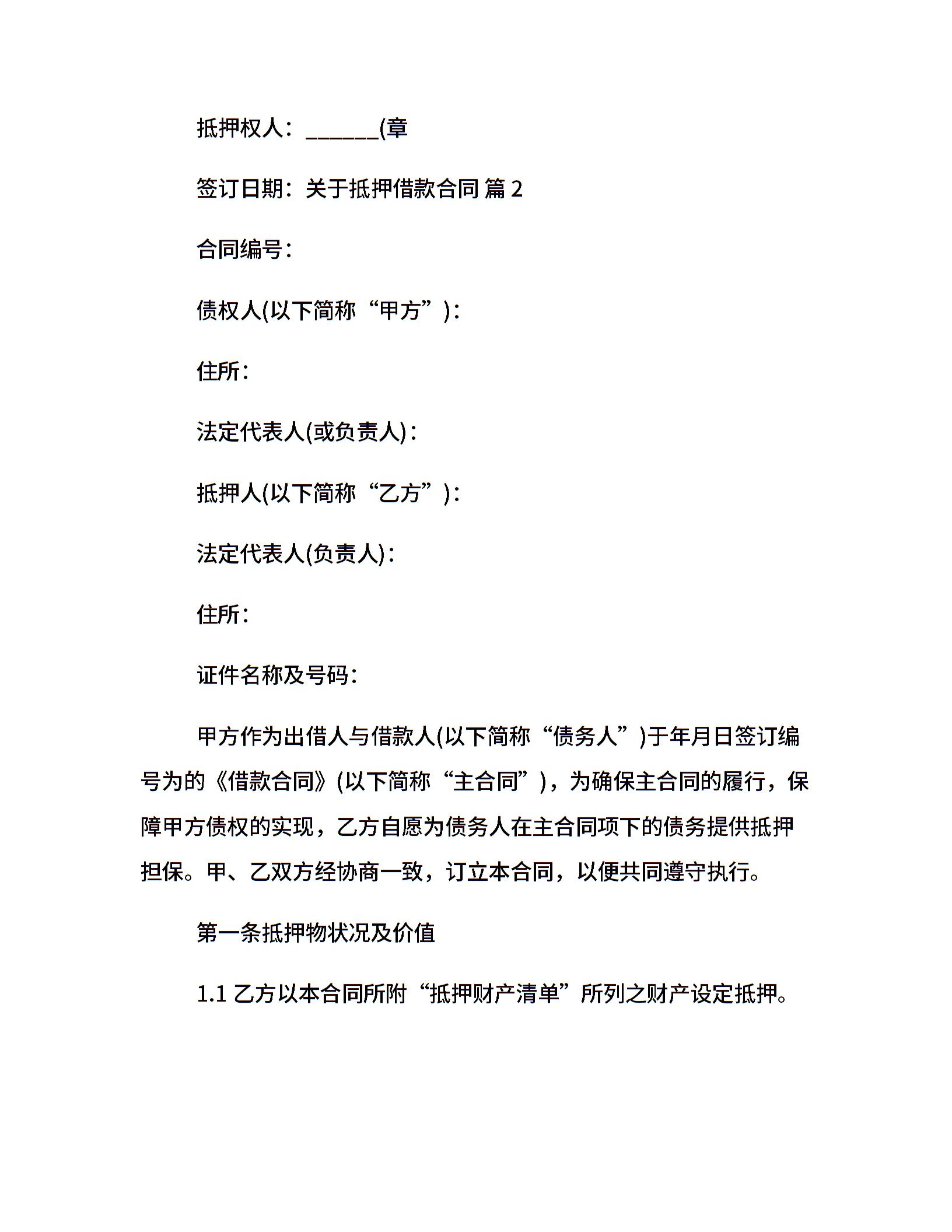 关于抵押借款合同