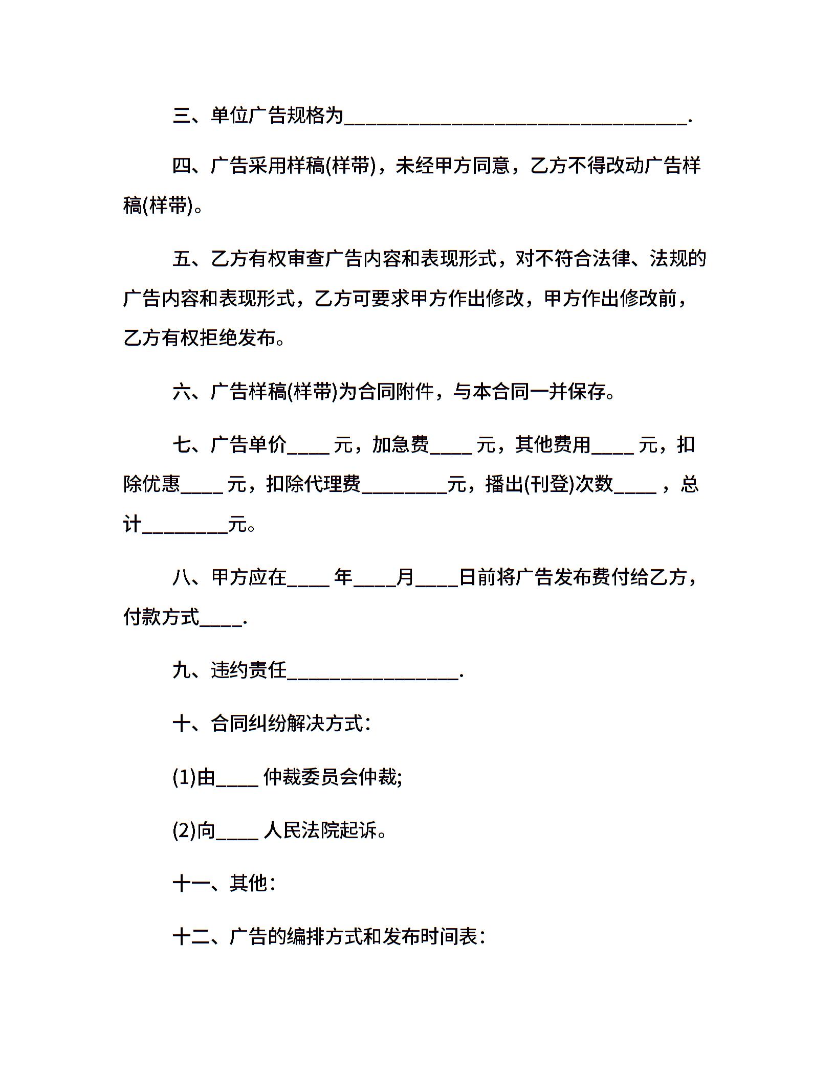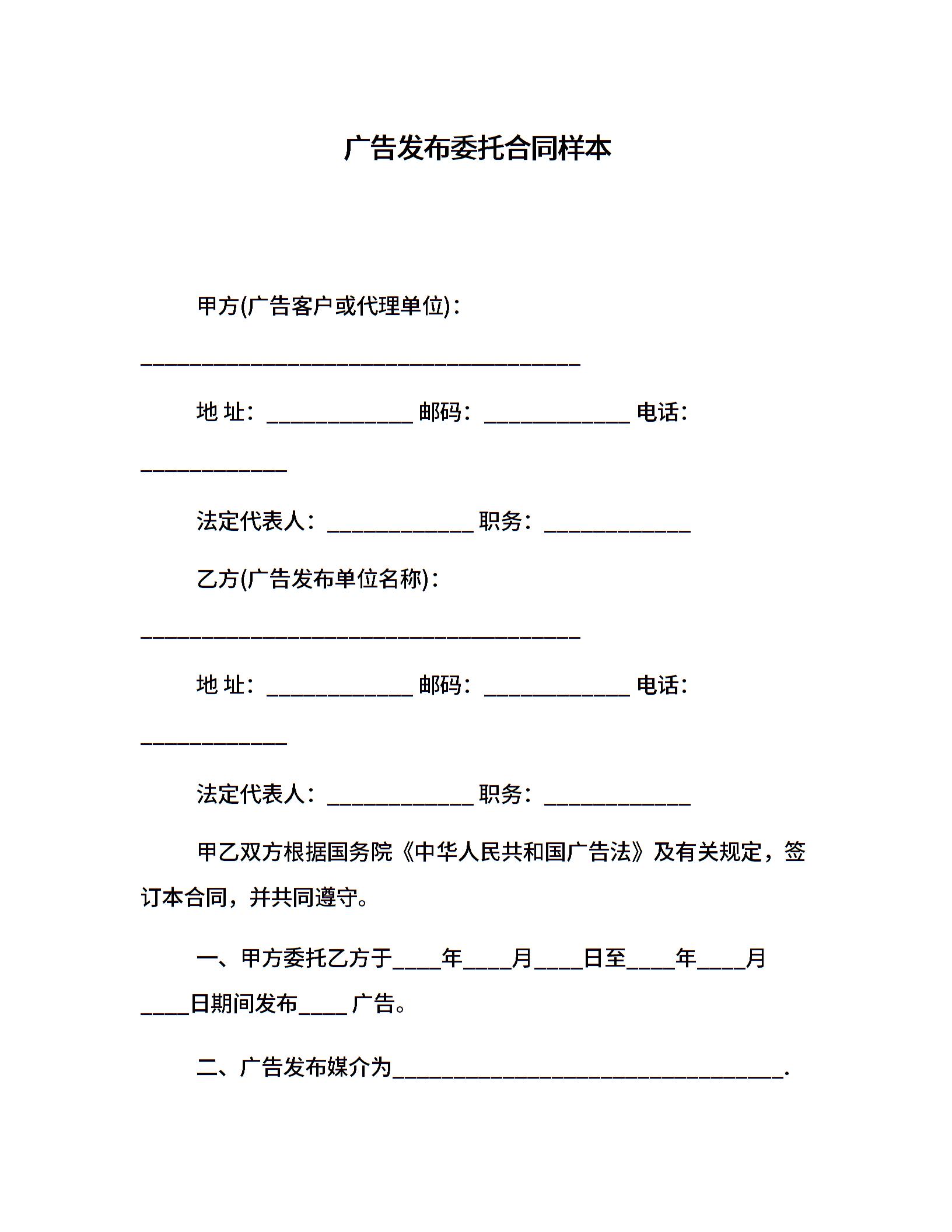 广告发布委托合同样本