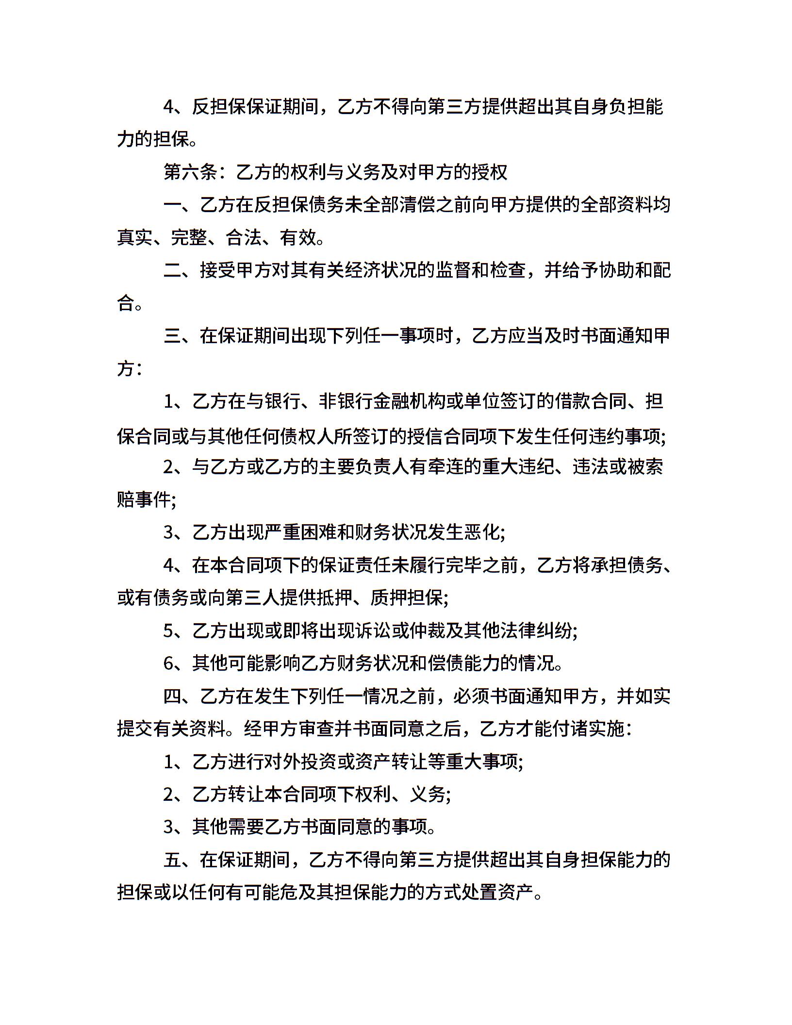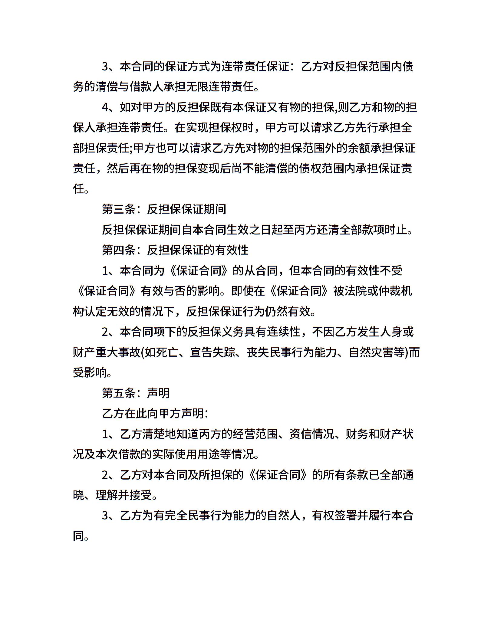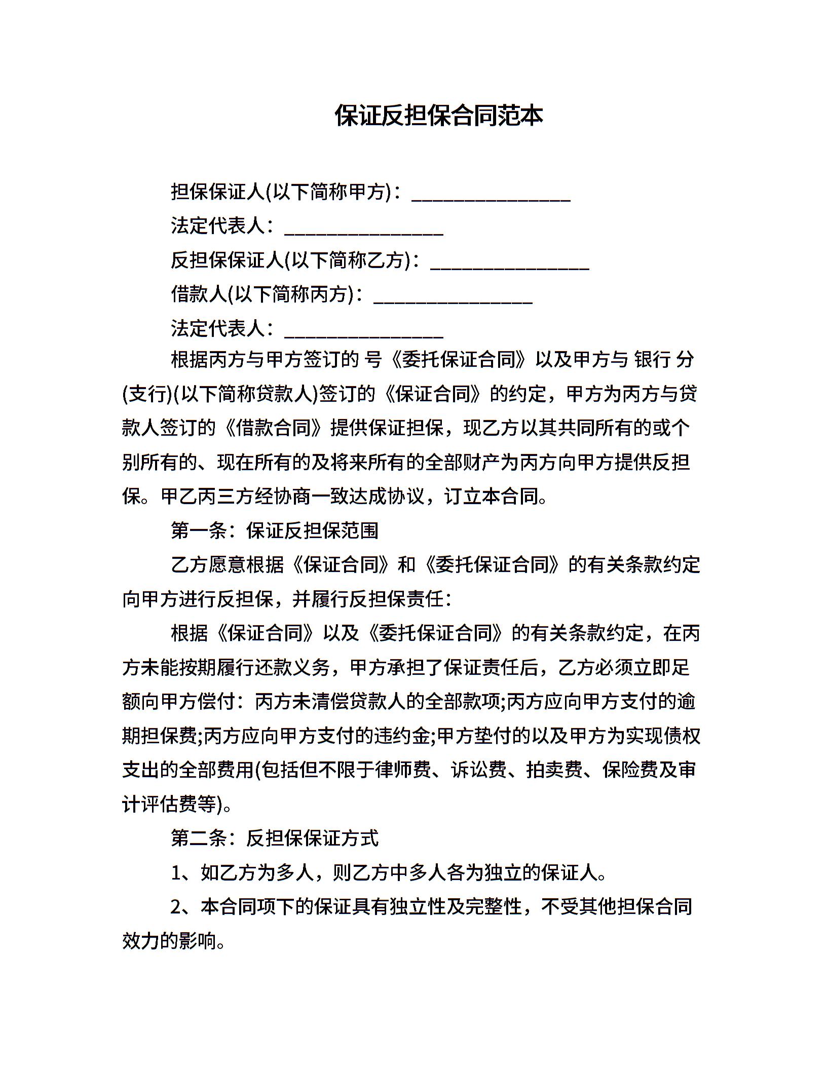 保证反担保合同范本
