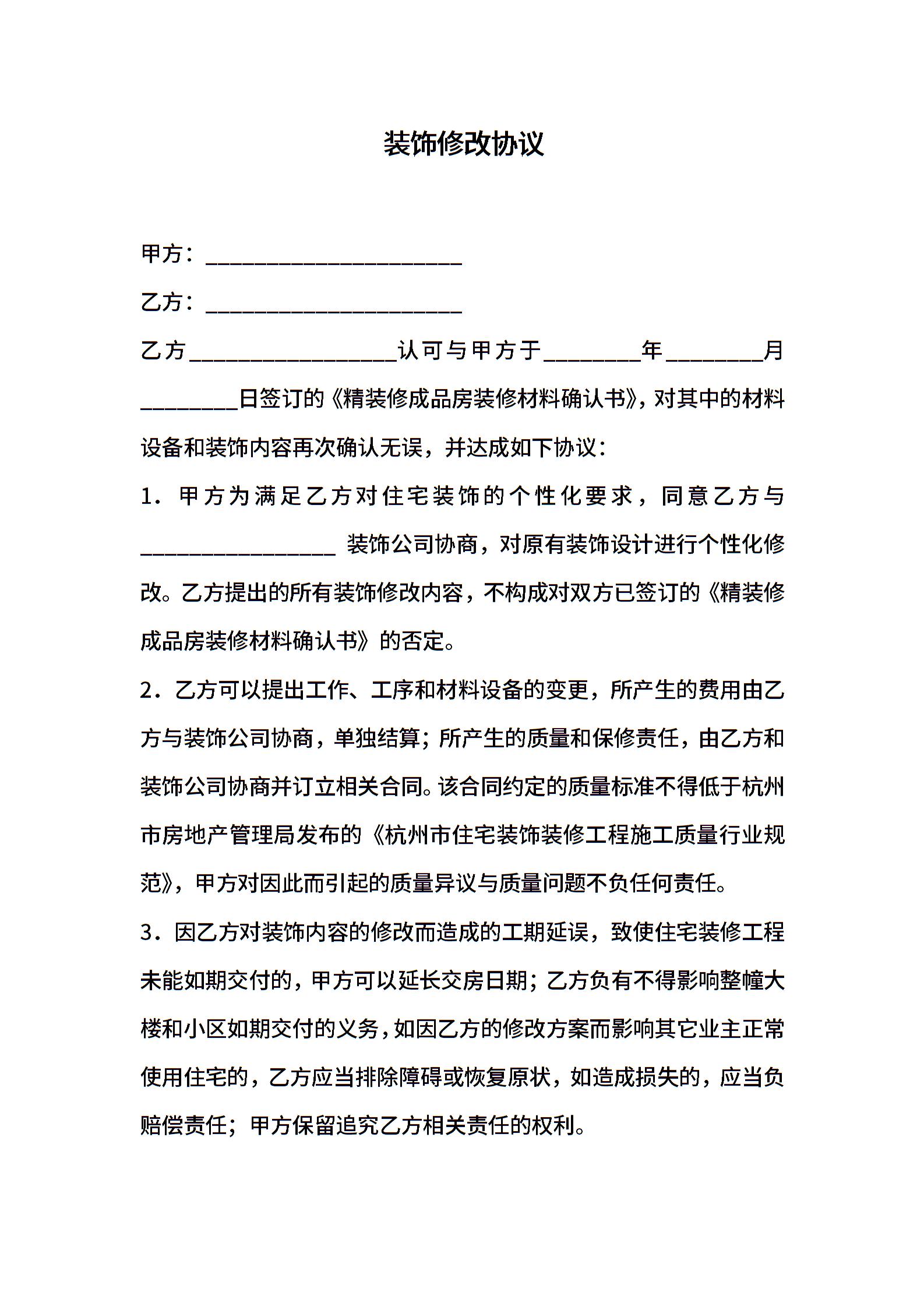装饰修改协议