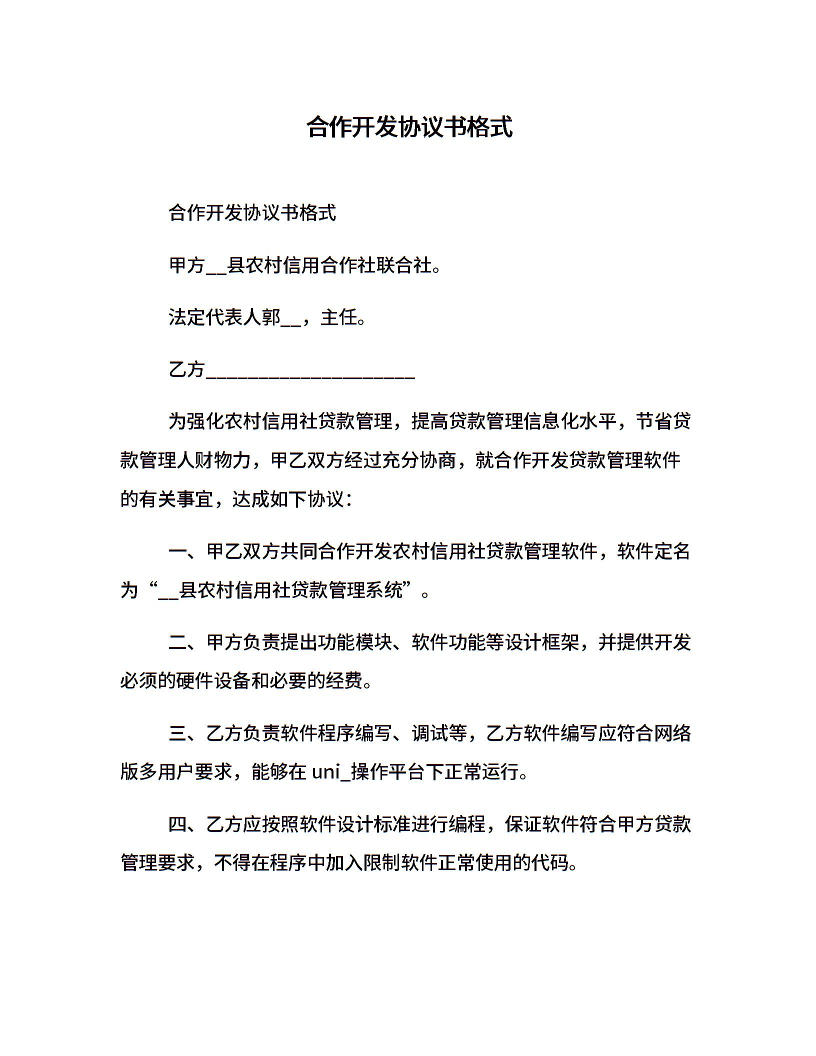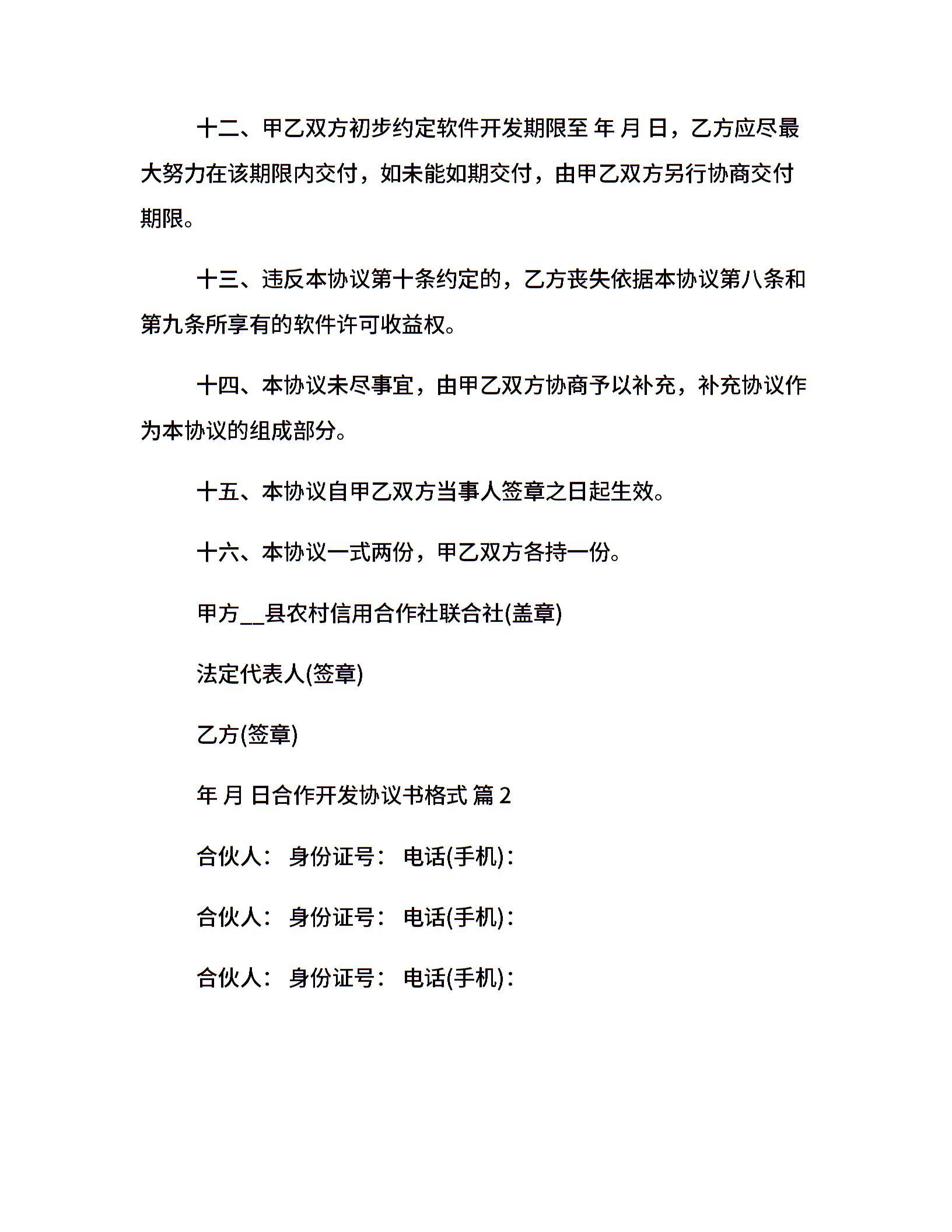 合作开发协议书格式