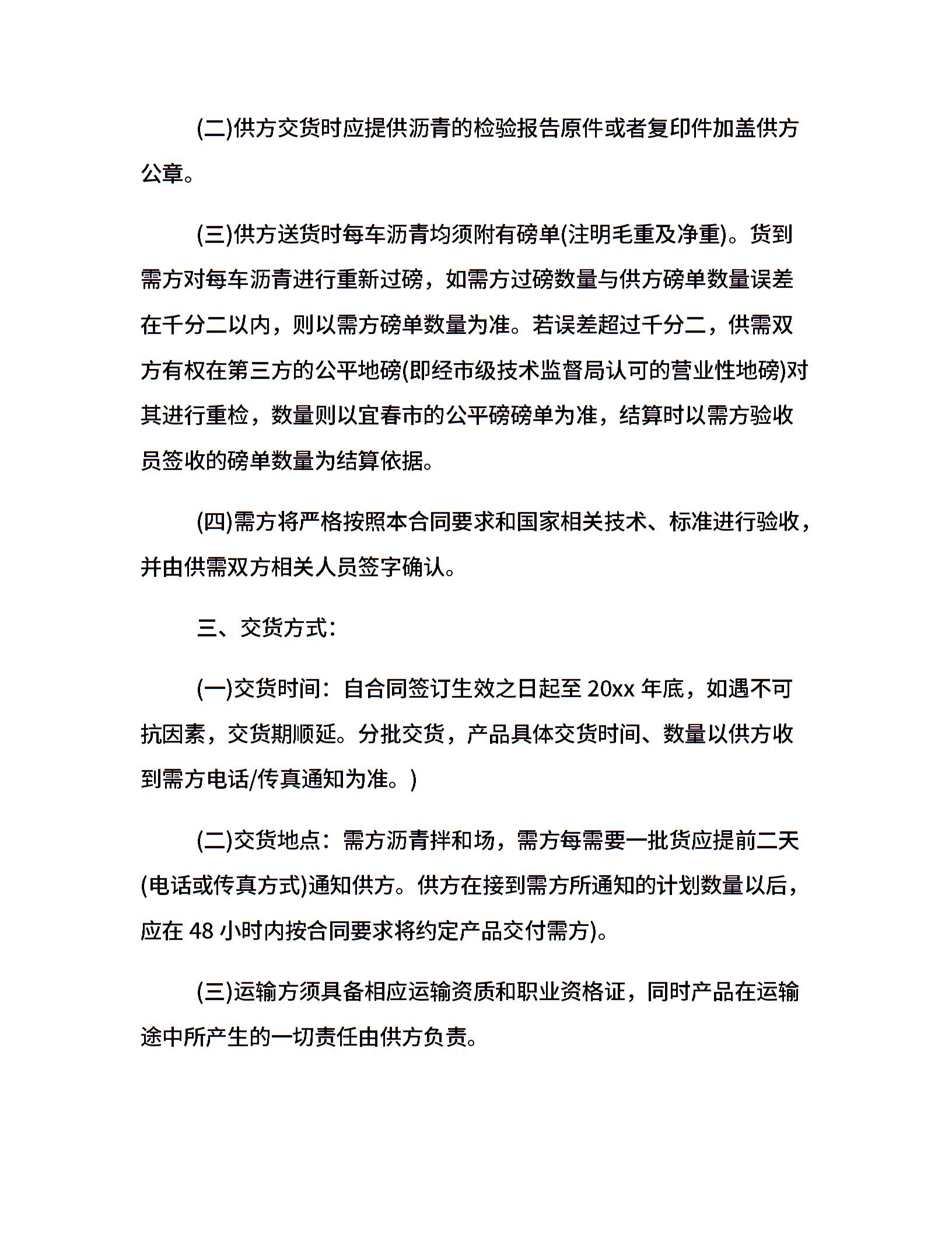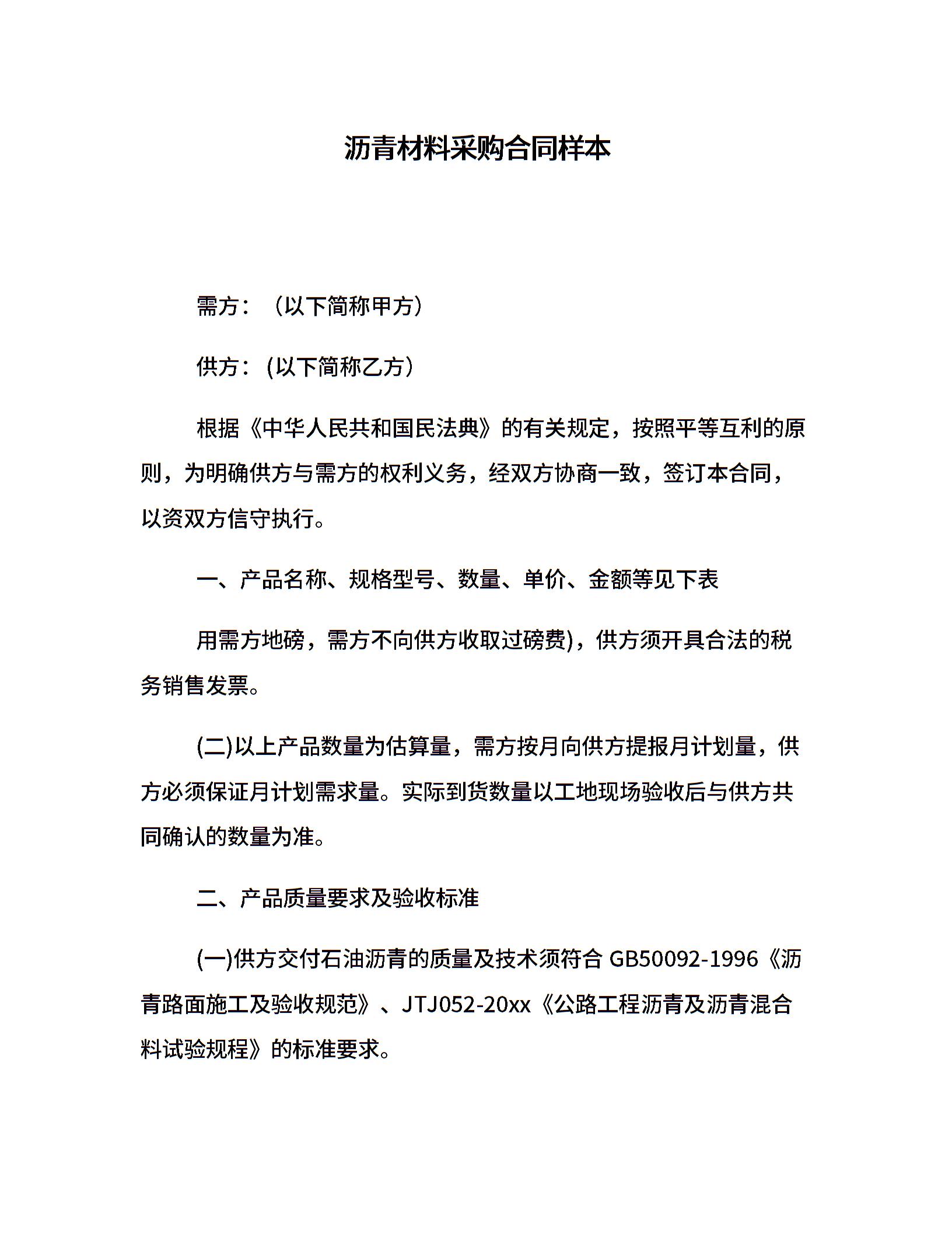 沥青材料采购合同样本