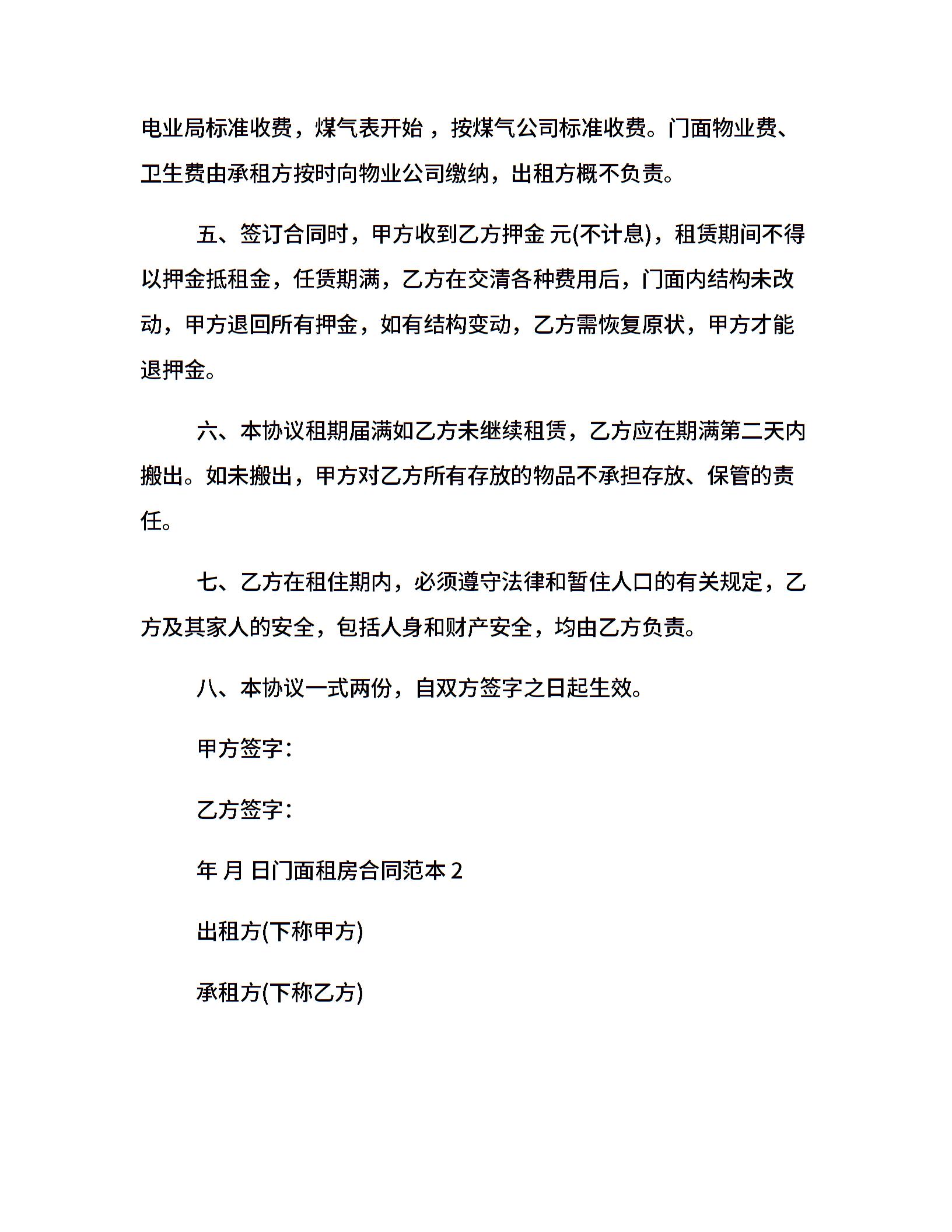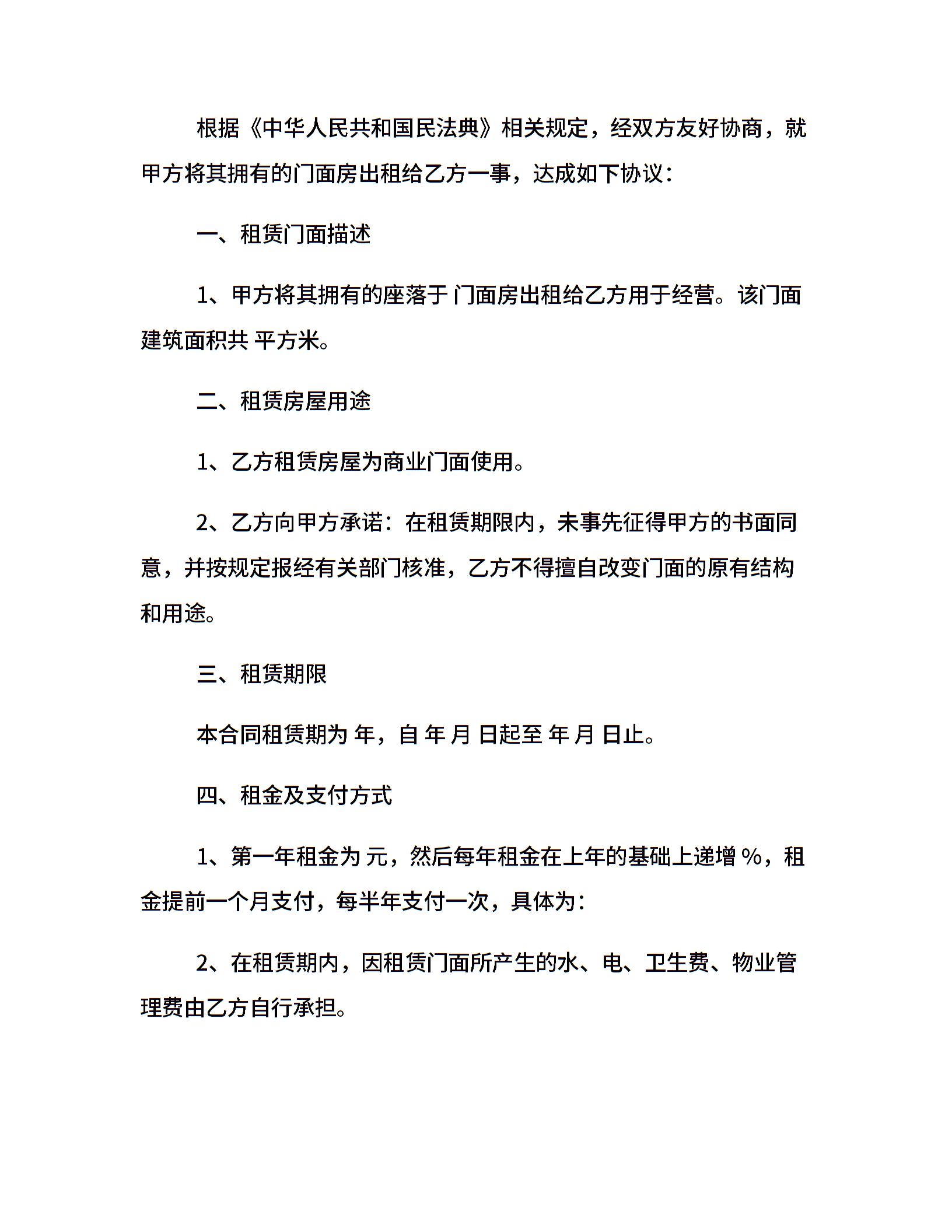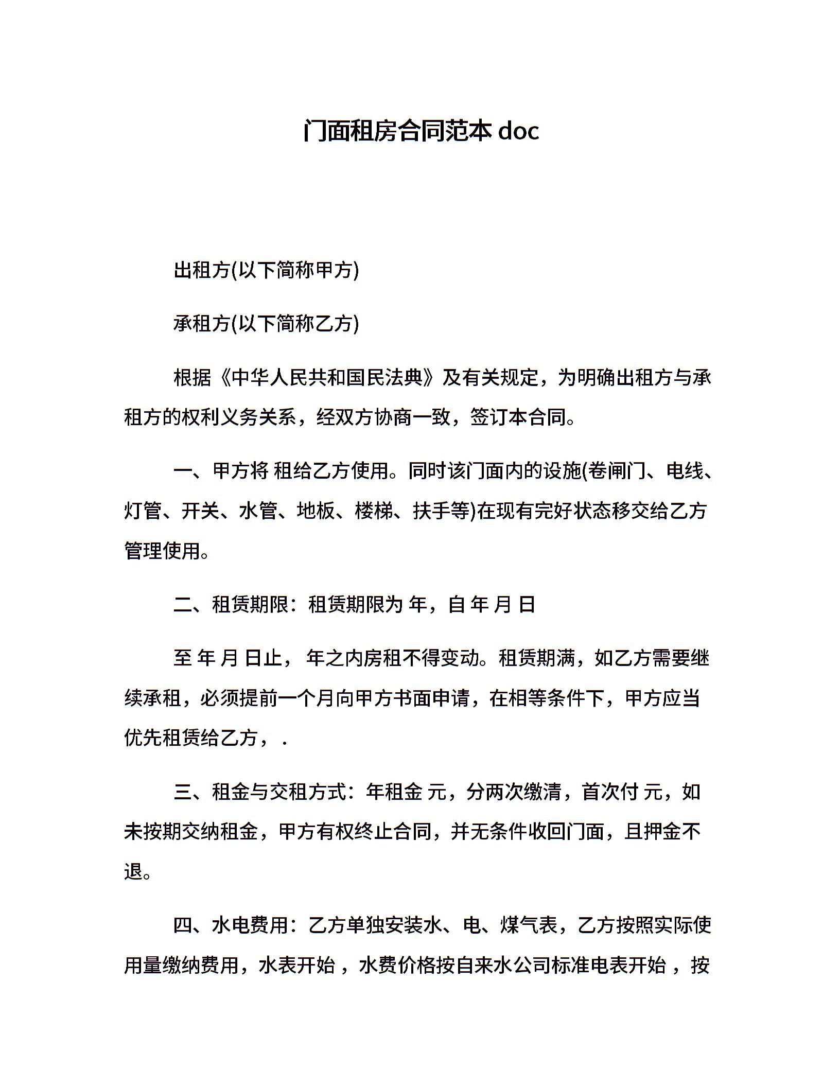 门面租房合同范本doc