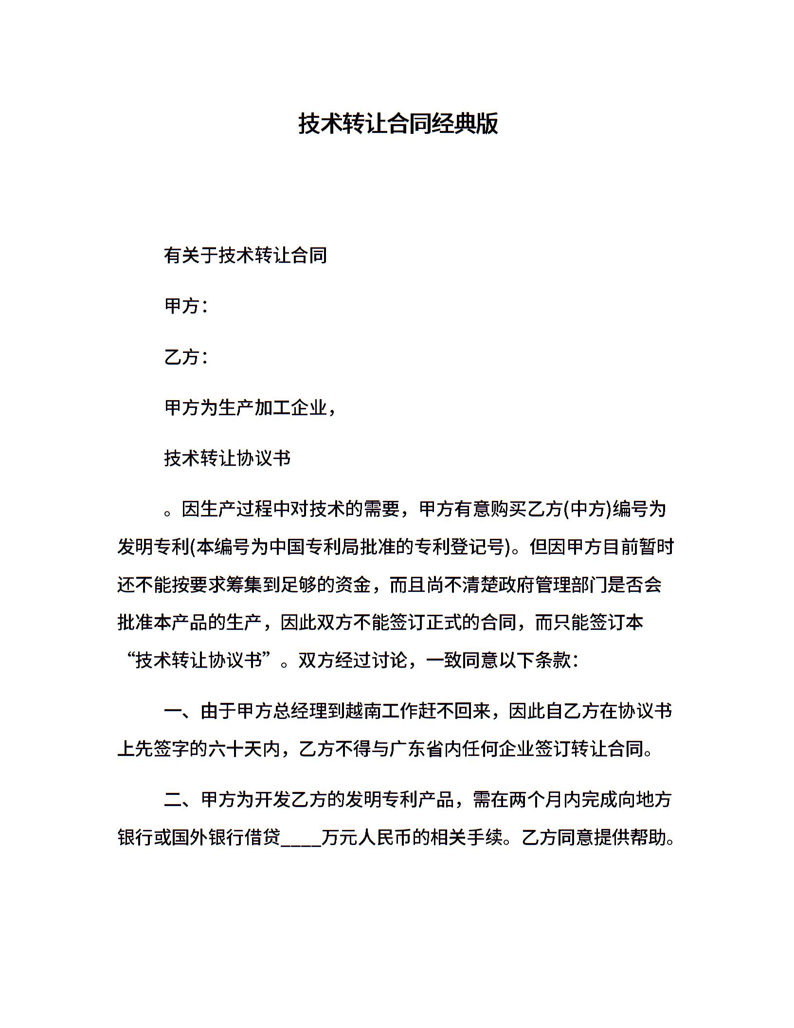 技术转让合同经典版