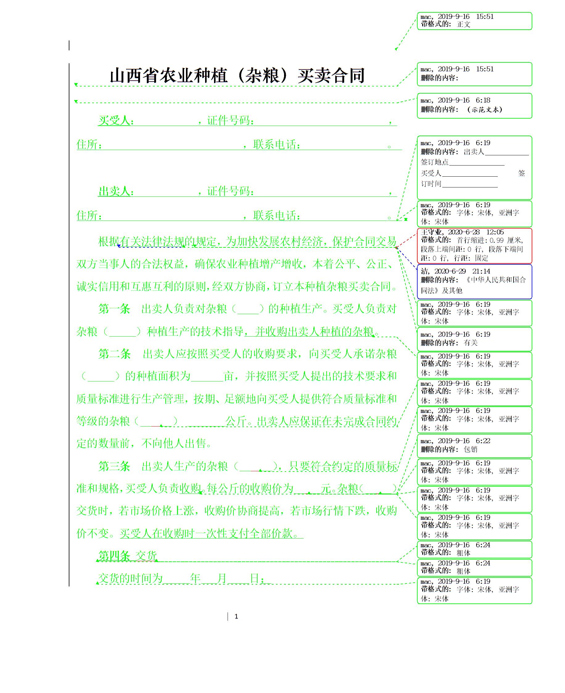 山西省农业种植(杂粮)买卖合同