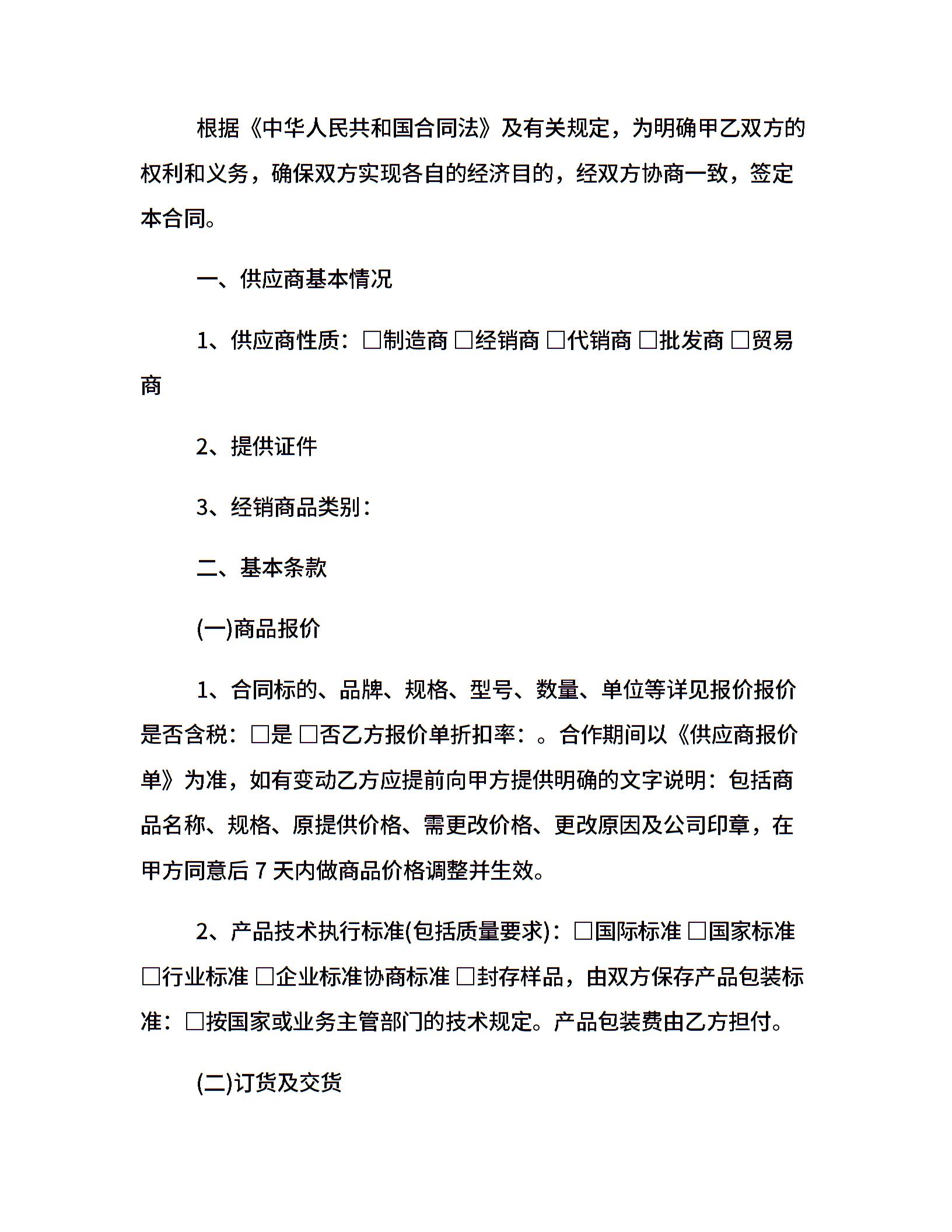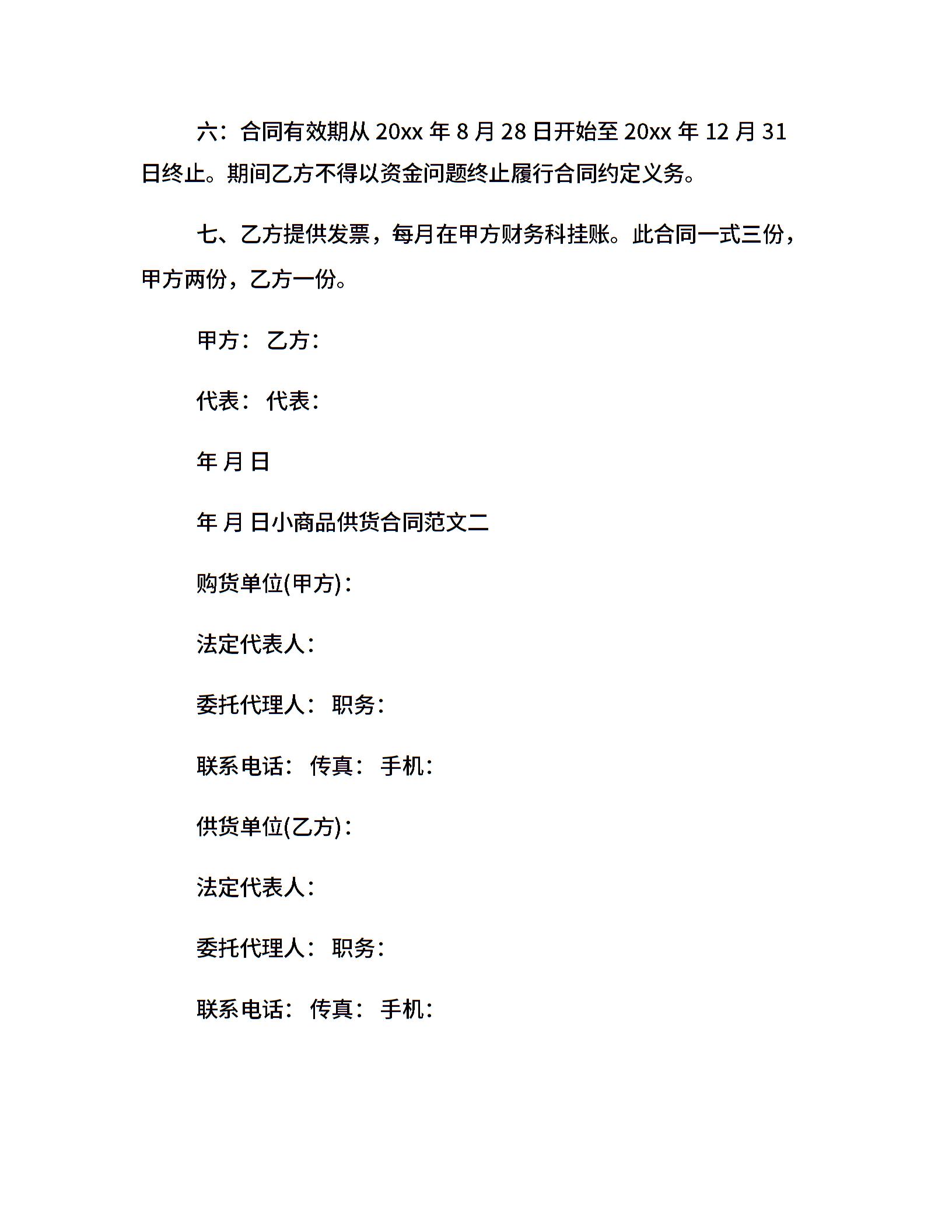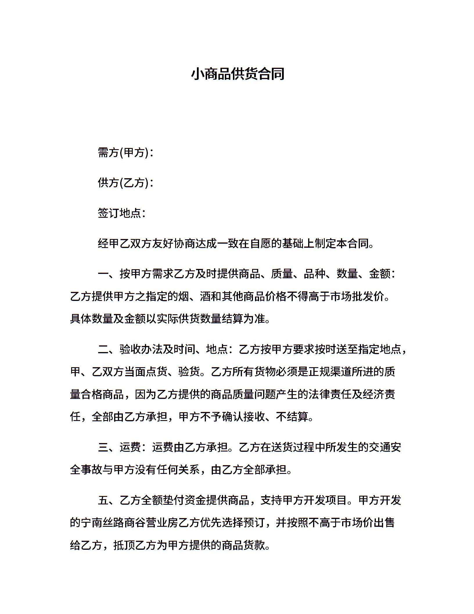 小商品供货合同