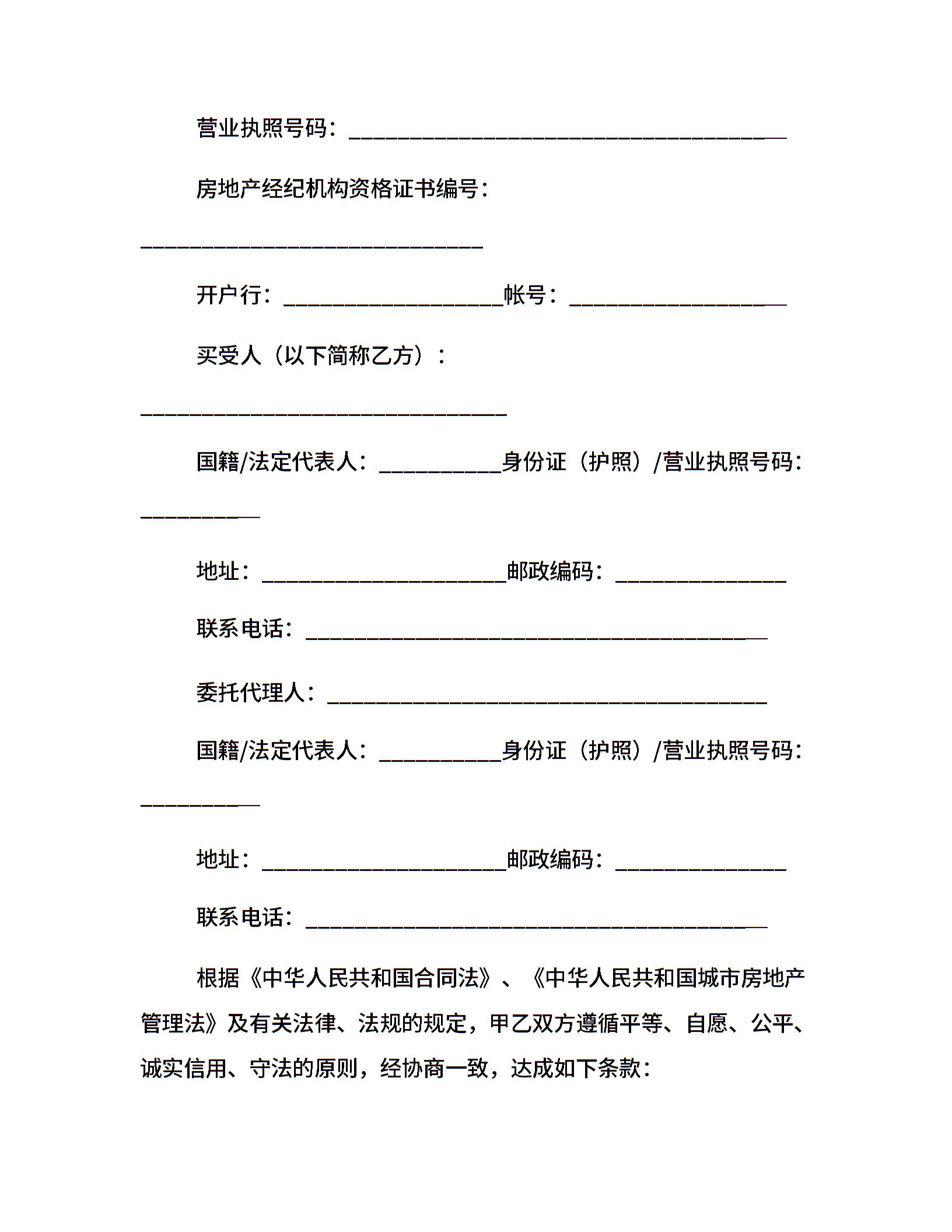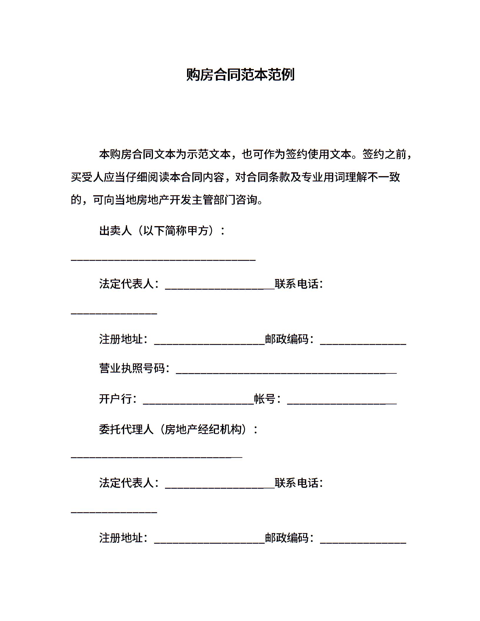 购房合同范本范例