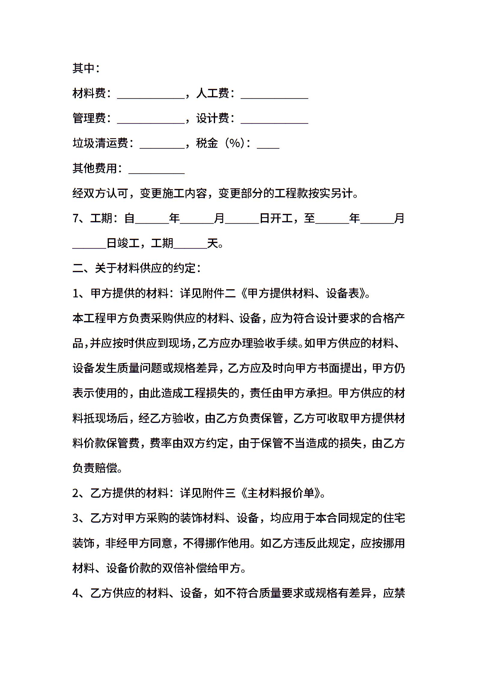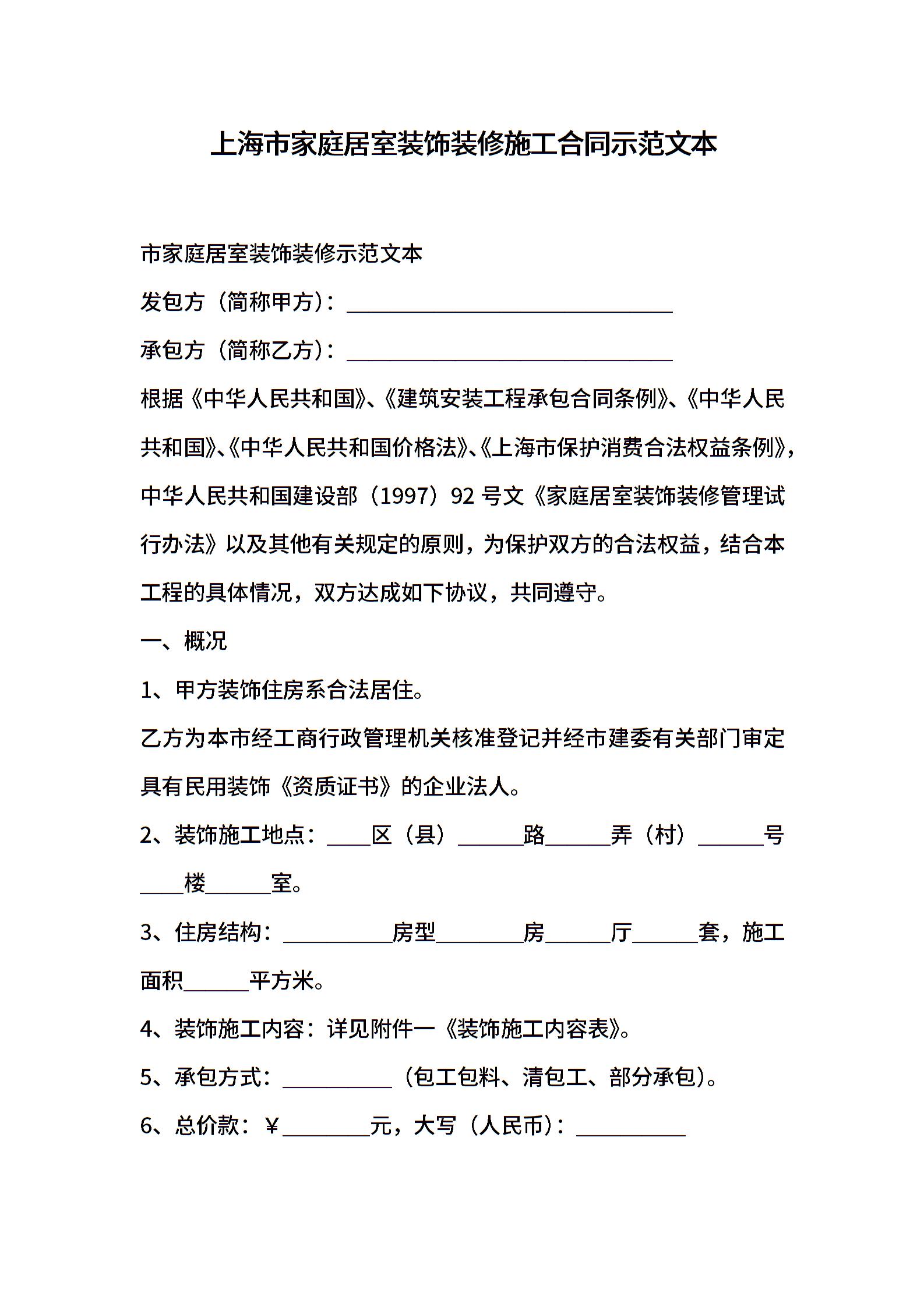 上海市家庭居室装饰装修施工合同示范文本