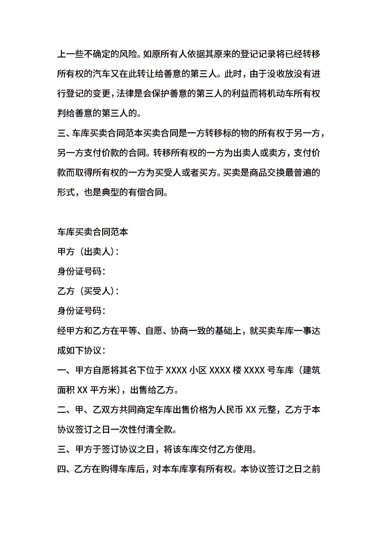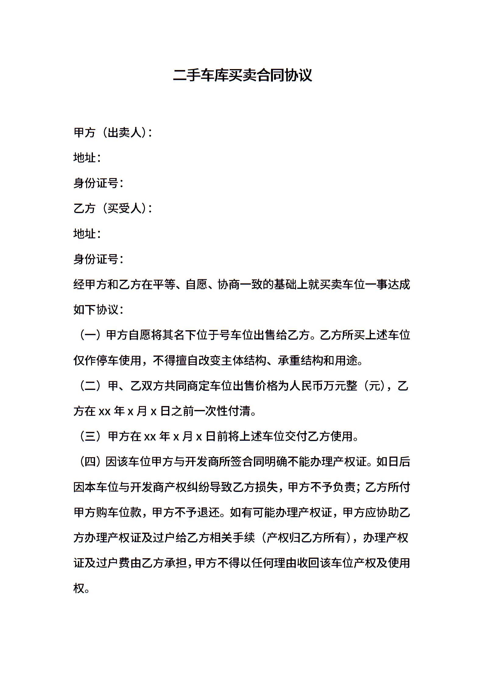 二手车库买卖合同协议