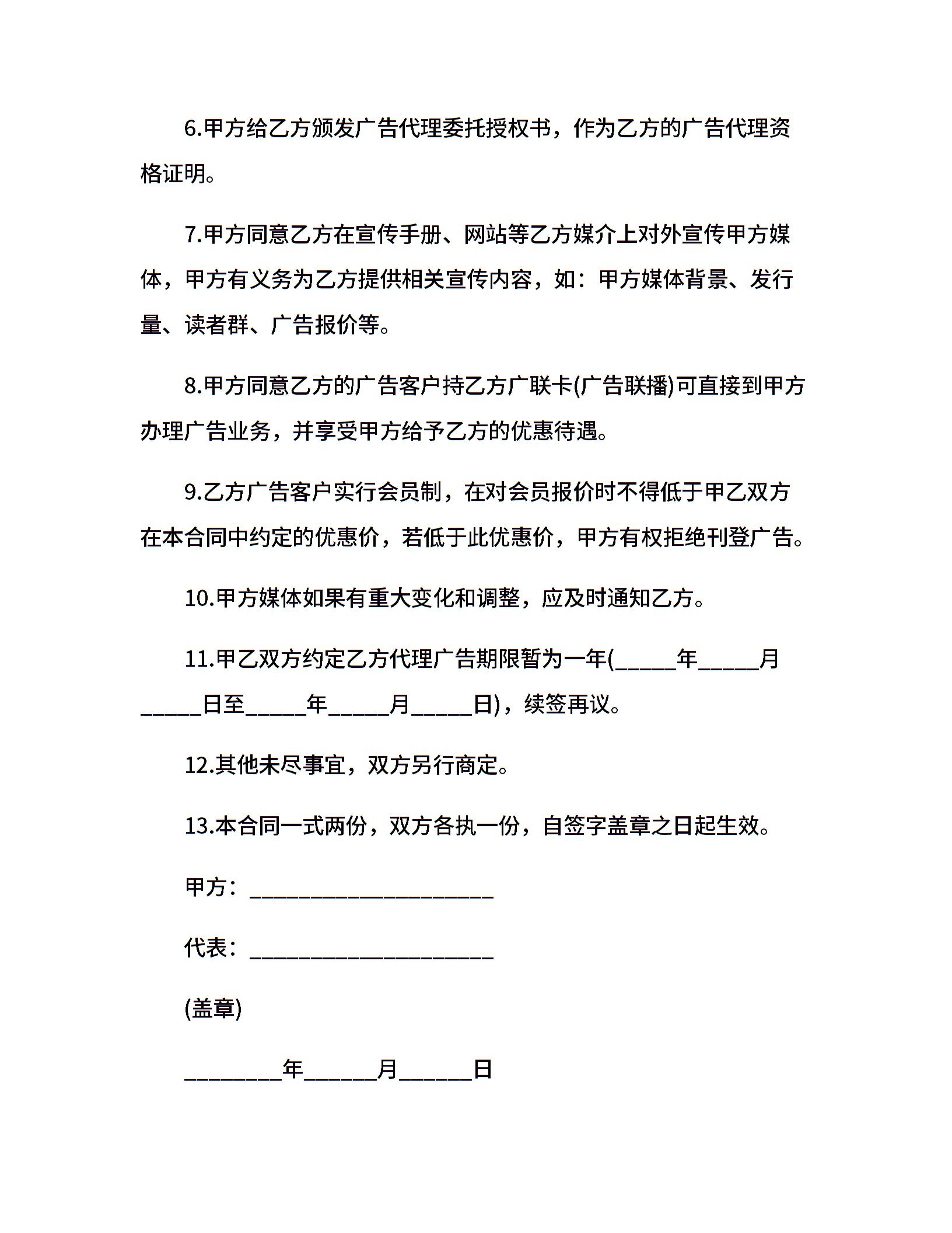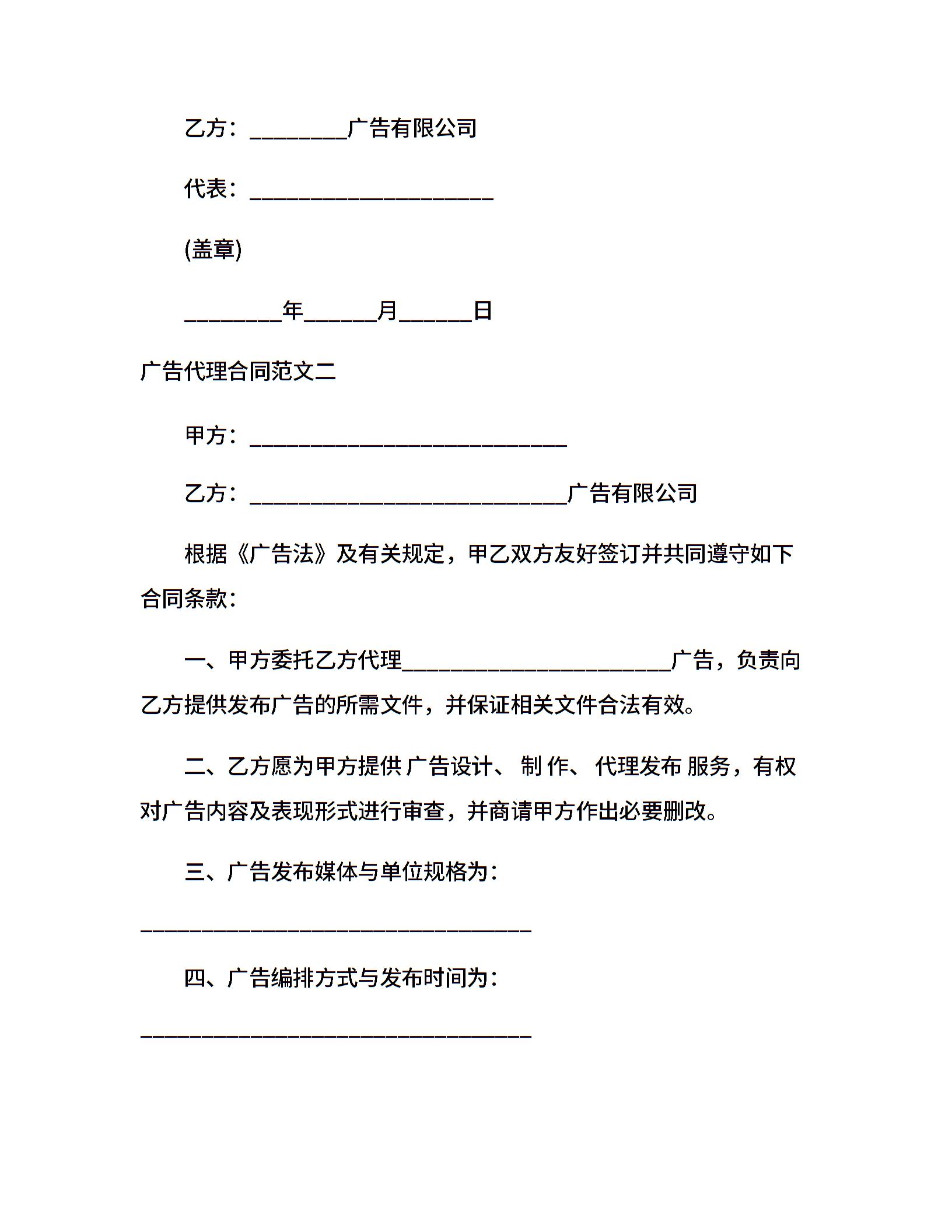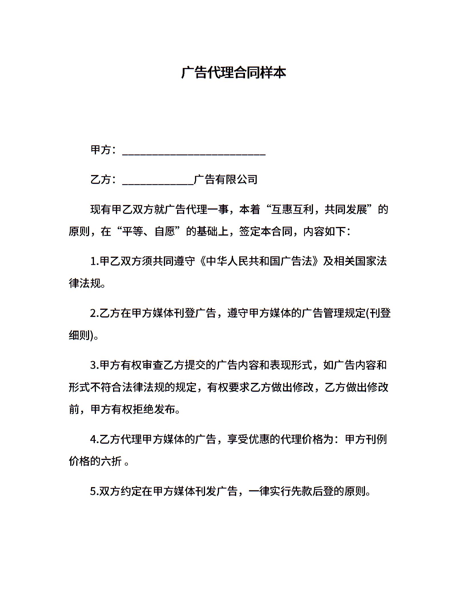 广告代理合同样本