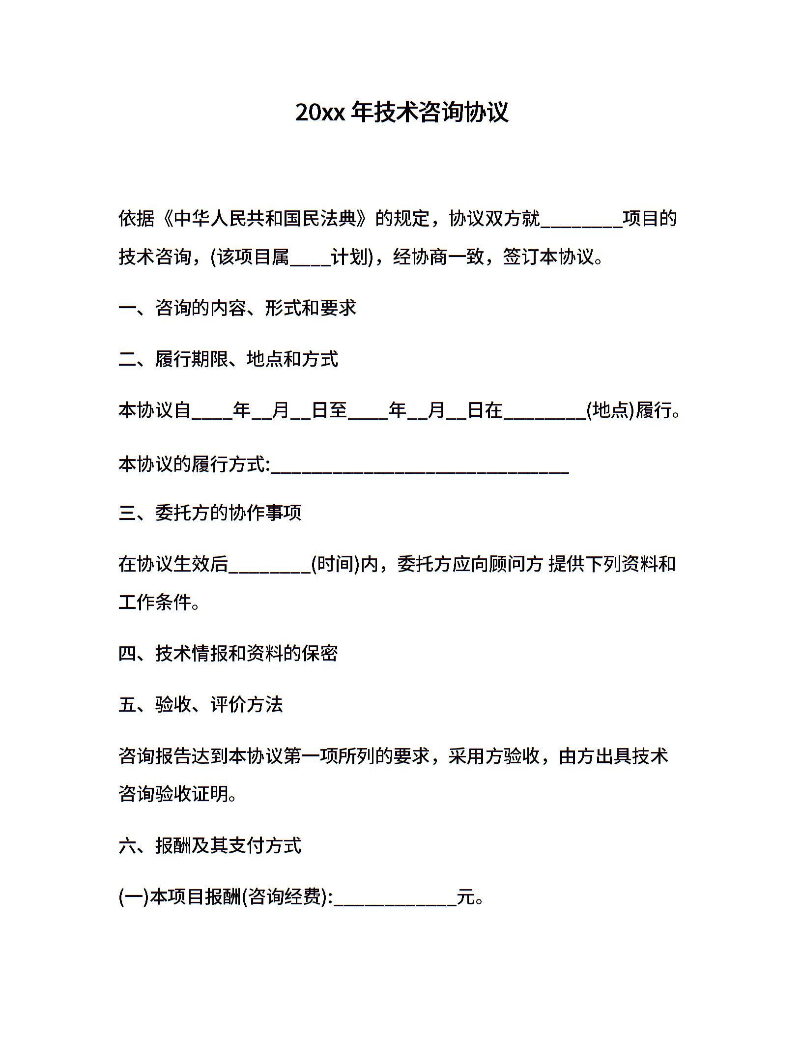 20xx年技术咨询协议