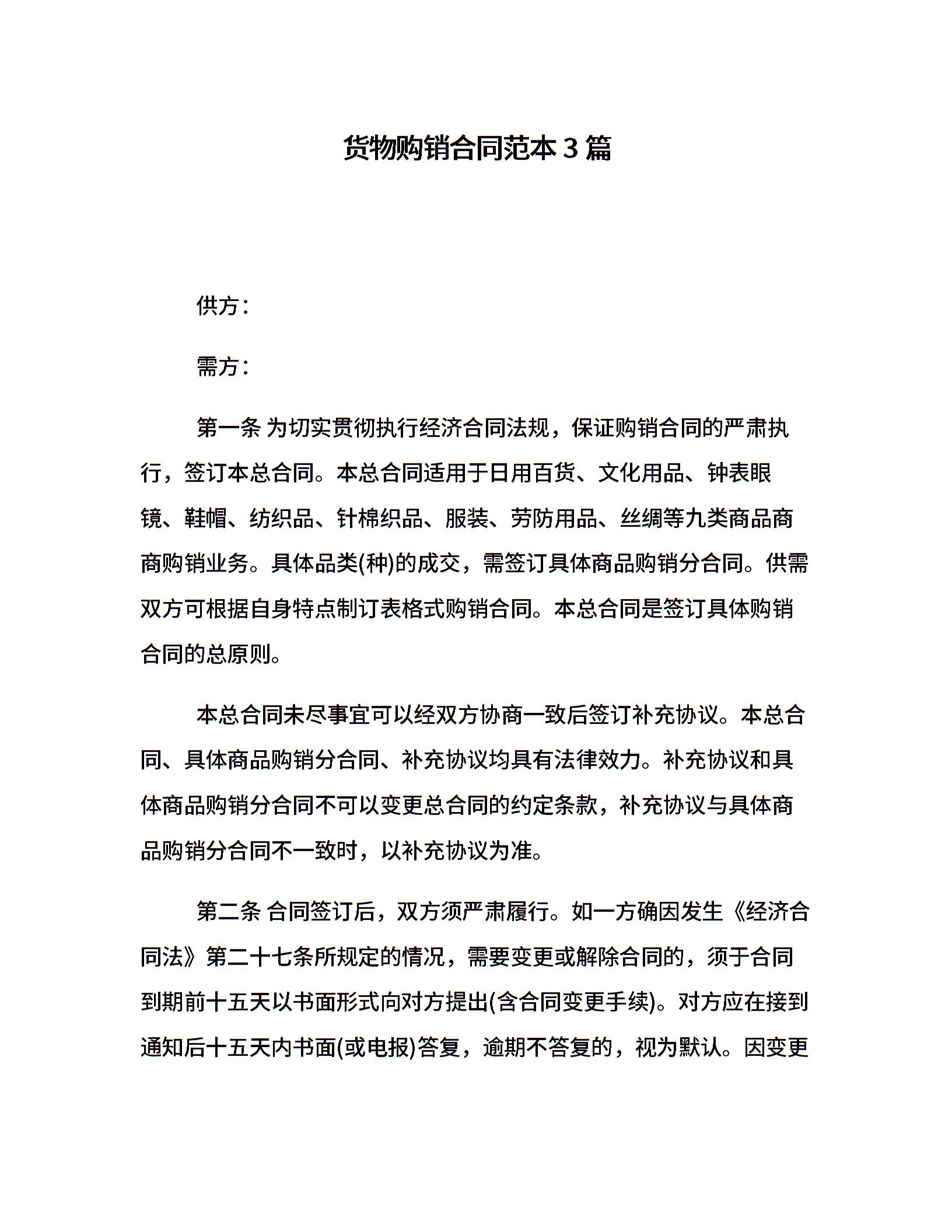 货物购销合同范本3篇