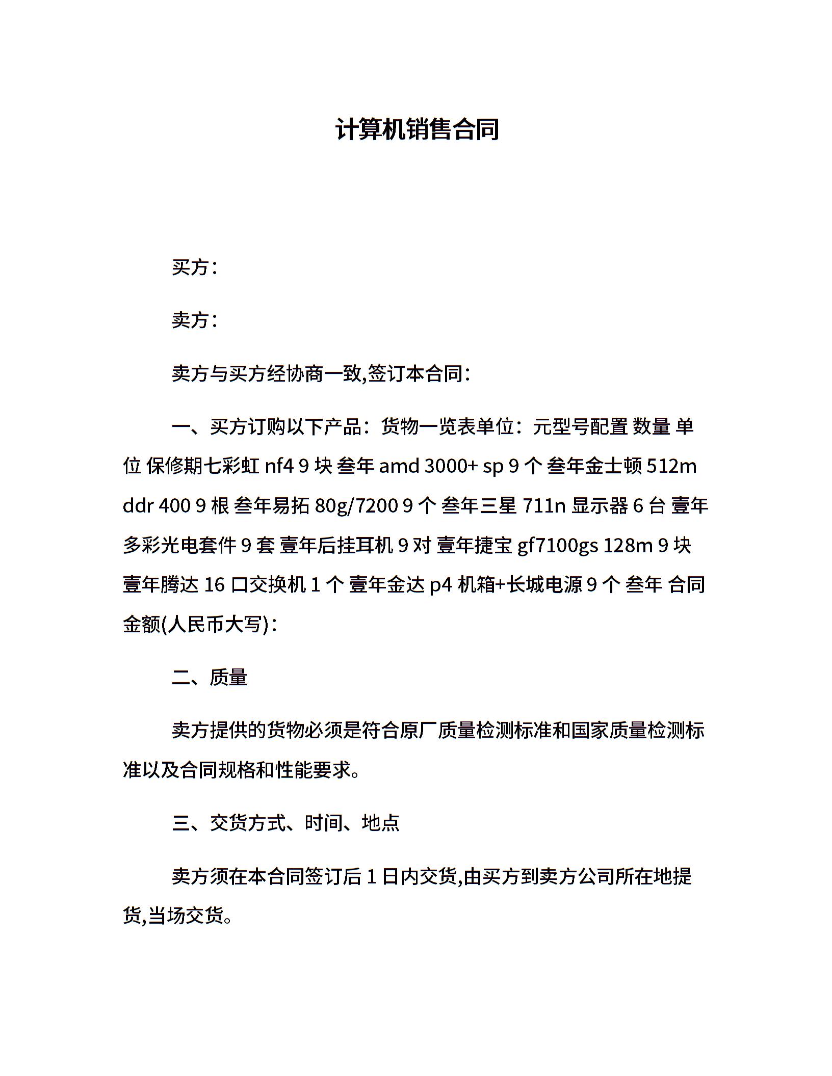 计算机销售合同