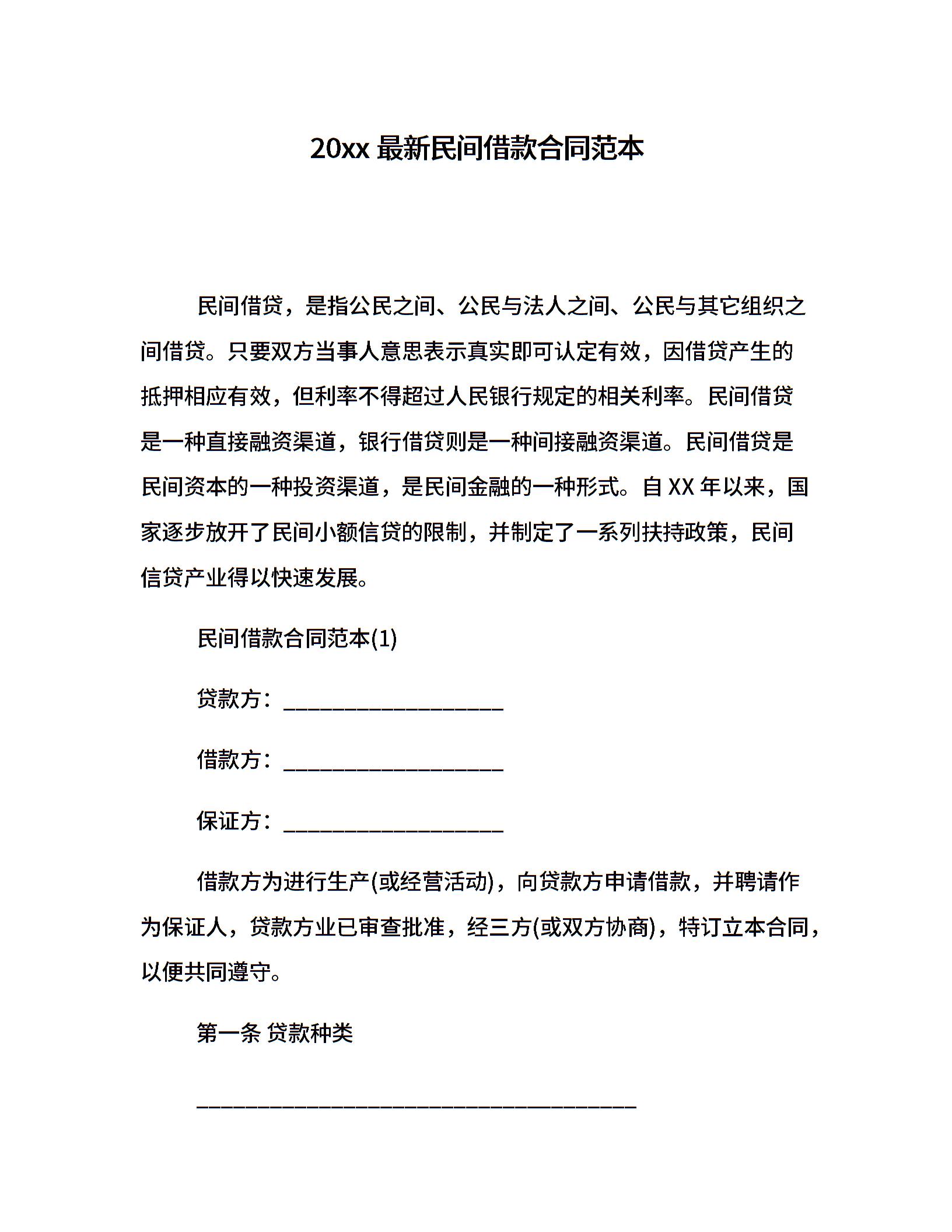 20xx最新民间借款合同范本