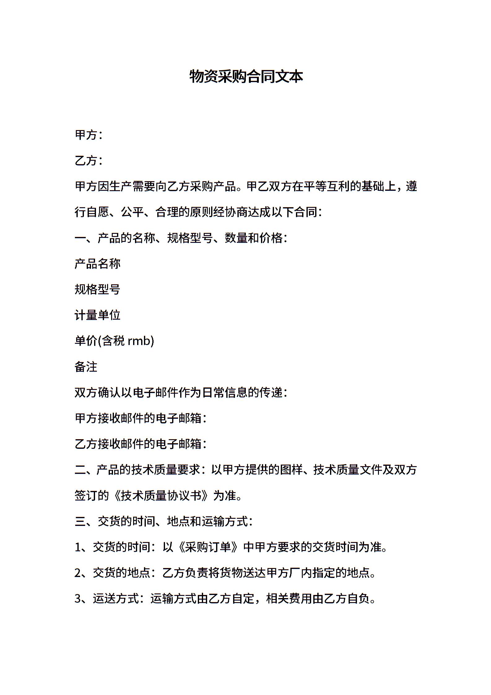 物资采购合同文本