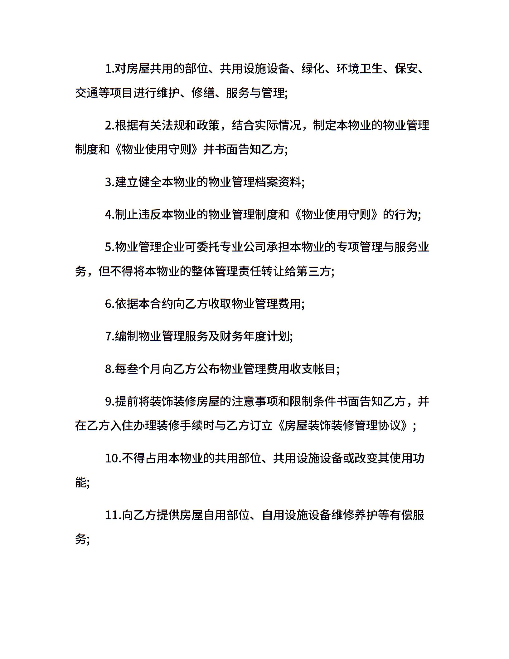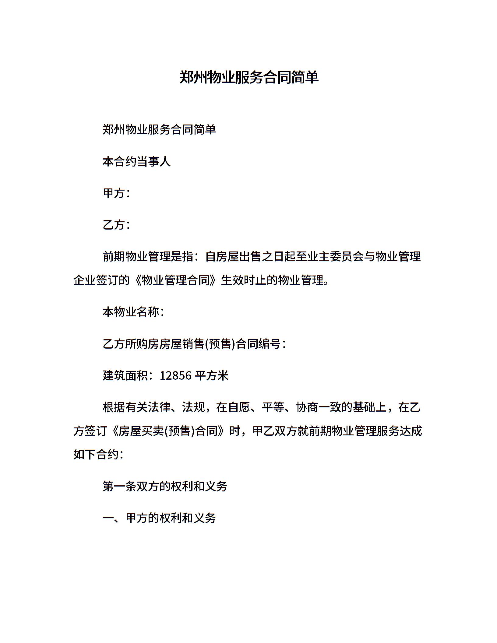 郑州物业服务合同简单